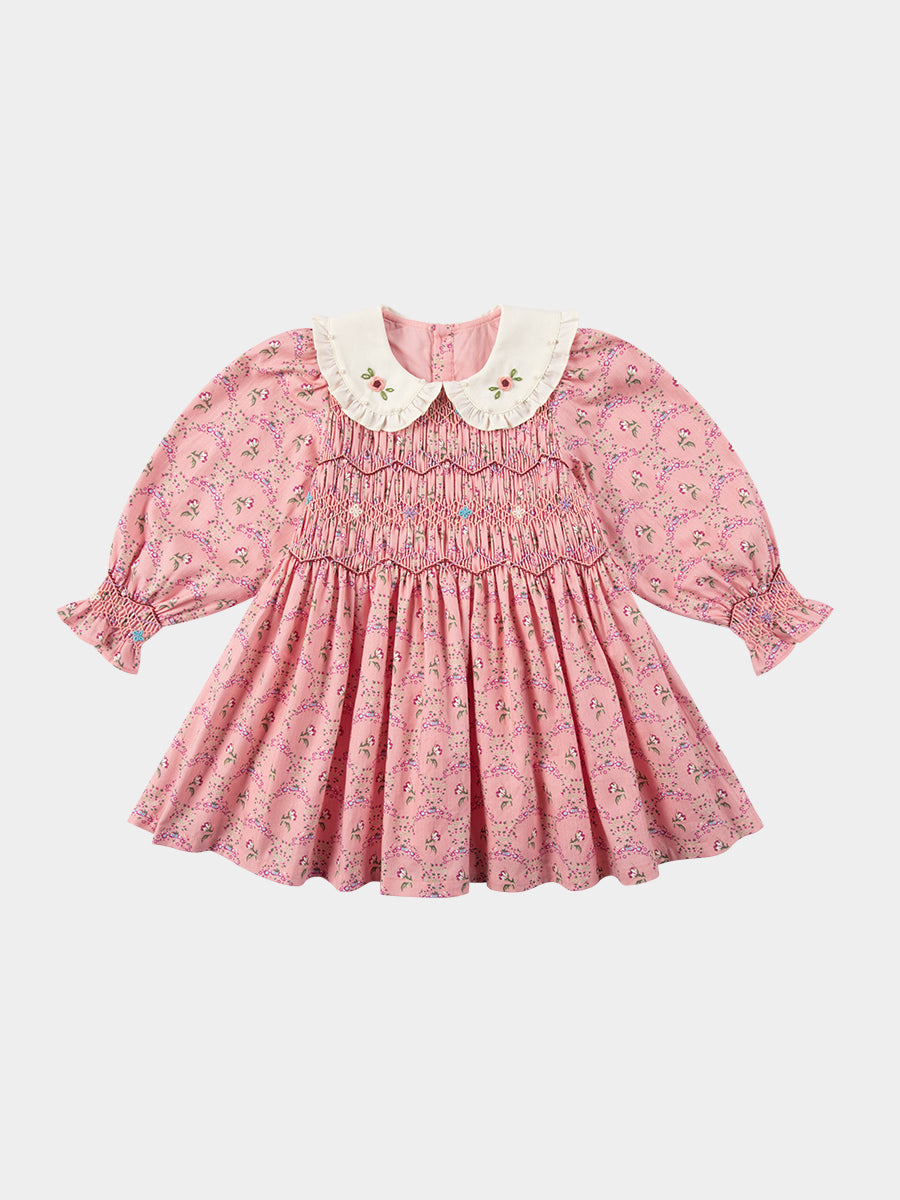 Izzy Hand-Smocking Dress, Vintage Bouquet, Rose