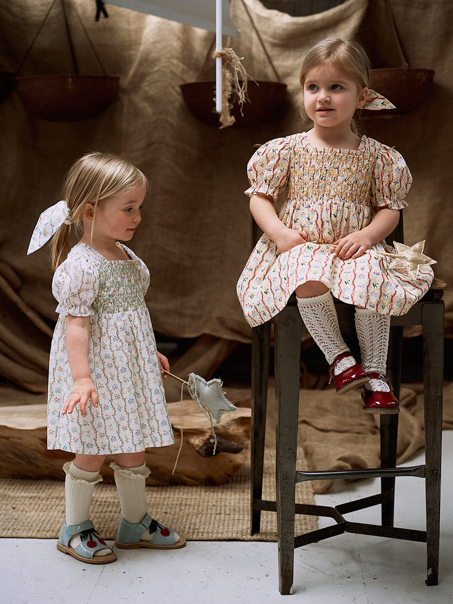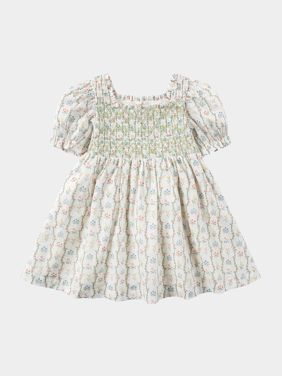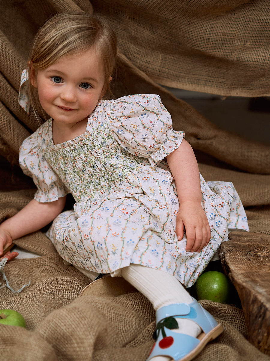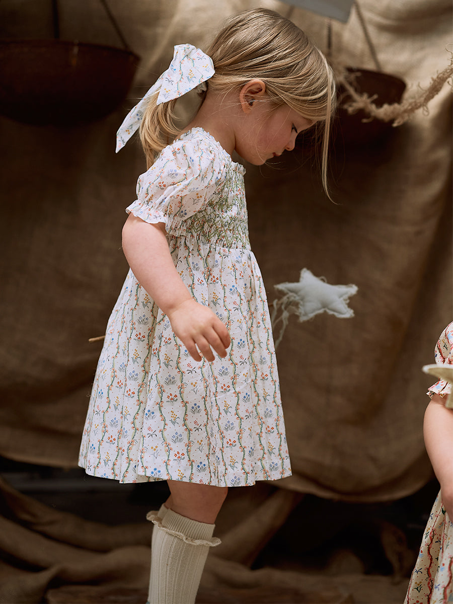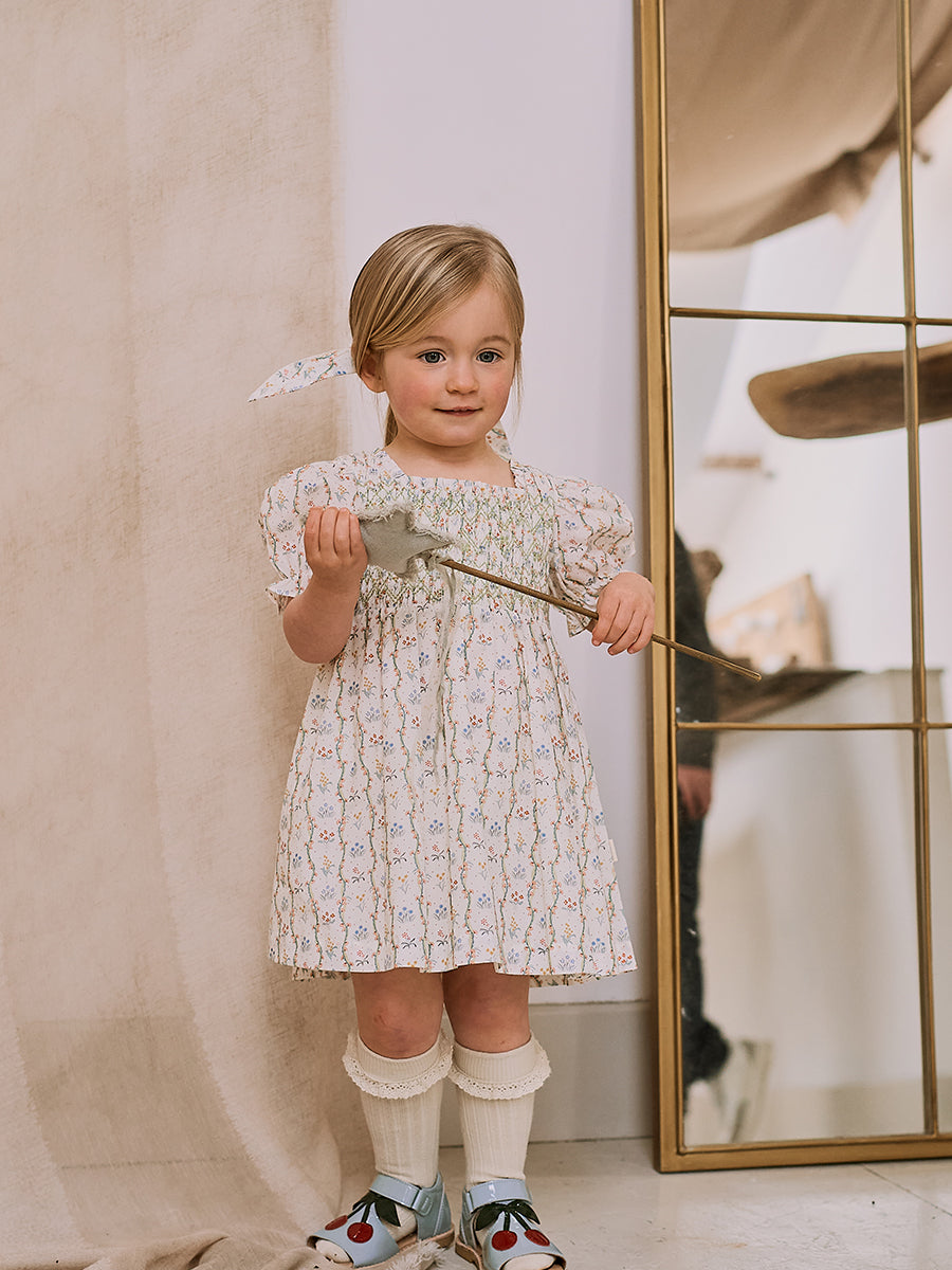 Abigail Hand-Smocked Dress, Farnese Garden, Cream