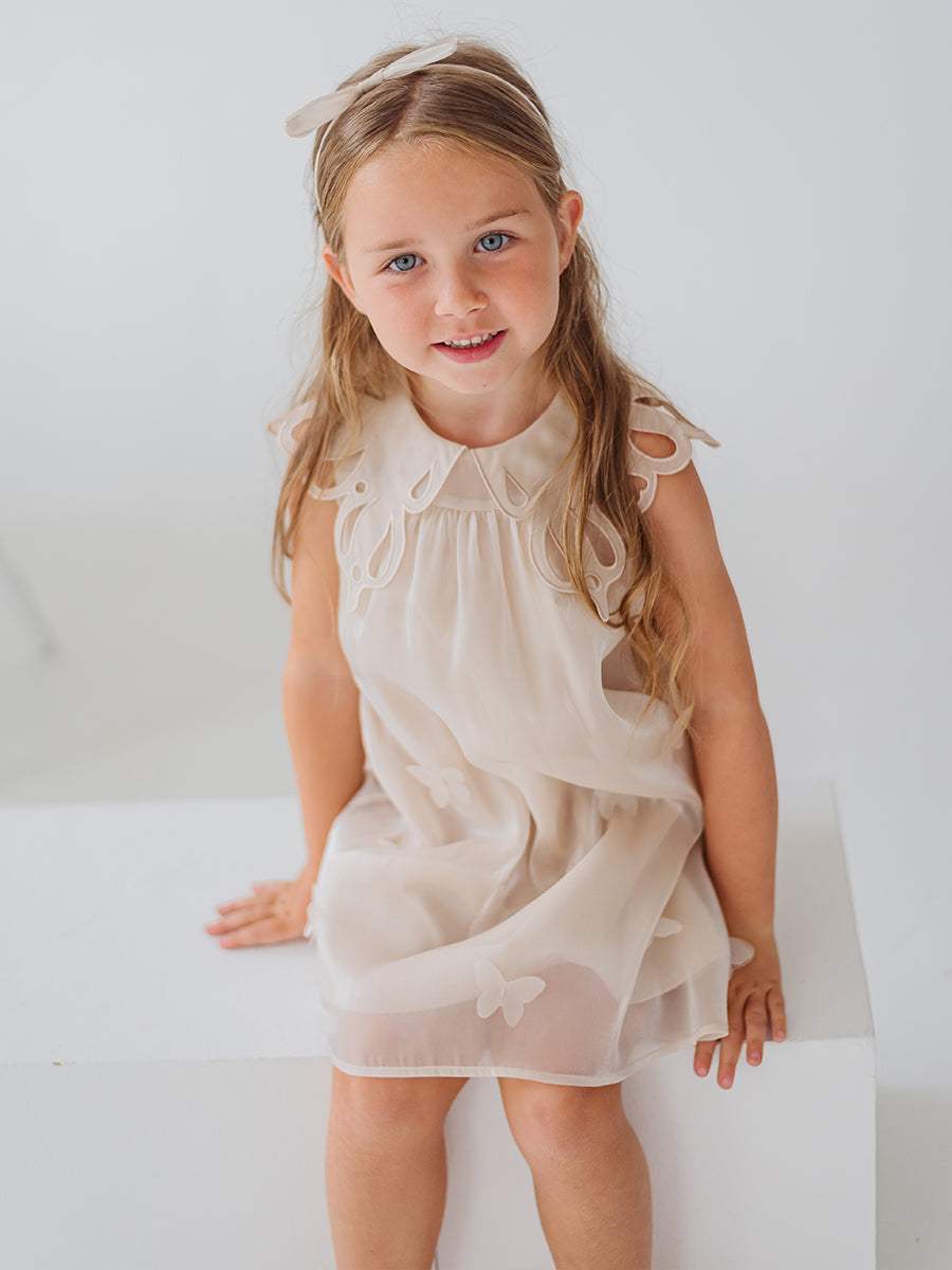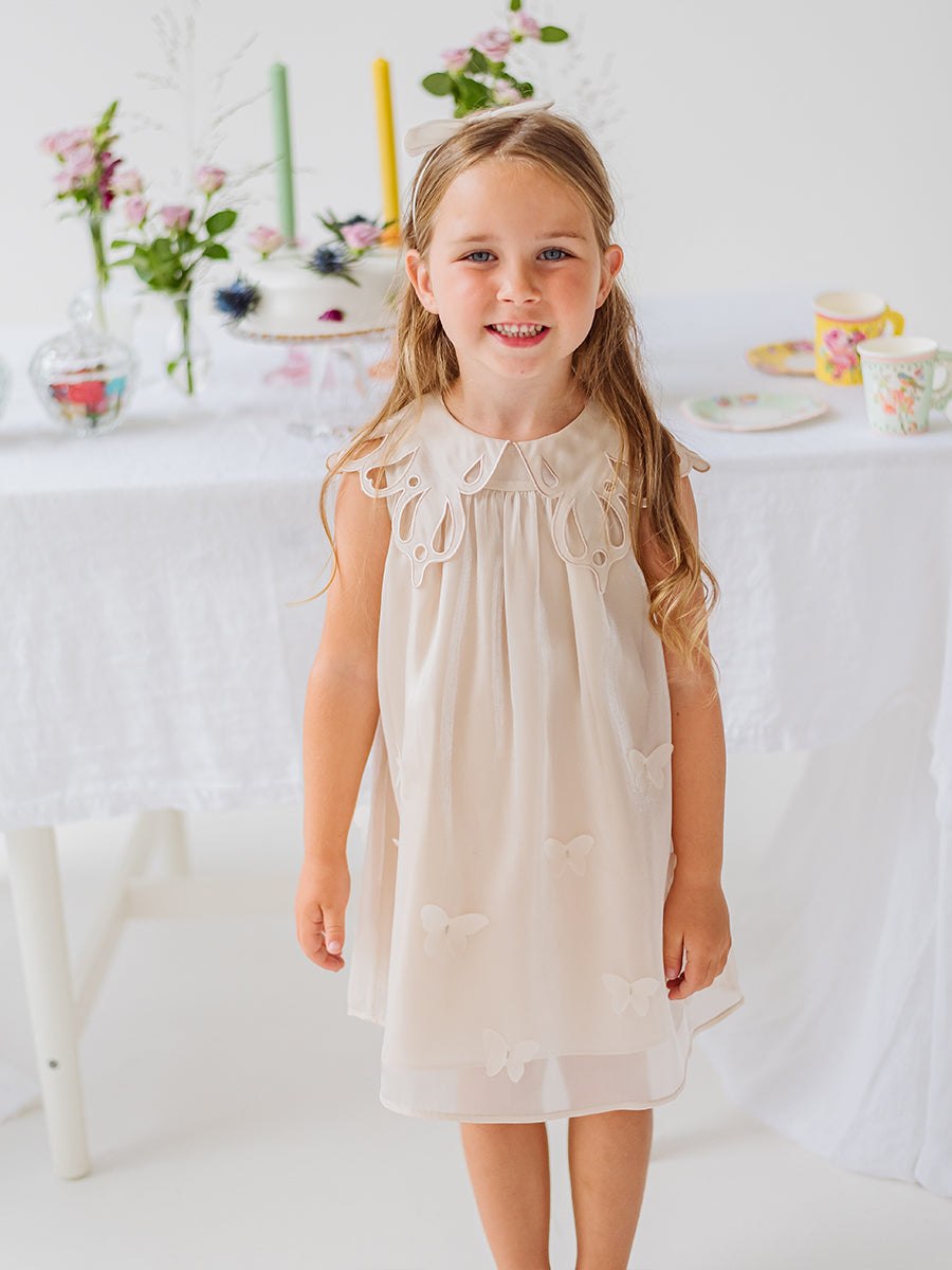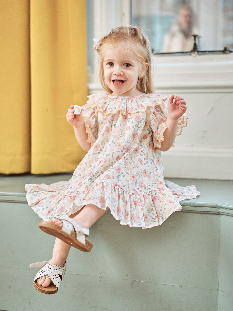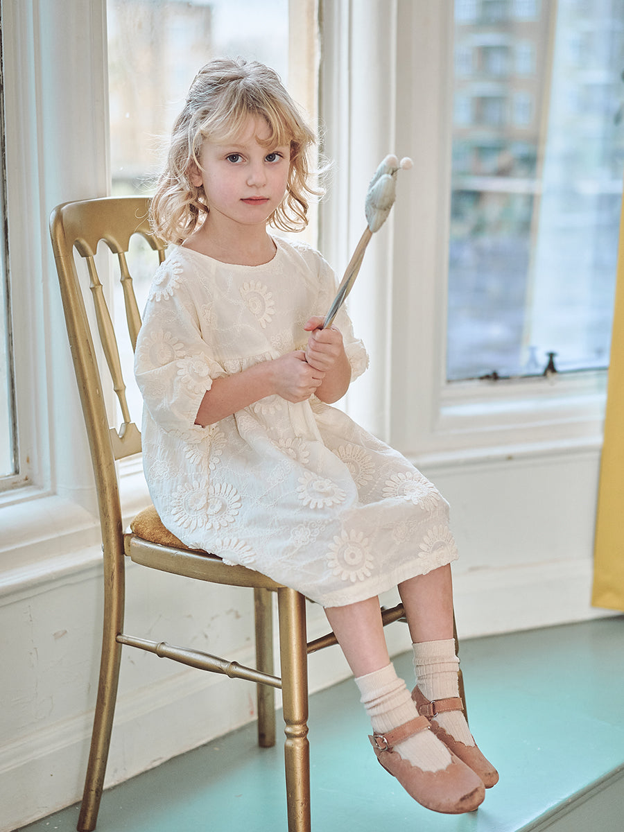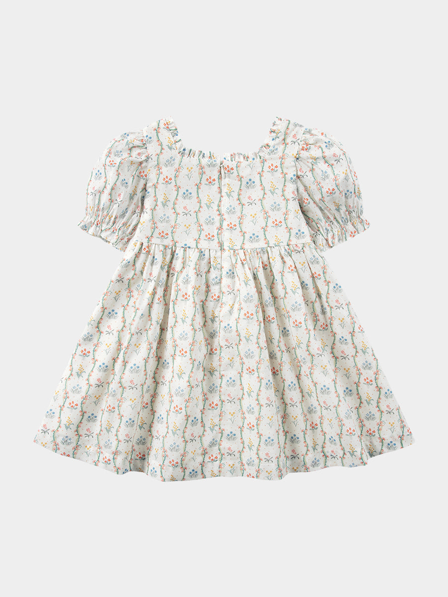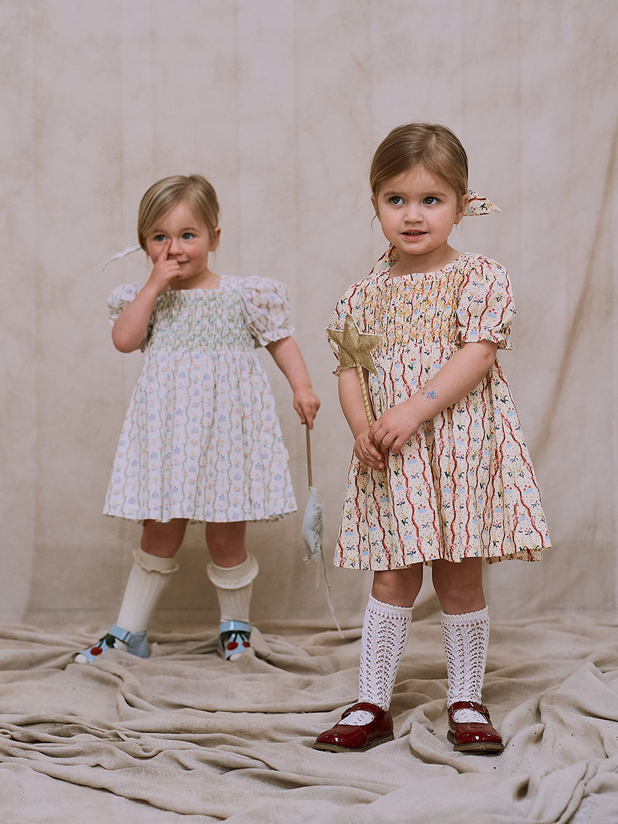 Abigail Hand-Smocked Dress, Farnese Garden, Cream