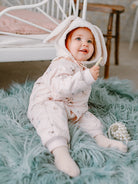 Um die richtige Passform zu gewährleisten, ist unsere Kleidung so konzipiert, dass sie bis zu einer bestimmten Größe passt. Beispielsweise ist die Größe 18M für ein Kind bis zu einem Alter von 18 Monaten oder einer Körpergröße von bis zu 86 cm gedacht.
