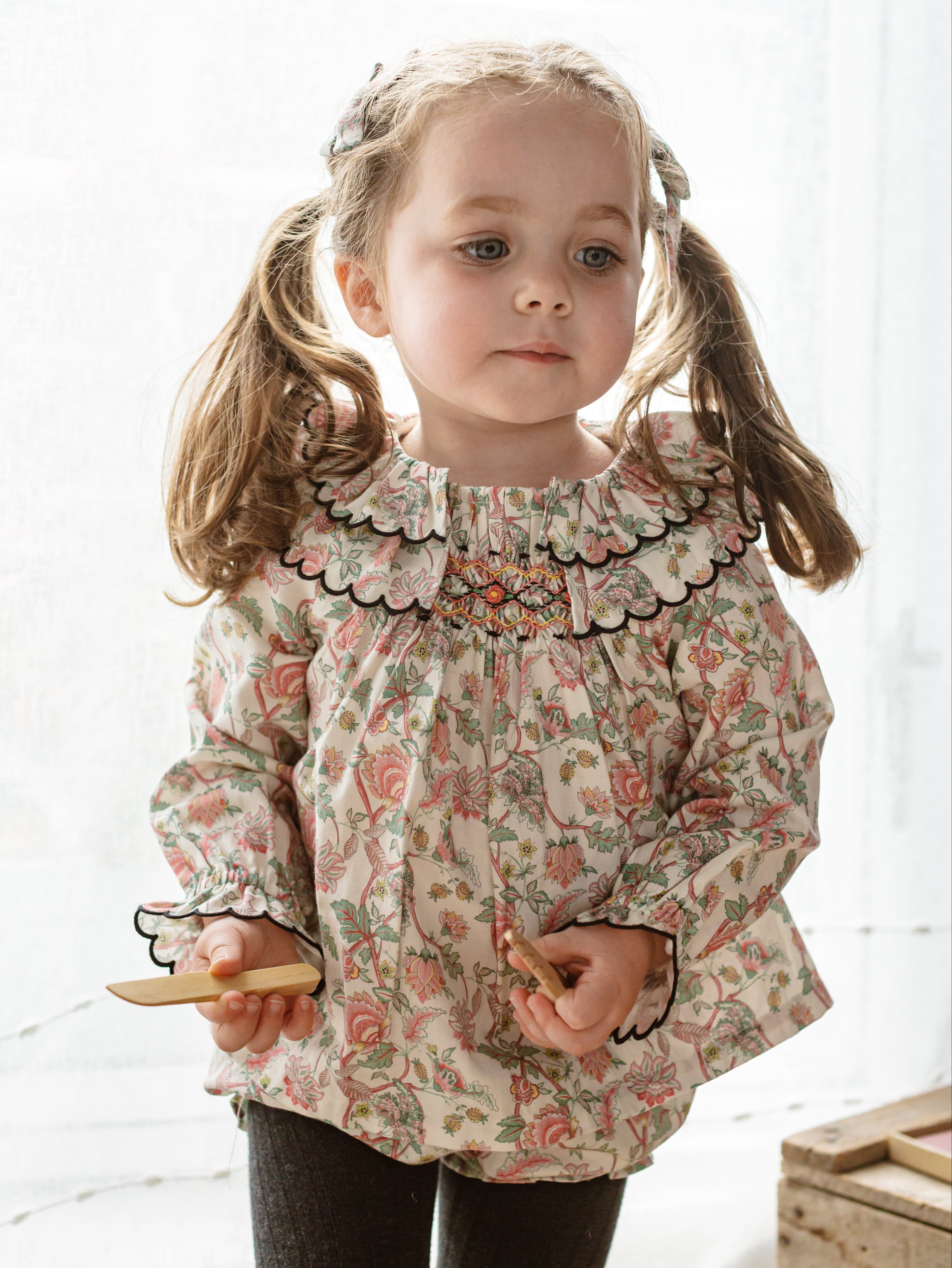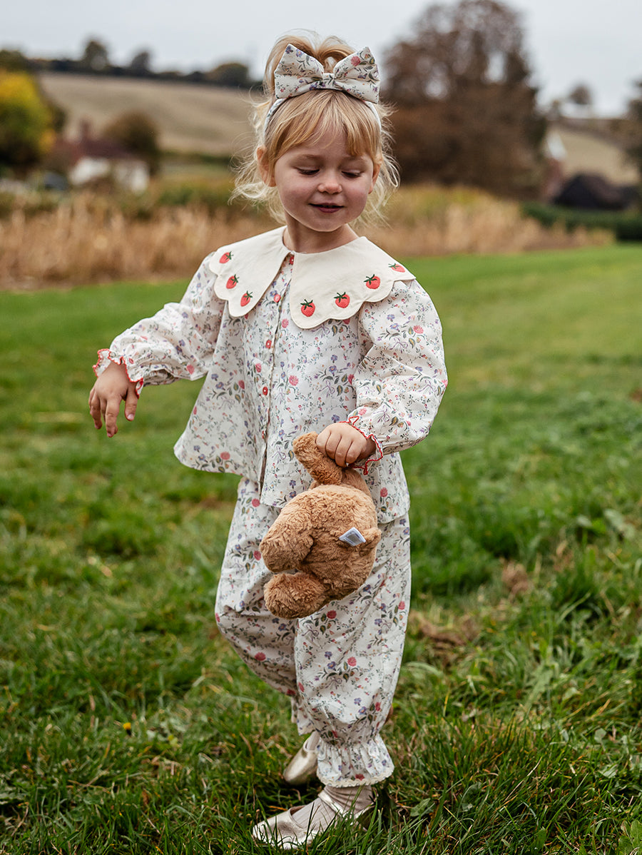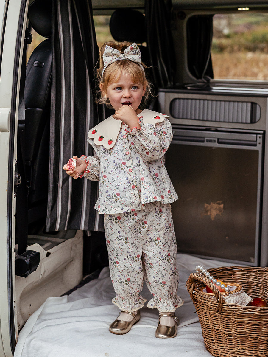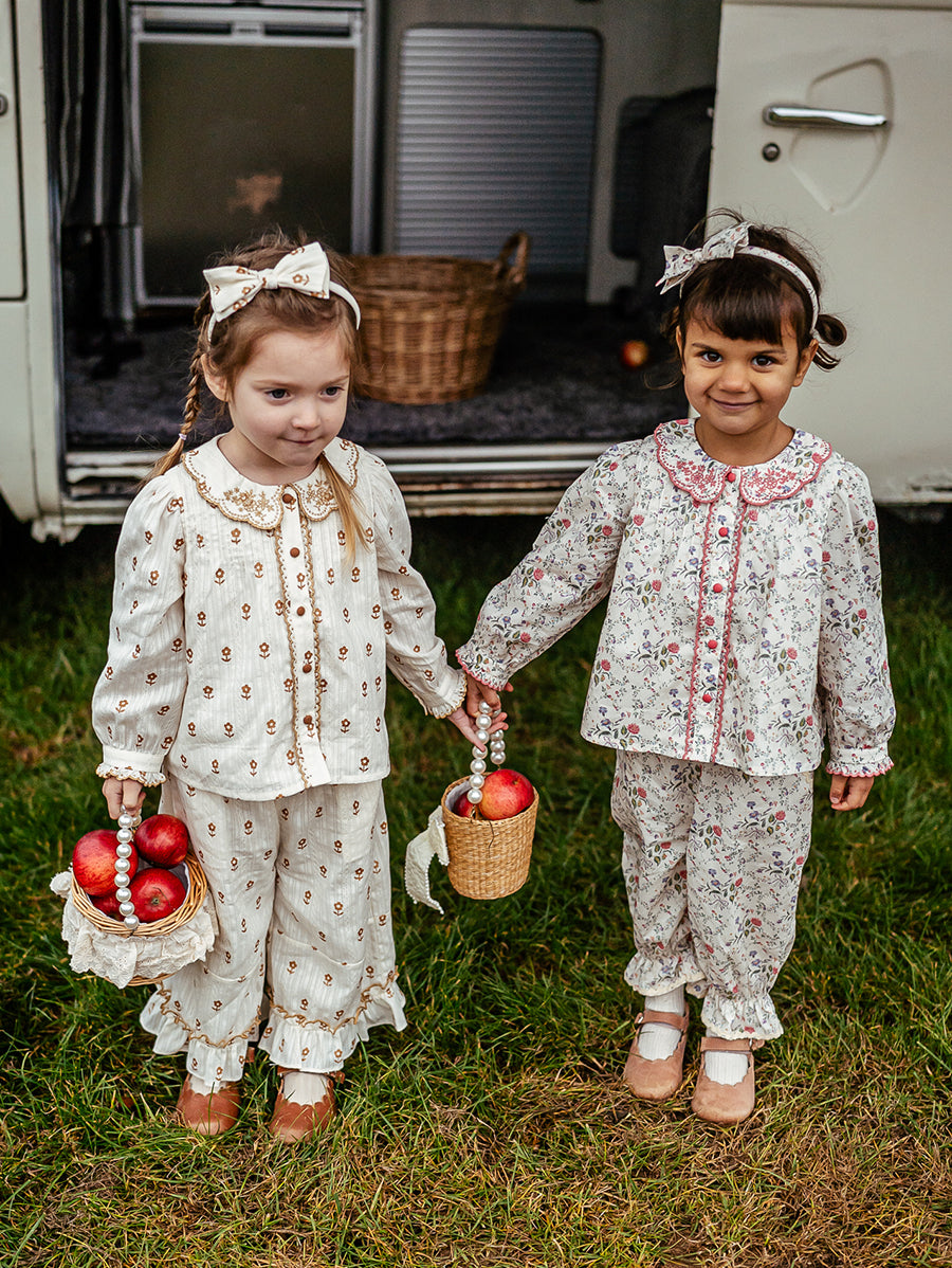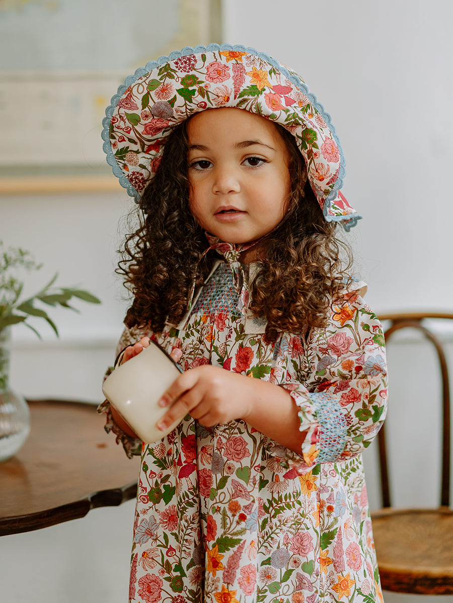 Titled Wildflowers & Wonders, the collection explores the idea of sensory nostalgia - clothing designed to evoke memory through softness and craft. Romantic florals scatter across airy organic cottons, while delicate hand-smocking and embroidery add a quietly luxurious, heirloom touch so clothing feels not only beautiful but also comforting with the familiarity of favourite garments worn through long summer days.