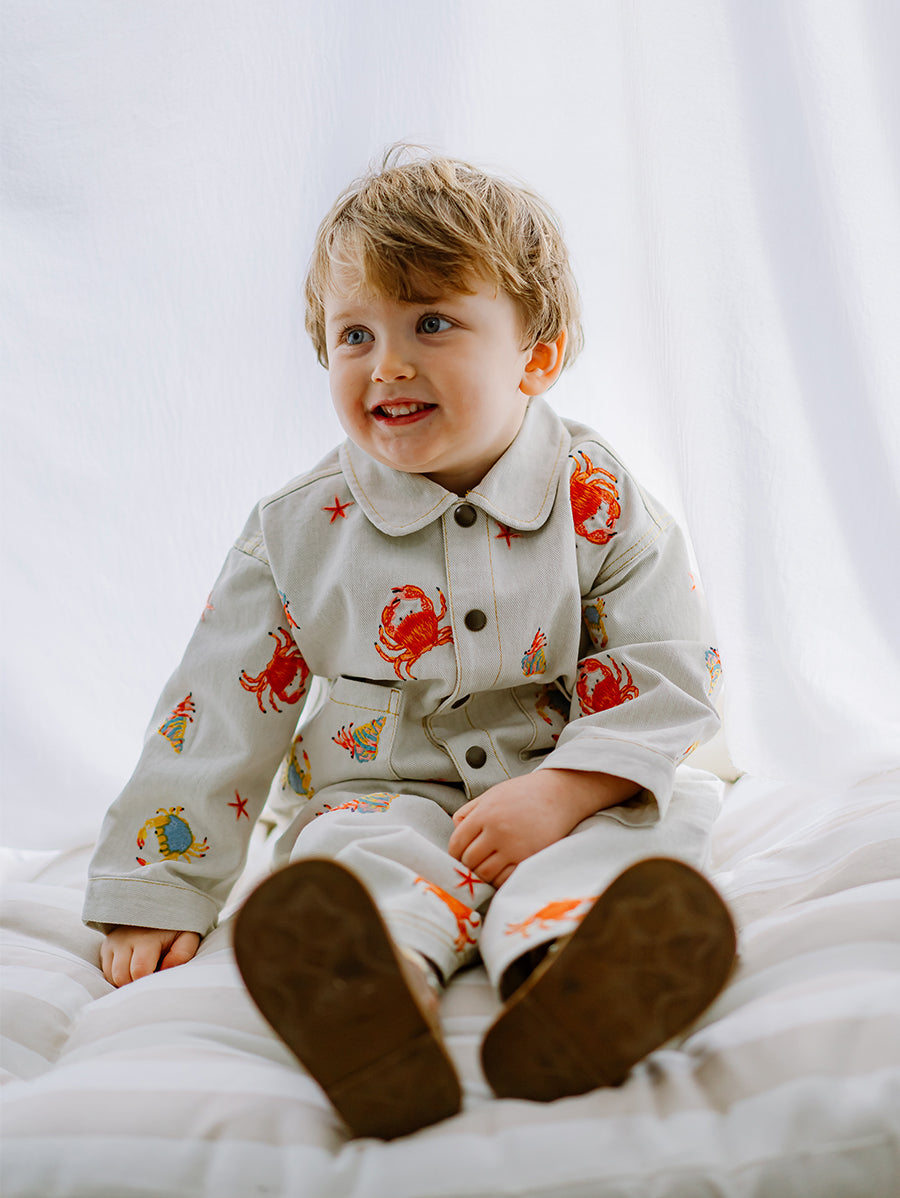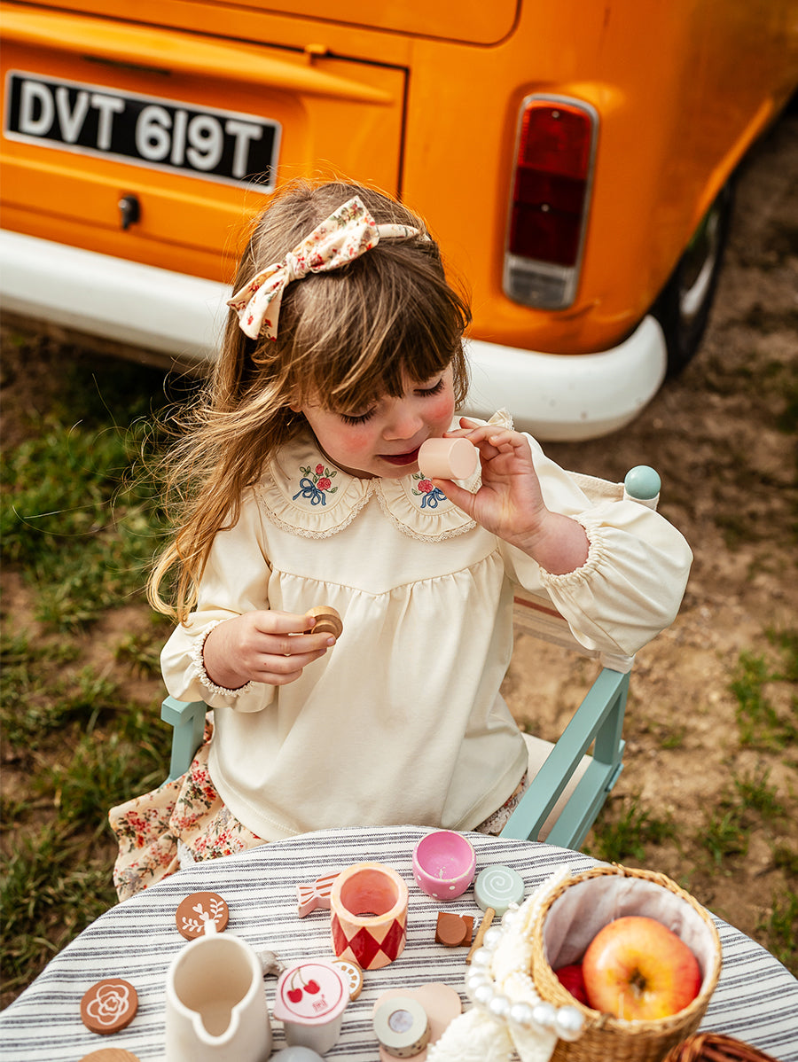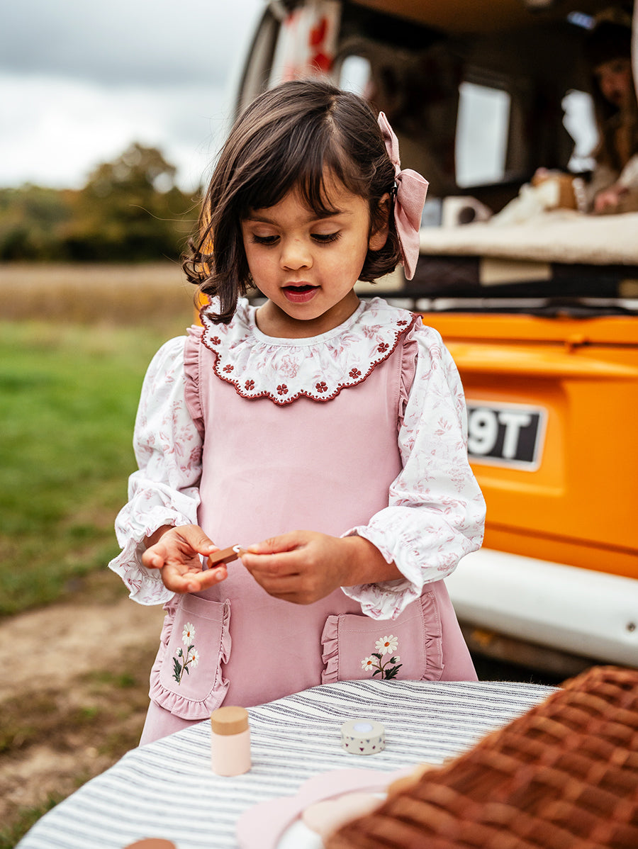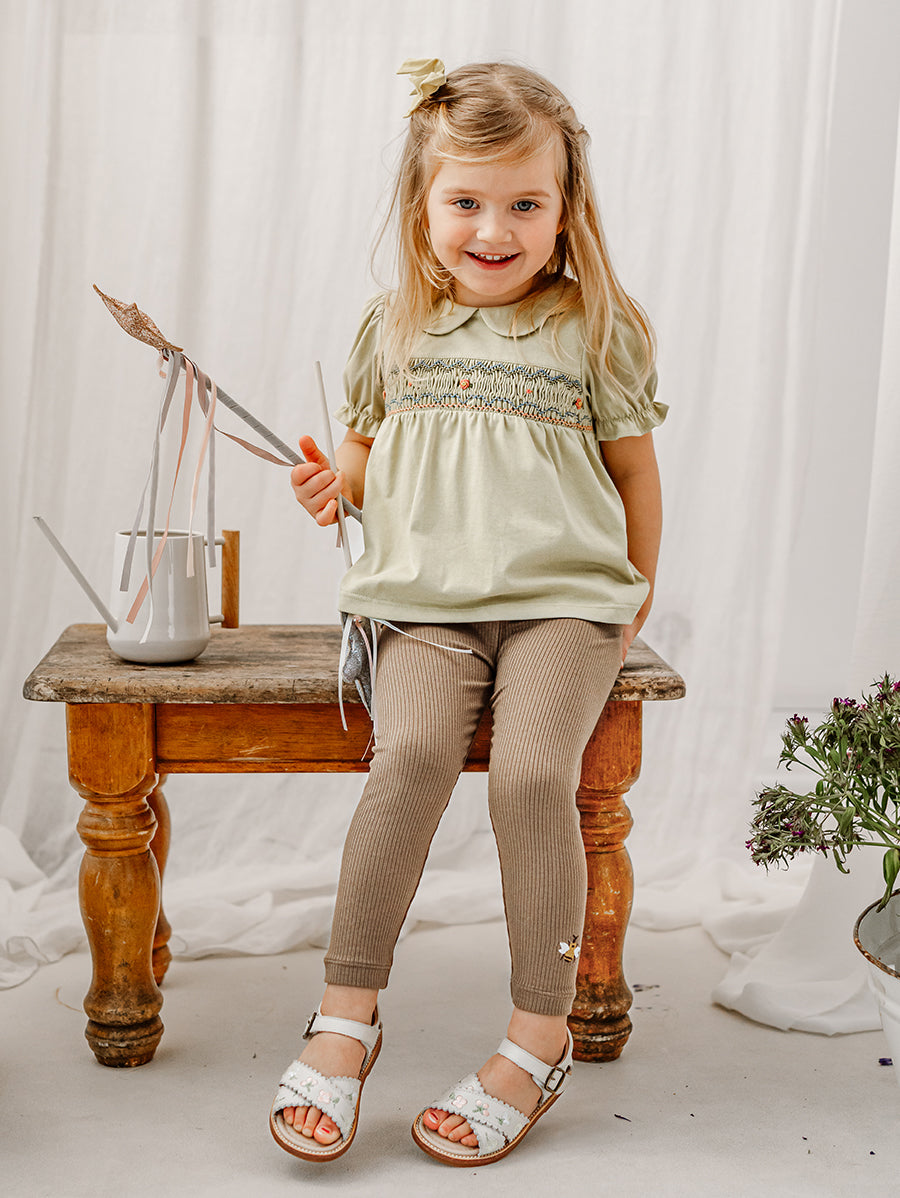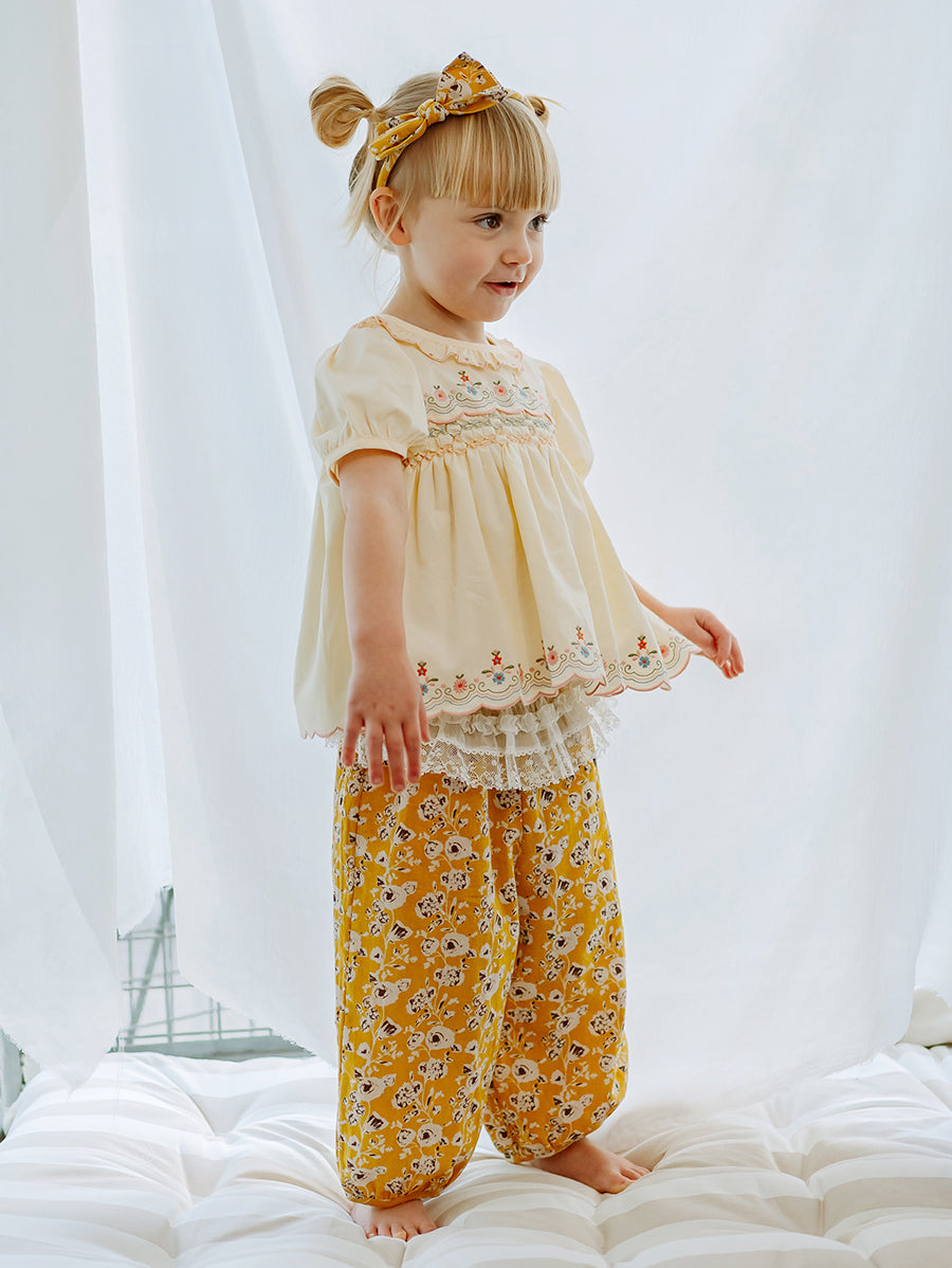 Titled Wildflowers & Wonders, the collection explores the idea of sensory nostalgia - clothing designed to evoke memory through softness and craft. Romantic florals scatter across airy organic cottons, while delicate hand-smocking and embroidery add a quietly luxurious, heirloom touch so clothing feels not only beautiful but also comforting with the familiarity of favourite garments worn through long summer days.