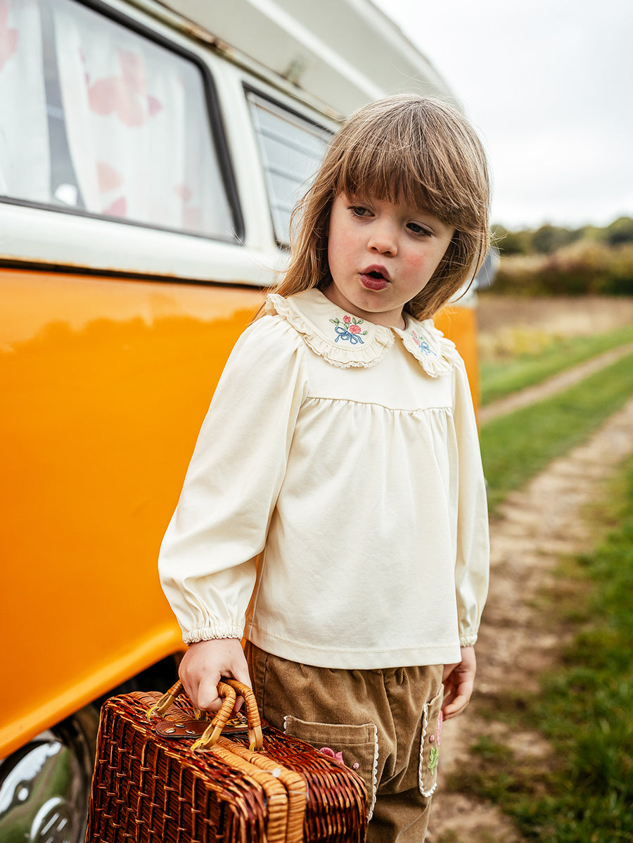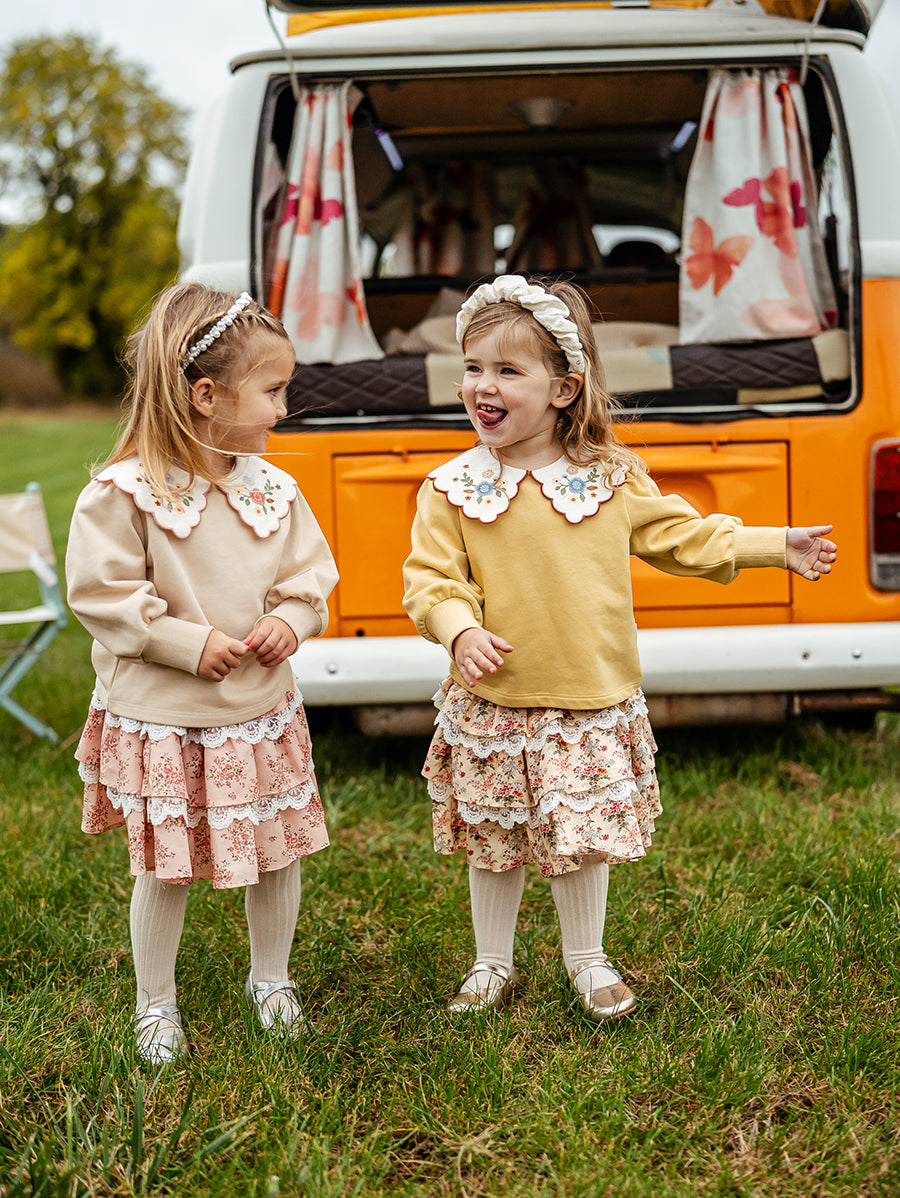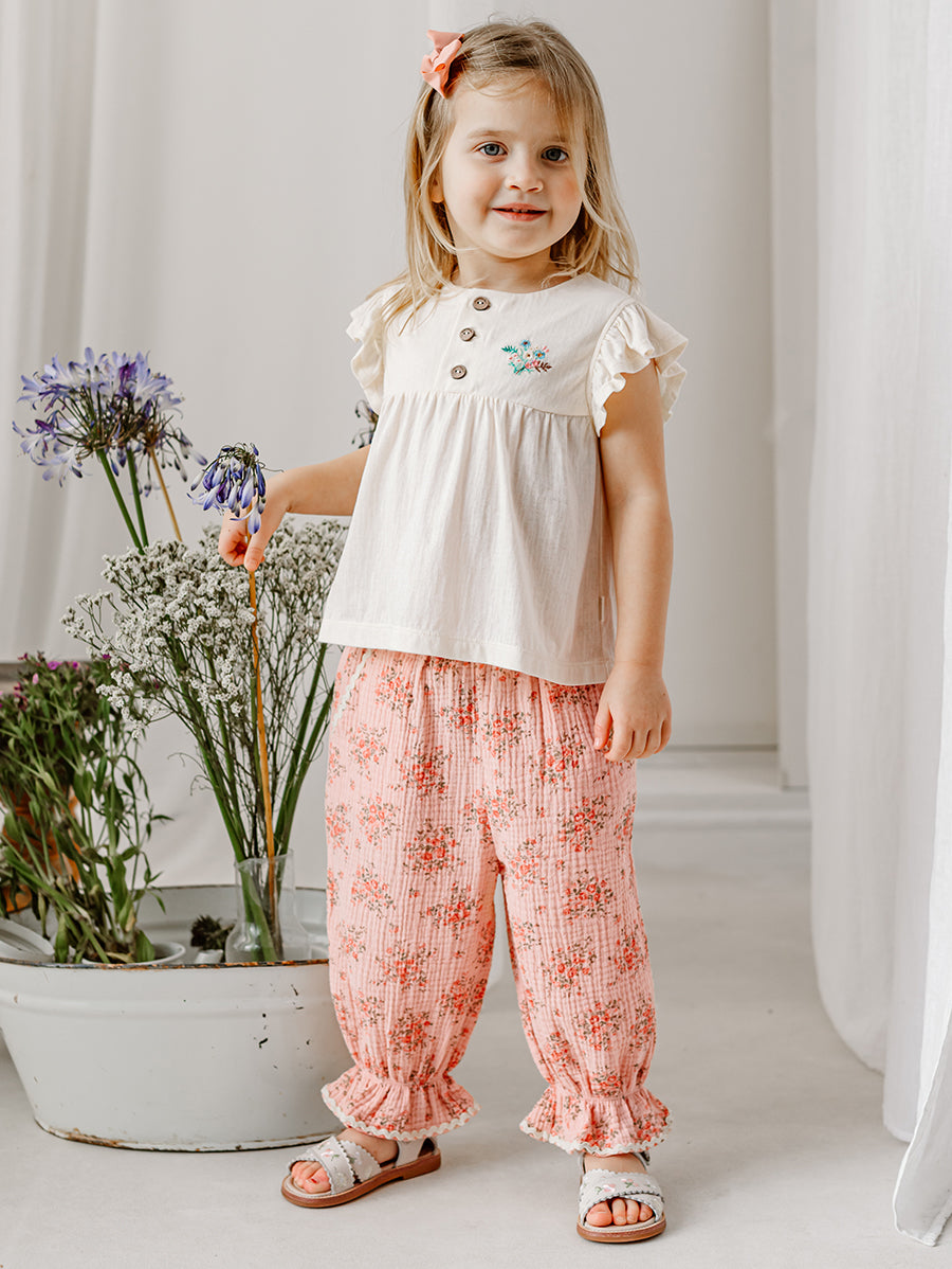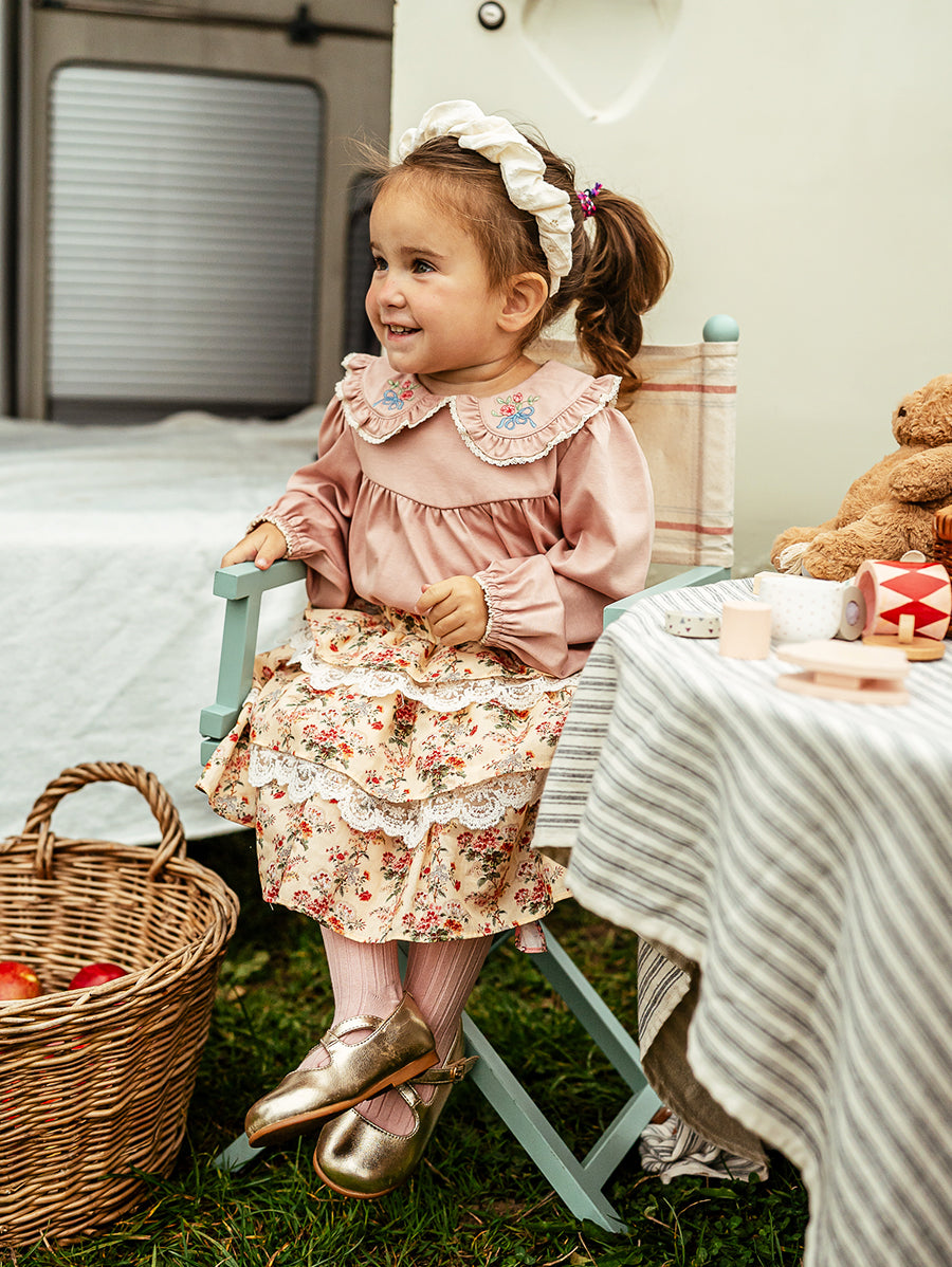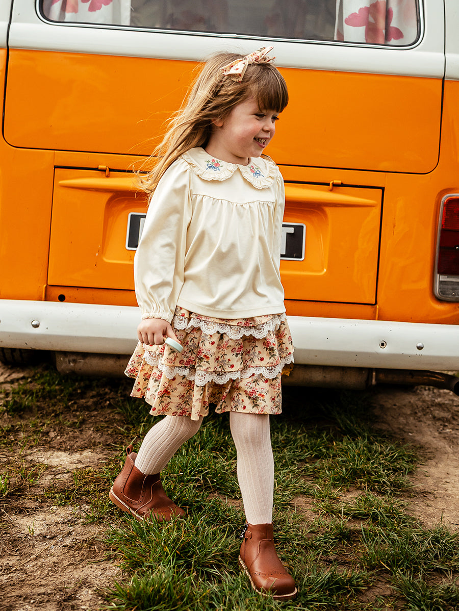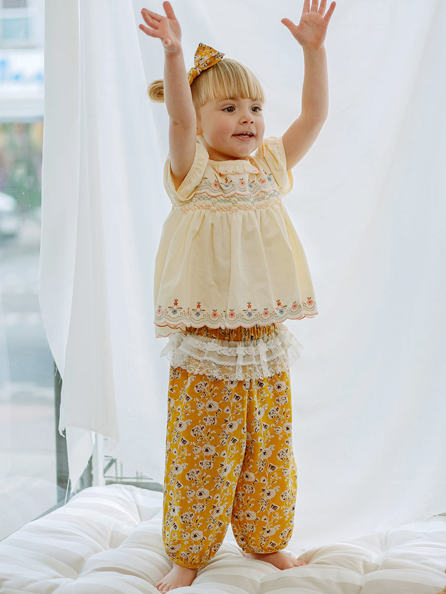 Titled Wildflowers & Wonders, the collection explores the idea of sensory nostalgia - clothing designed to evoke memory through softness and craft. Romantic florals scatter across airy organic cottons, while delicate hand-smocking and embroidery add a quietly luxurious, heirloom touch so clothing feels not only beautiful but also comforting with the familiarity of favourite garments worn through long summer days.