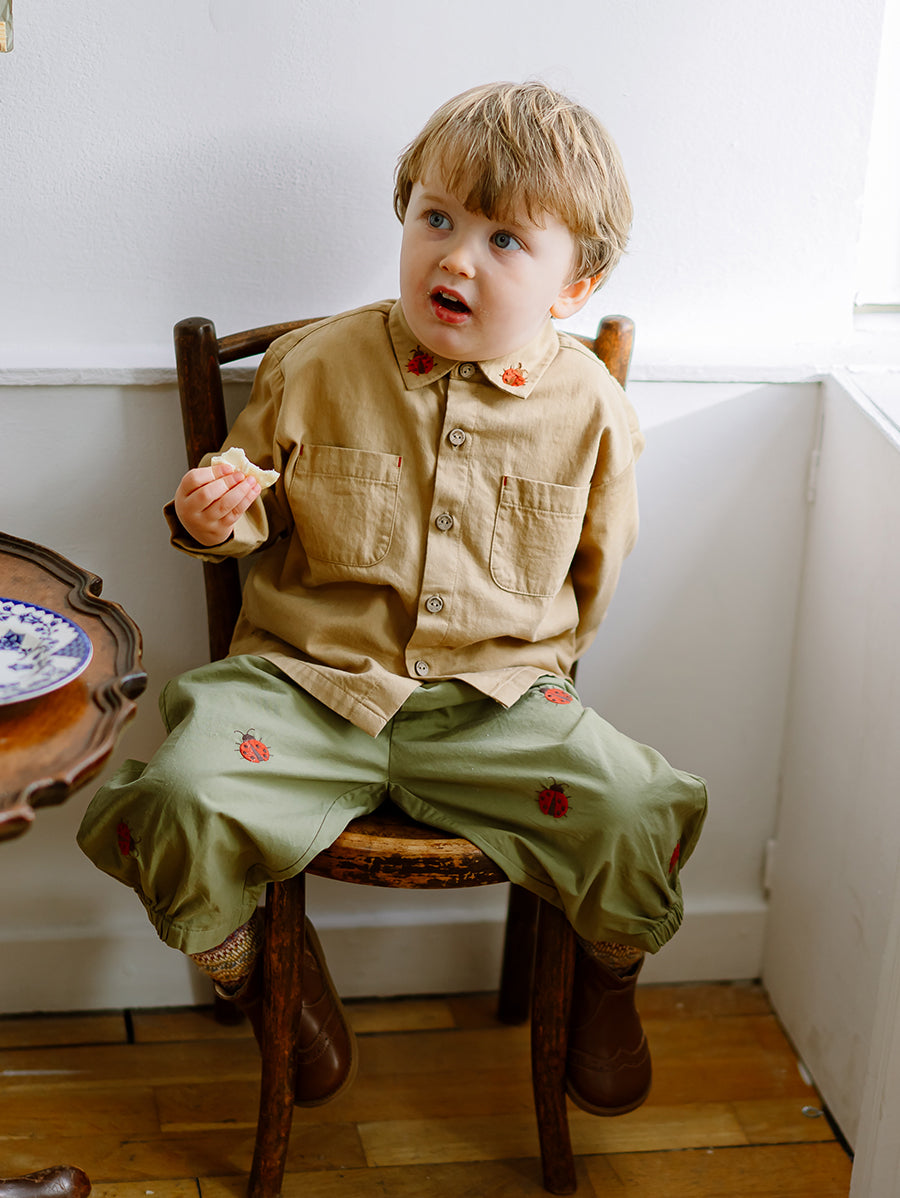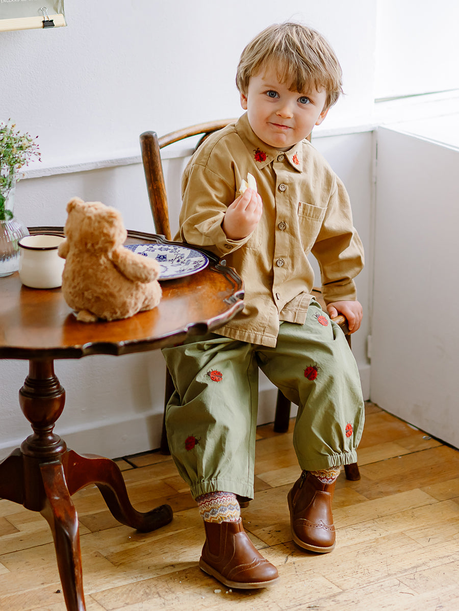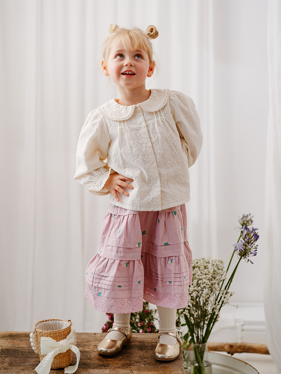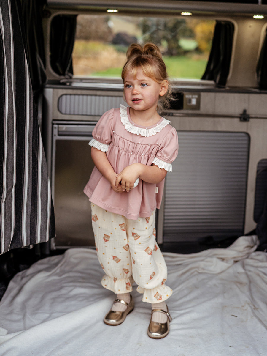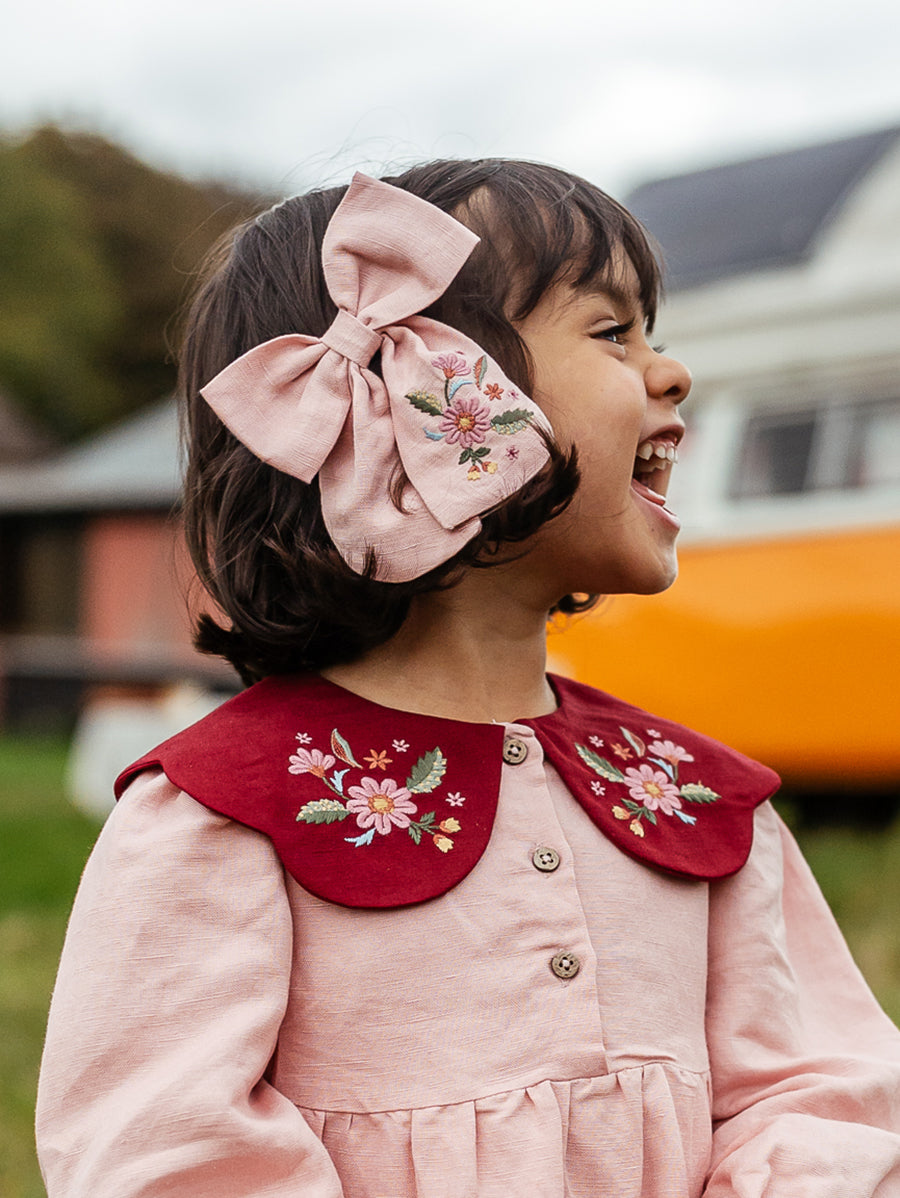 Titled Wildflowers & Wonders, the collection explores the idea of sensory nostalgia - clothing designed to evoke memory through softness and craft. Romantic florals scatter across airy organic cottons, while delicate hand-smocking and embroidery add a quietly luxurious, heirloom touch so clothing feels not only beautiful but also comforting with the familiarity of favourite garments worn through long summer days.