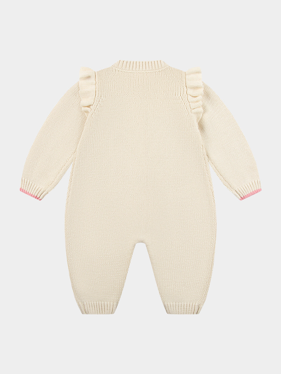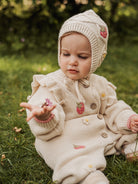 Strawberry Hand-Embroidered Romper, Crème Brulee