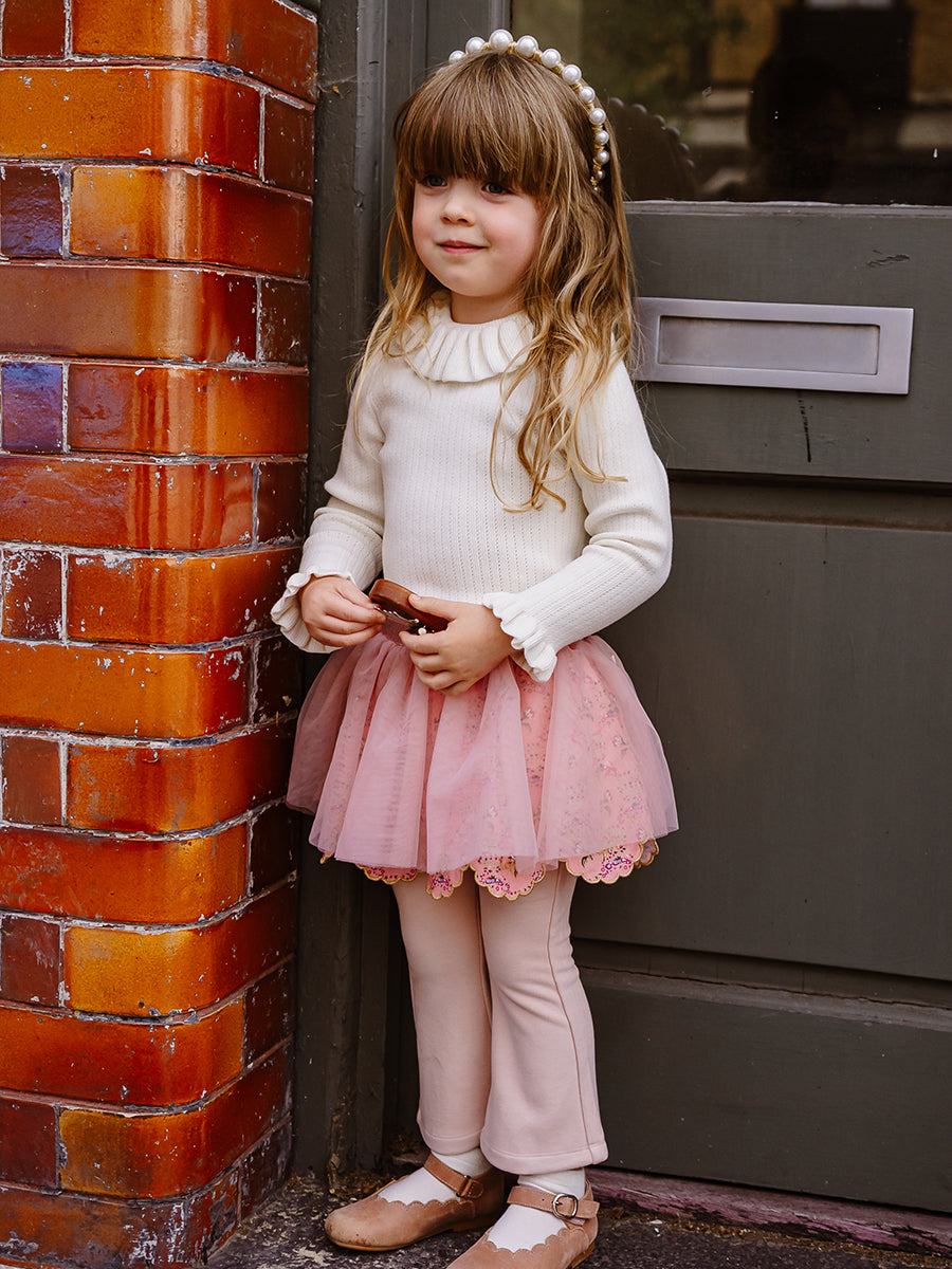 Quinn Hand-Embroidered Knitted Romper, Almond White