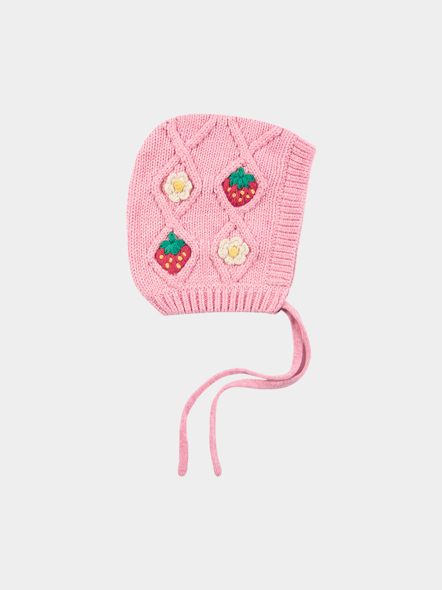 Strawberry Hand-Embroidered Bonnet, Princess Pink