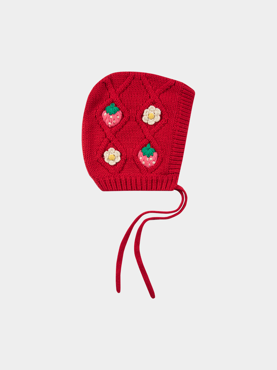 Strawberry Hand-Embroidered Bonnet, Royal Red