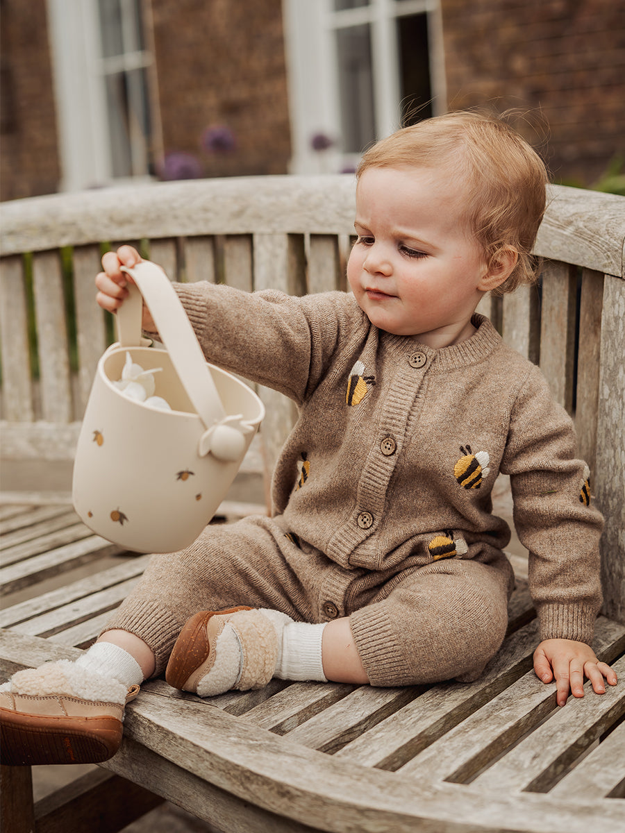 Quinn Hand-Embroidered Knitted Bonnet, Almond White
