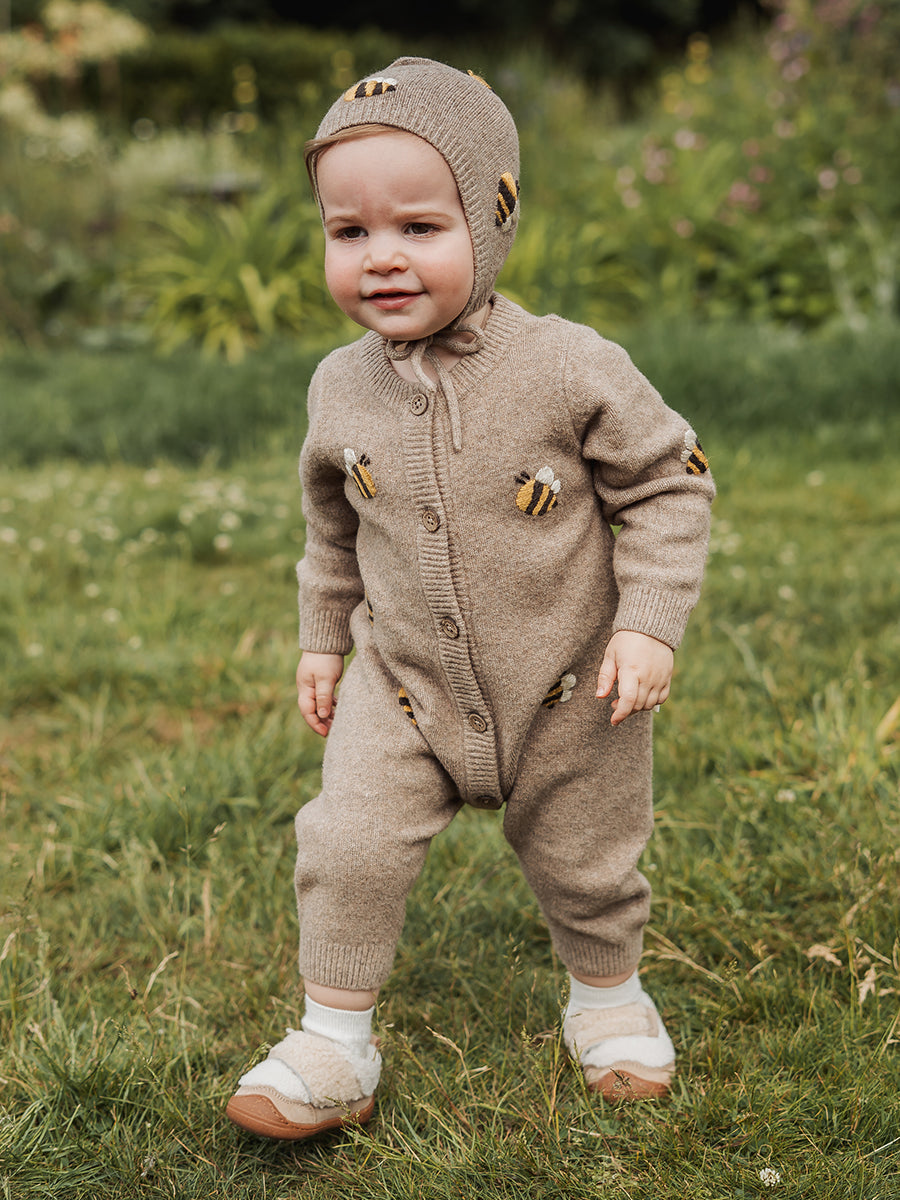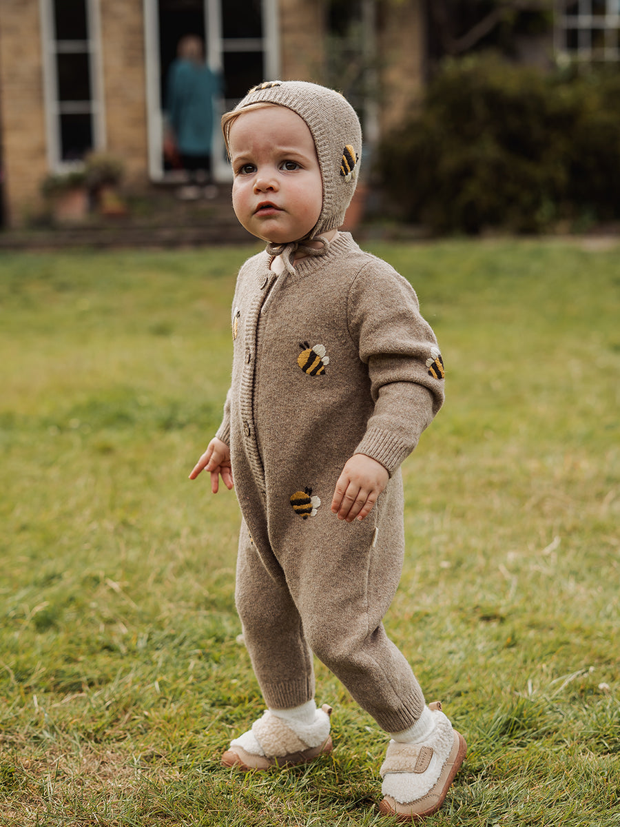 Quinn Hand-Embroidered Knitted Bonnet, Smoky Brown