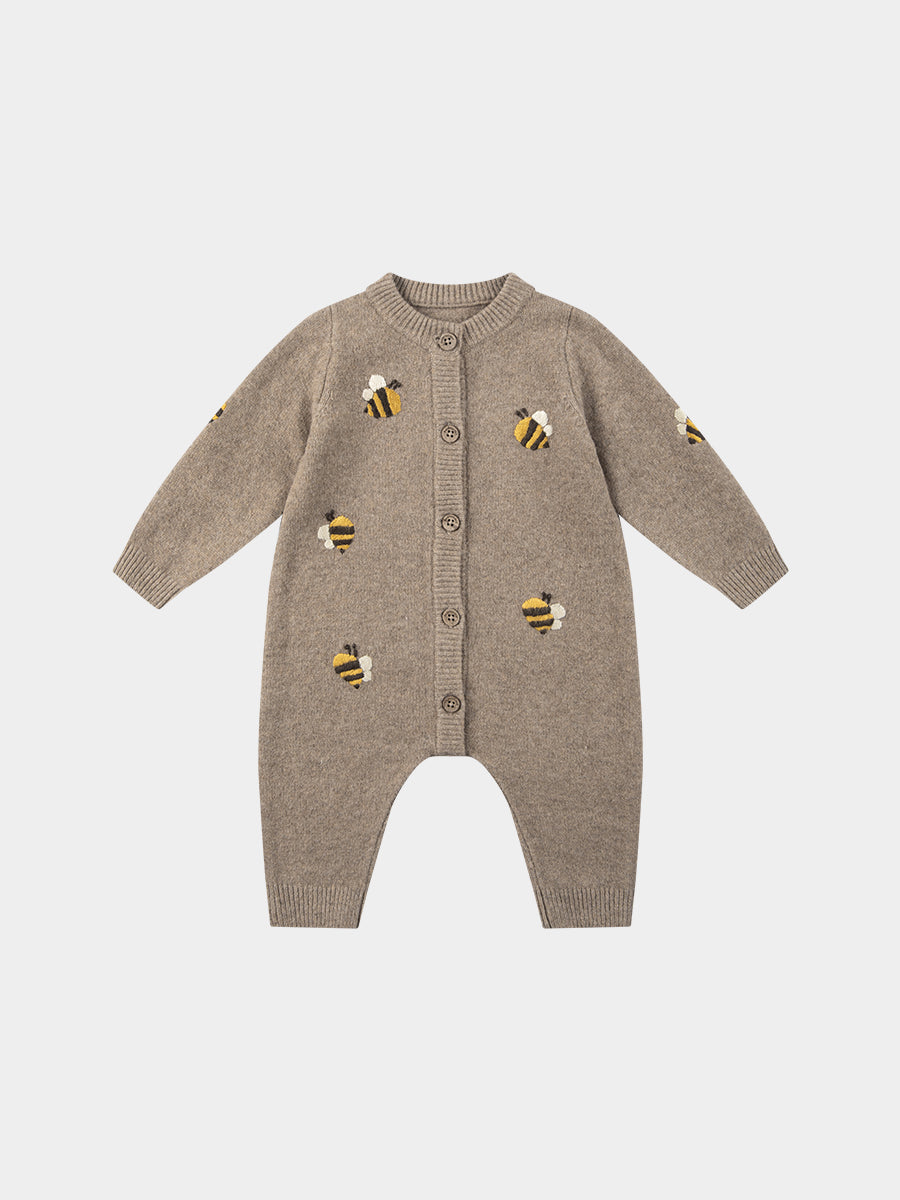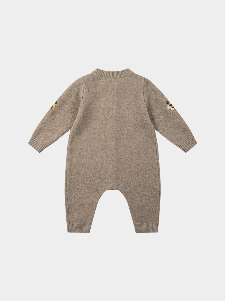 Quinn Hand-Embroidered Knitted Romper, Smoky Brown