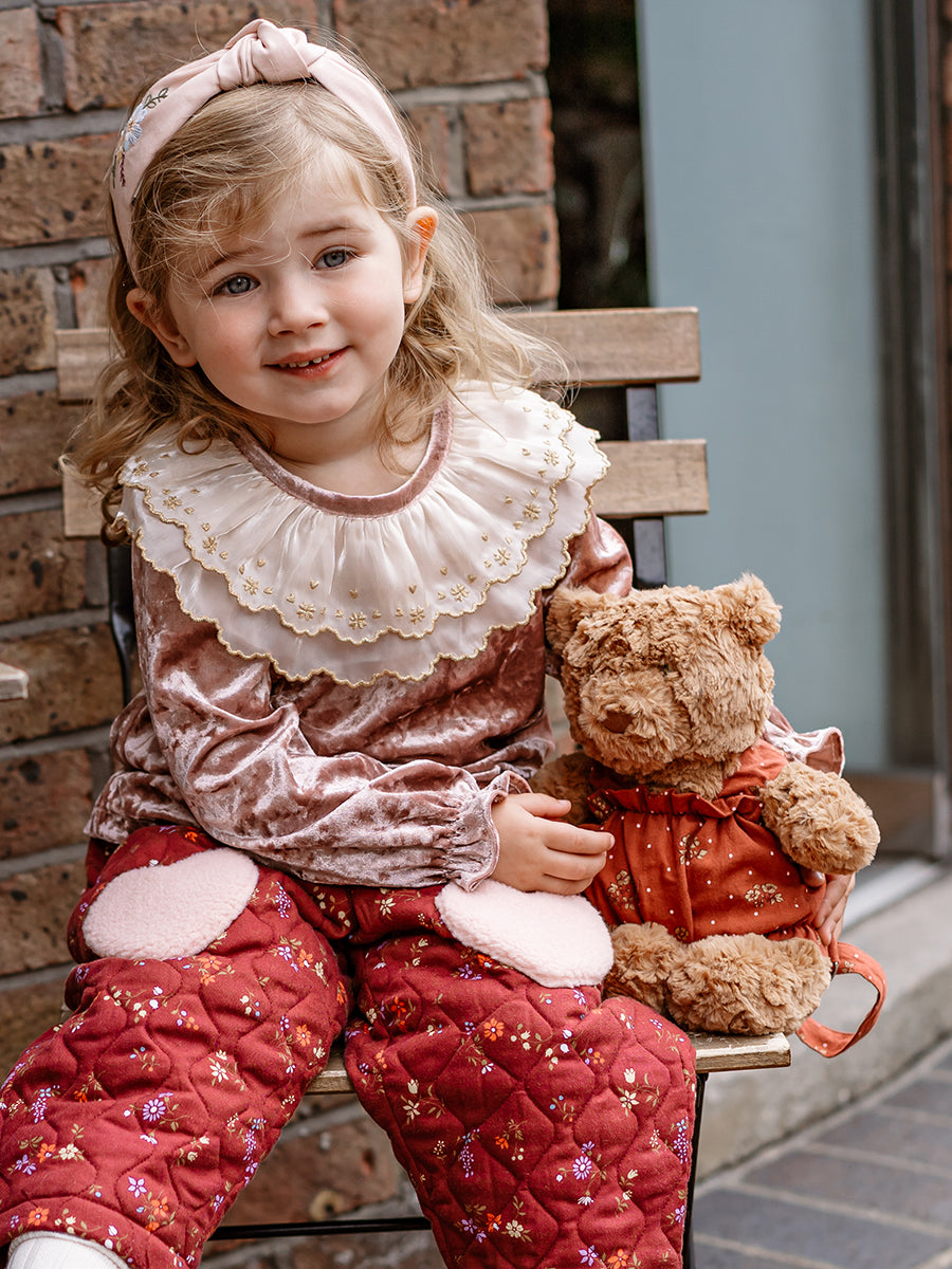 Adelaide Hand-Embroidered Romper, Vintage Bouquet, Rose