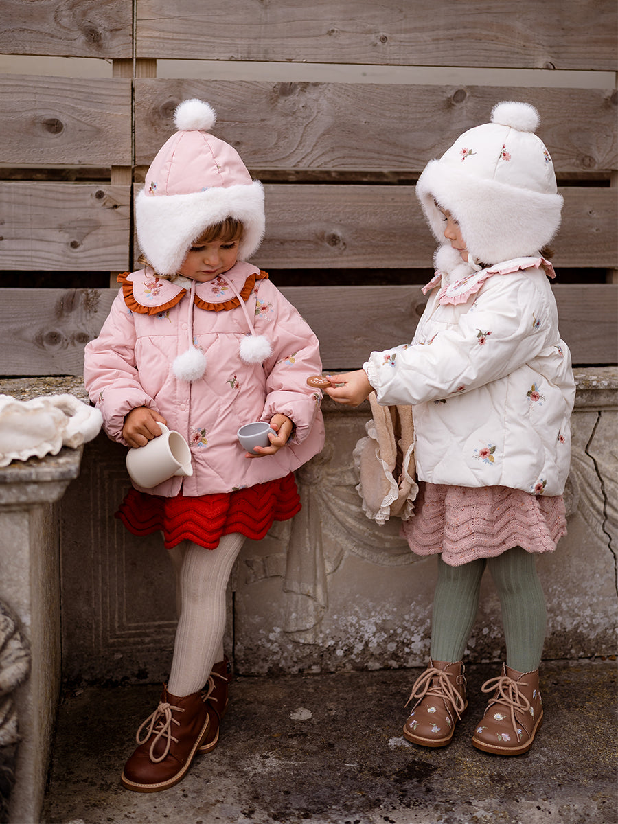 Jessielle Ankle Socks with Floral Ruffle, Misty Pink & Crème Brulee