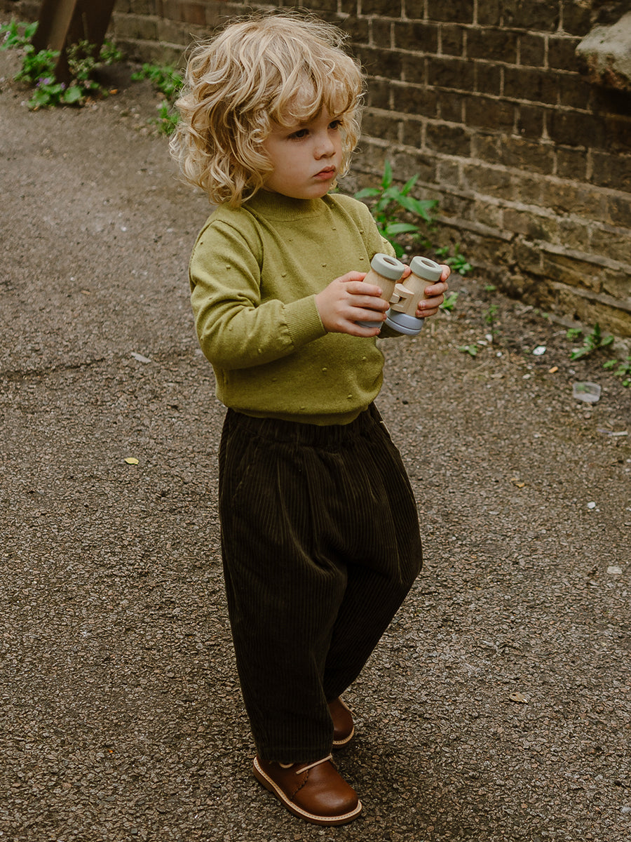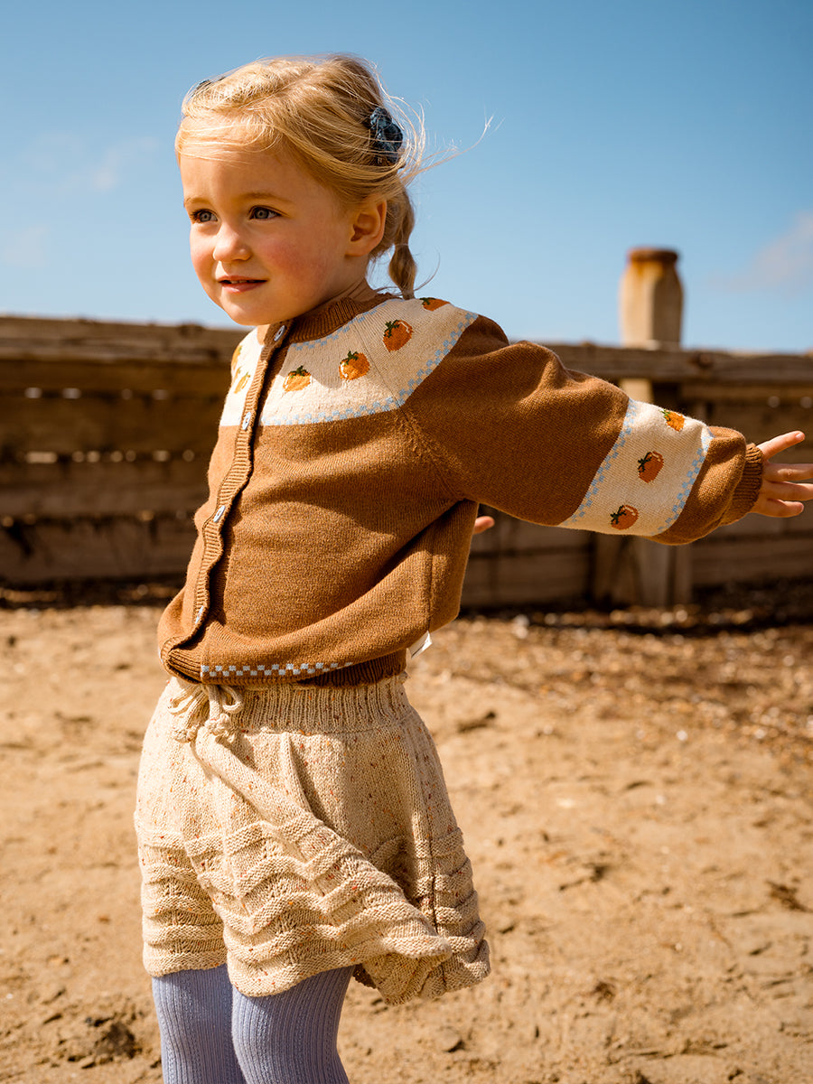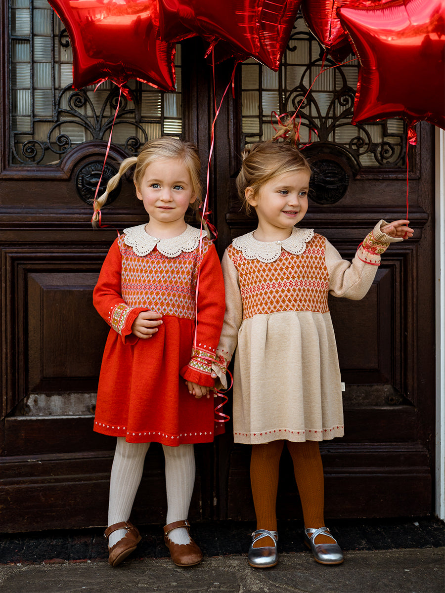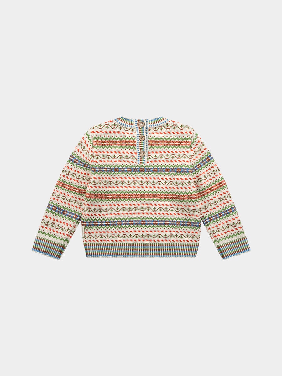 Crafted from the finest natural yarns - plush cashmere, extra-fine merino wool, and soft cotton - our knitwear wraps little ones in breathable warmth and everyday comfort. From timeless silhouettes to our signature Fair Isle patterns, each piece is designed and knitted in-house.