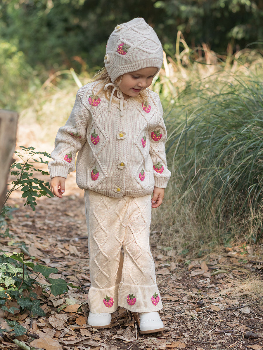 Strawberry Hand-Embroidered Knitted Pants, Royal Red