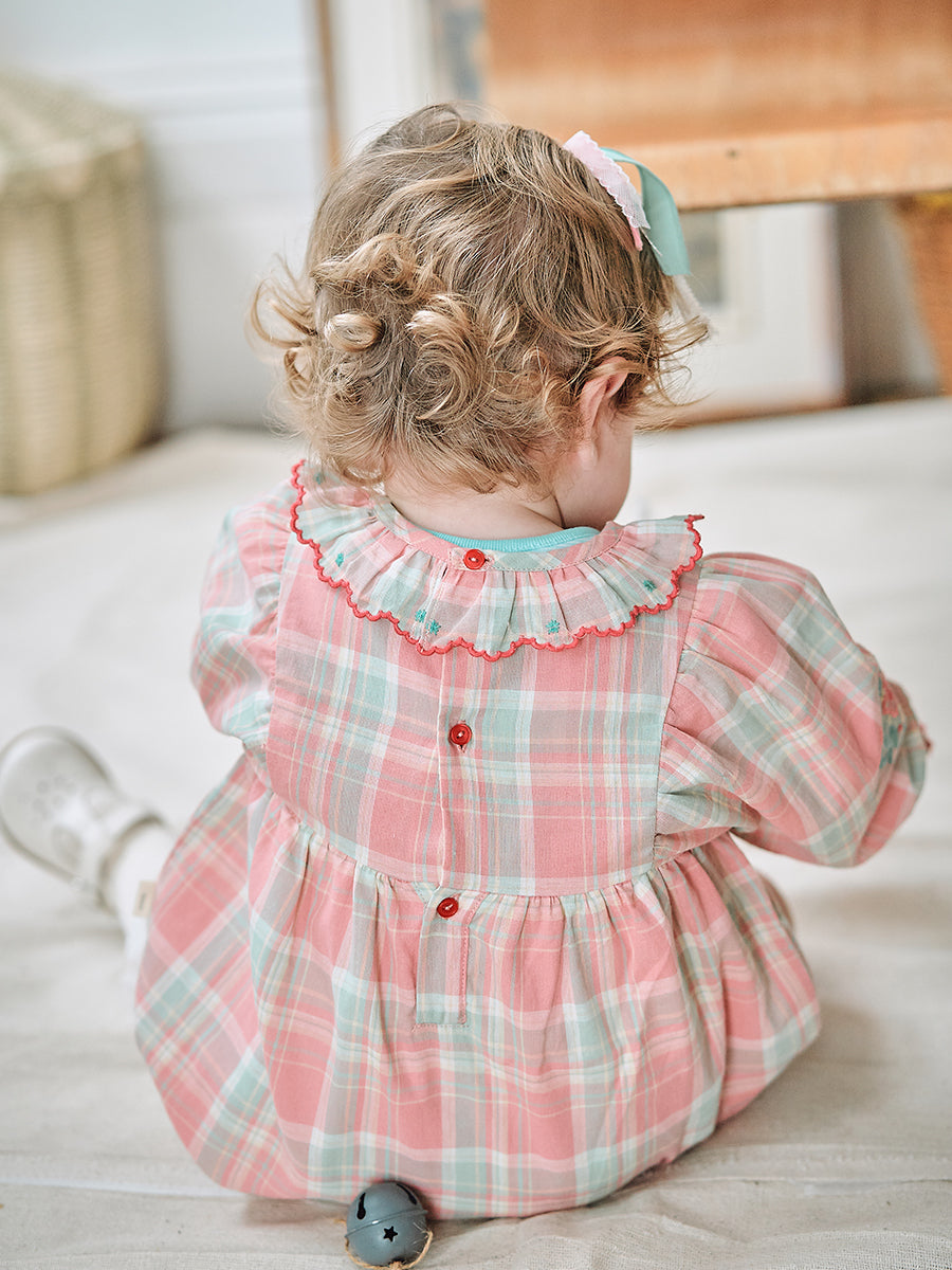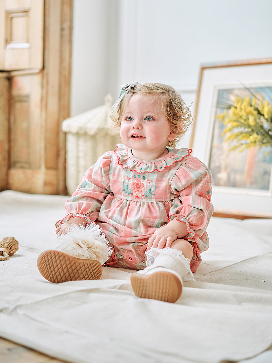Luss Embroidered Romper, Green Check