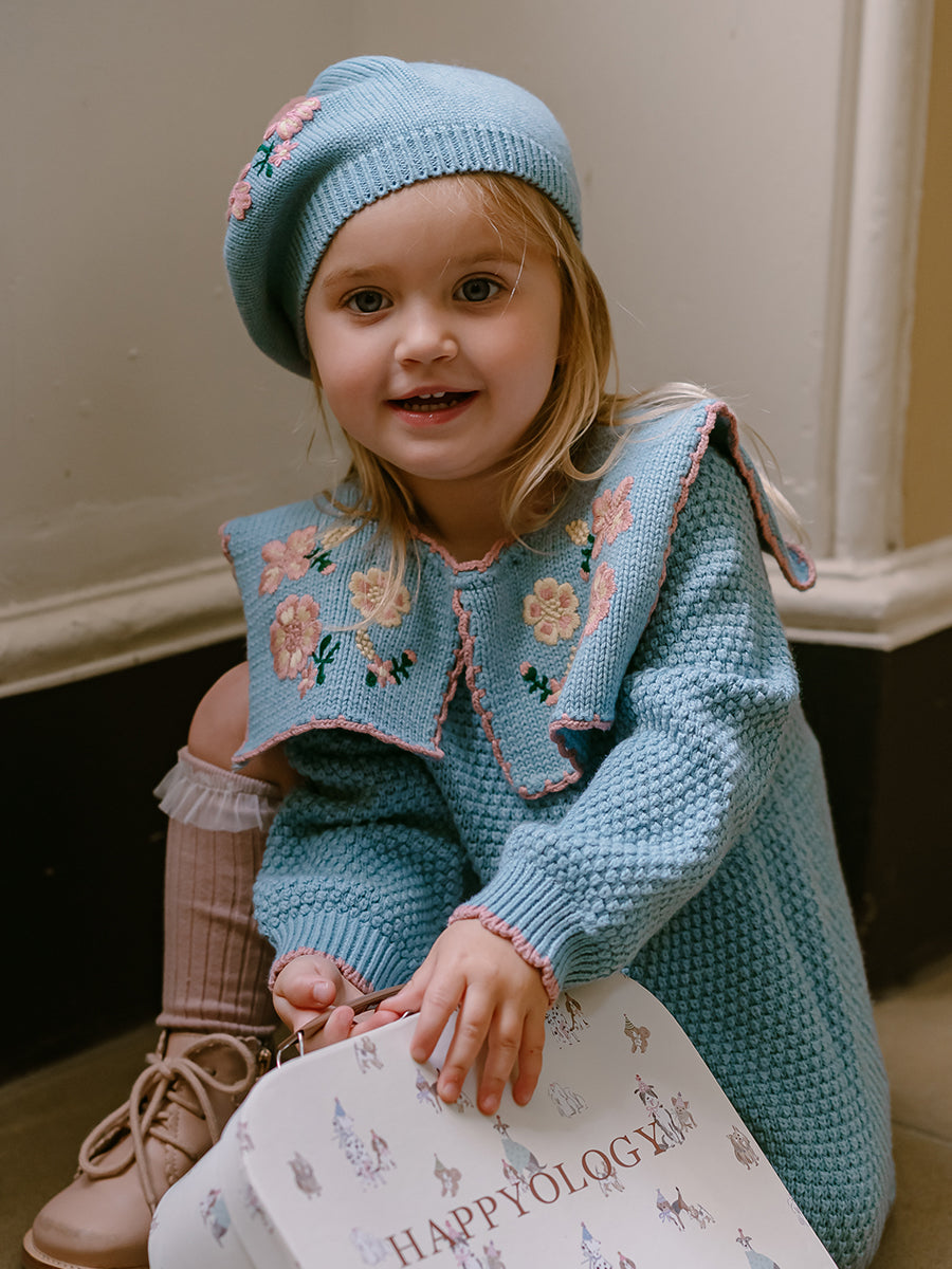Betty Knitted Beret Hat, Aqua Blue