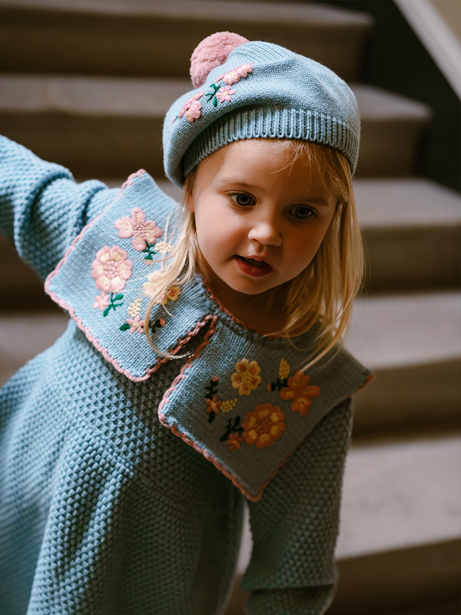 Betty Knitted Beret Hat, Aqua Blue