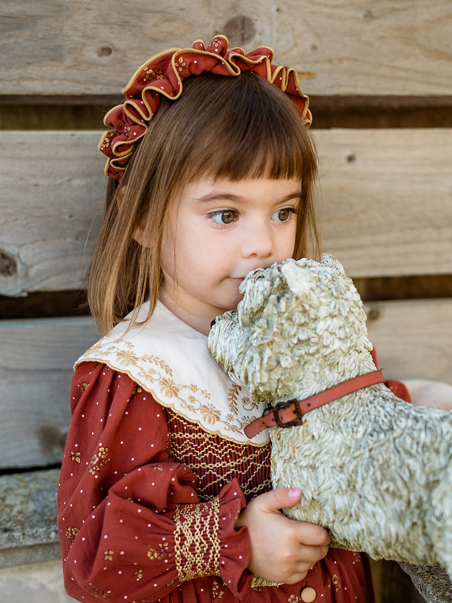 Strawberry Hand-Embroidered Bonnet, Royal Red