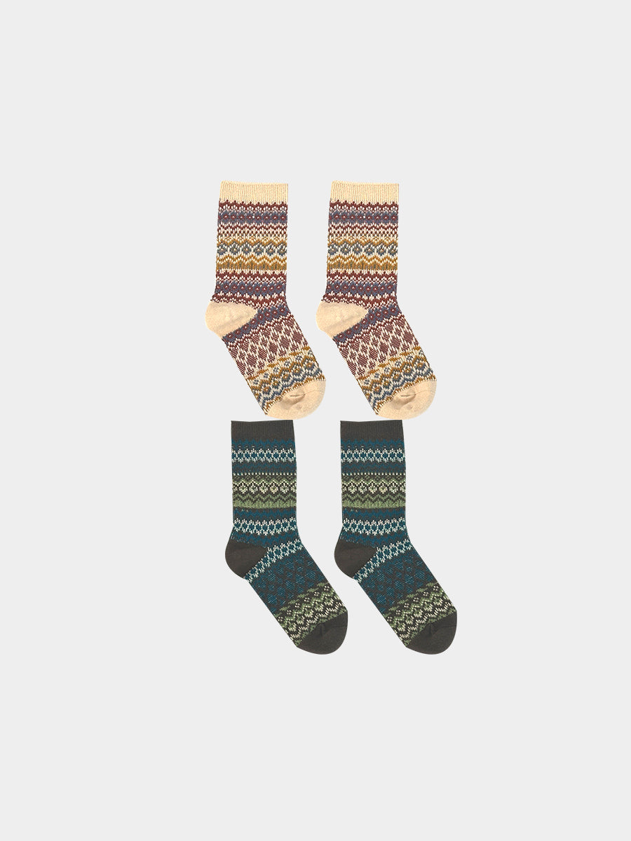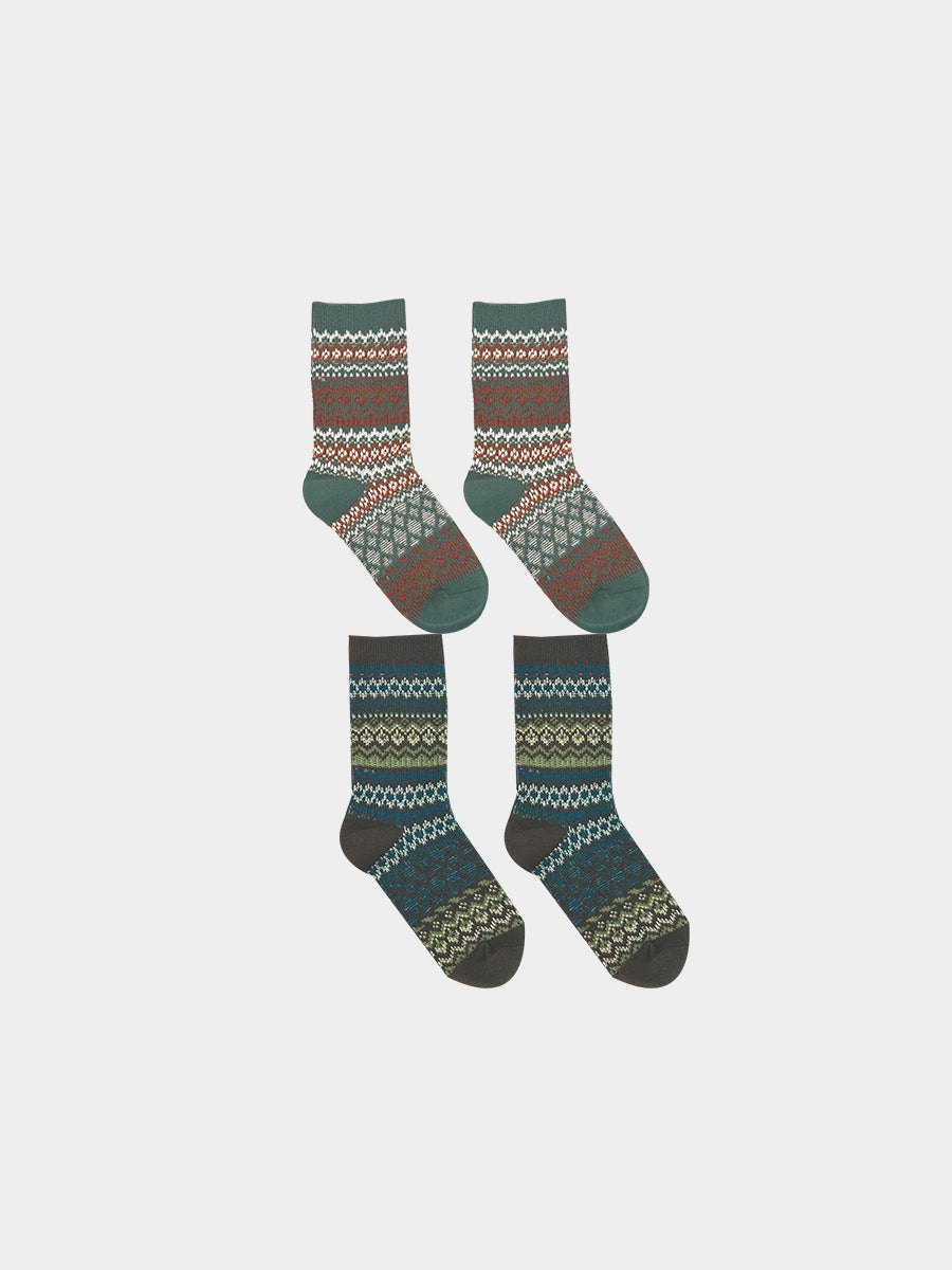 Fair Isle Socks, Pine Green & Light Olive Brown