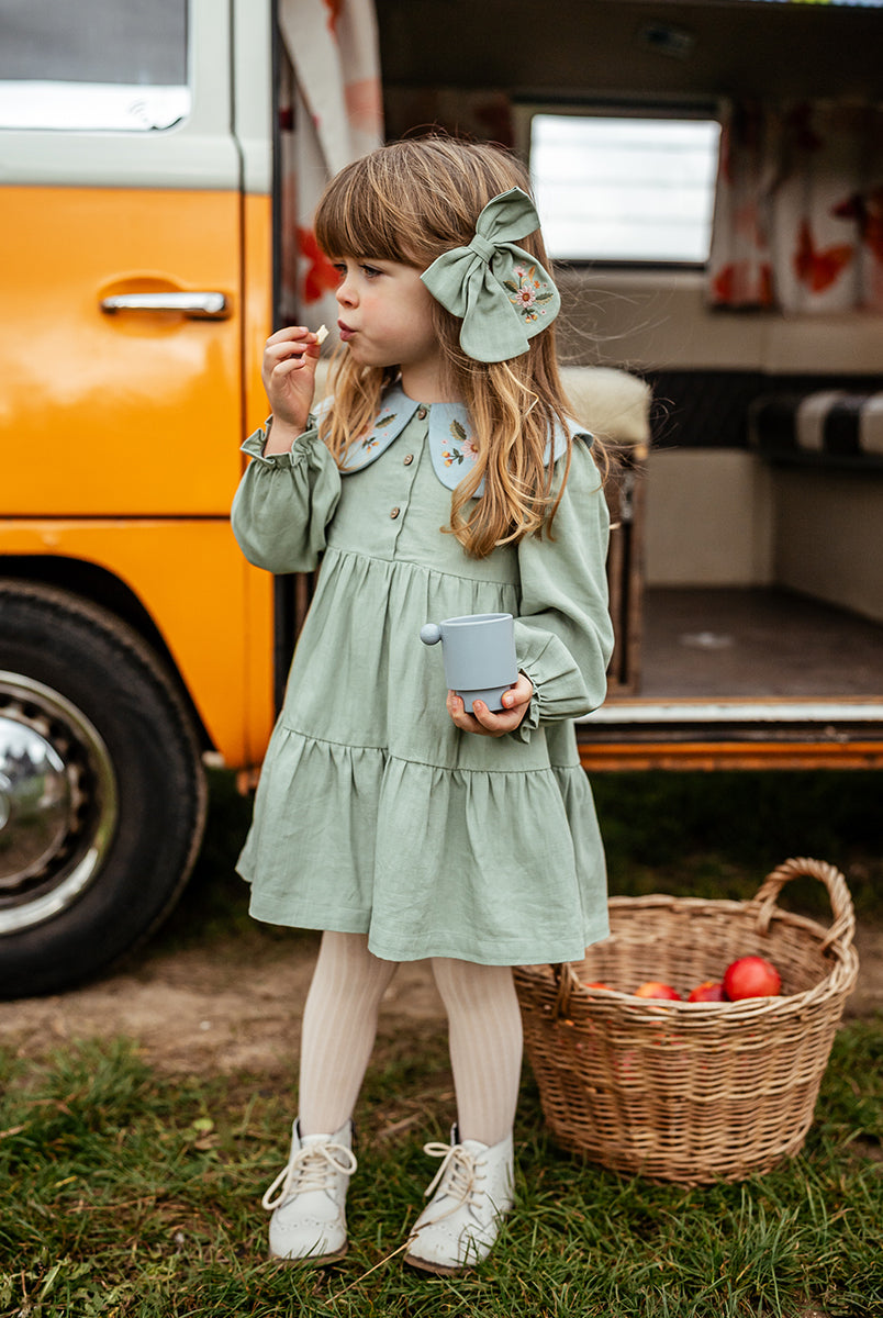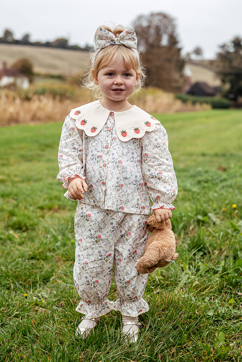 Titled Wildflowers & Wonders, the collection explores the idea of sensory nostalgia - clothing designed to evoke memory through softness and craft. Romantic florals scatter across airy organic cottons, while delicate hand-smocking and embroidery add a quietly luxurious, heirloom touch so clothing feels not only beautiful but also comforting with the familiarity of favourite garments worn through long summer days.