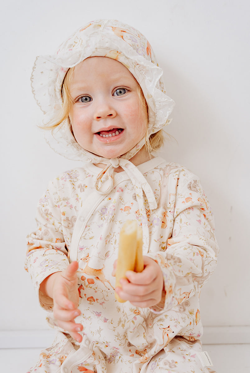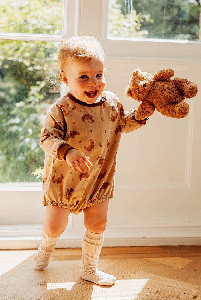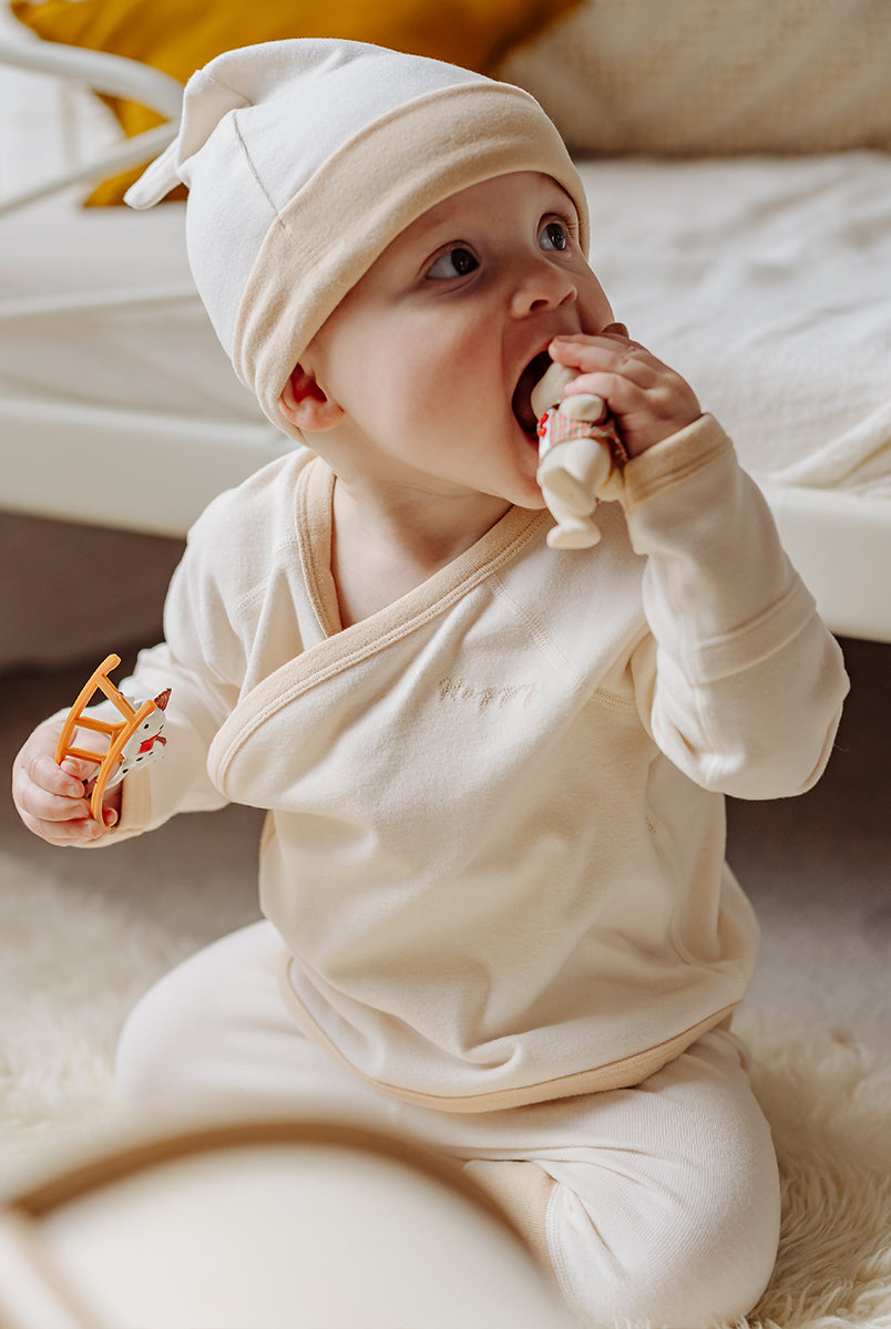 Made for first cuddles and tiny adventures, our newborn collection is crafted from buttery-soft organic cotton jersey and adorned with in-house prints. Gentle, breathable, and beautifully lightweight - each piece feels like a pure second skin for delicate newborn days.