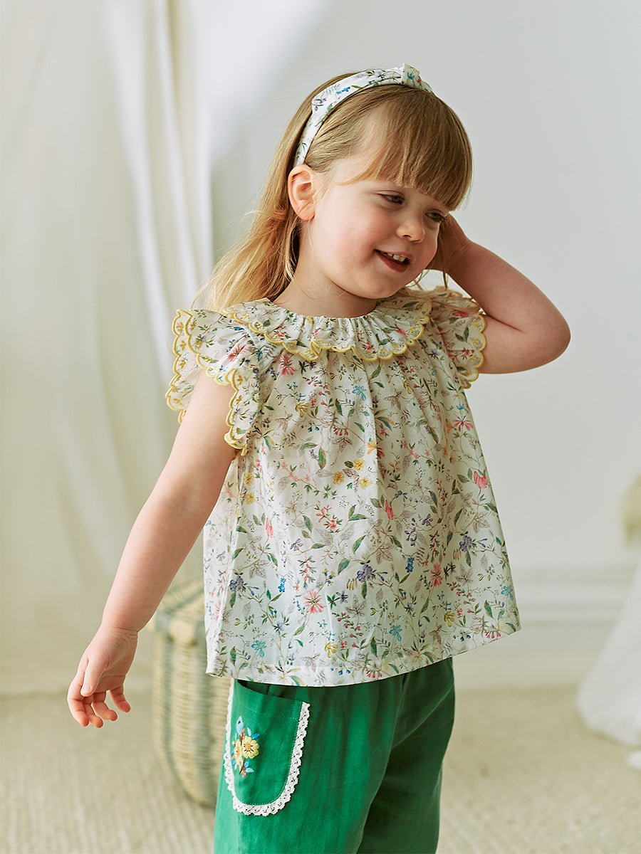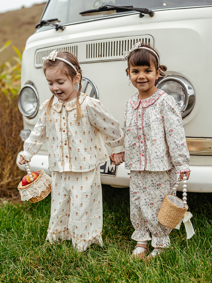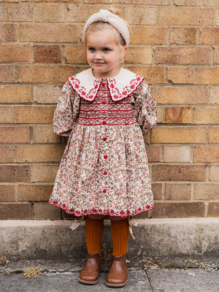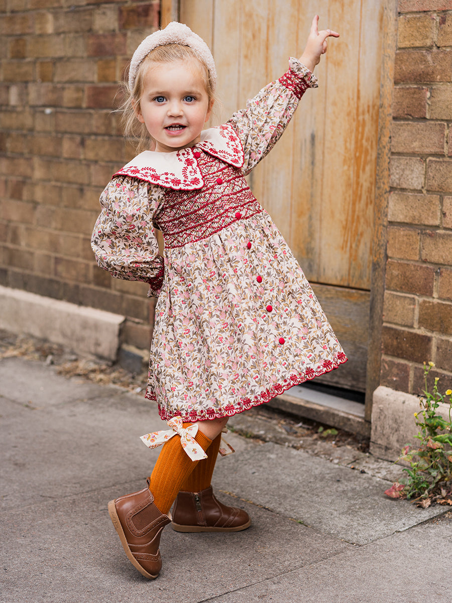 I adore the Quinn ladybird romper, the khaki ladybird embroidered trousers are also a favourite. And the Lindsey hand-smocking blouse – the romantic frills are adorable and such a pretty print.