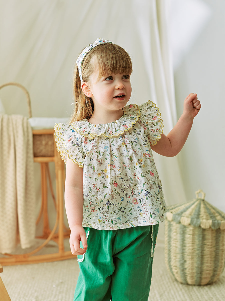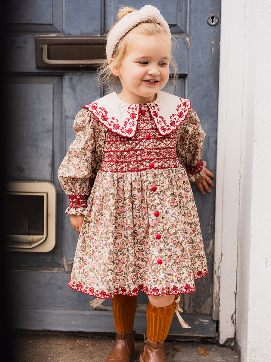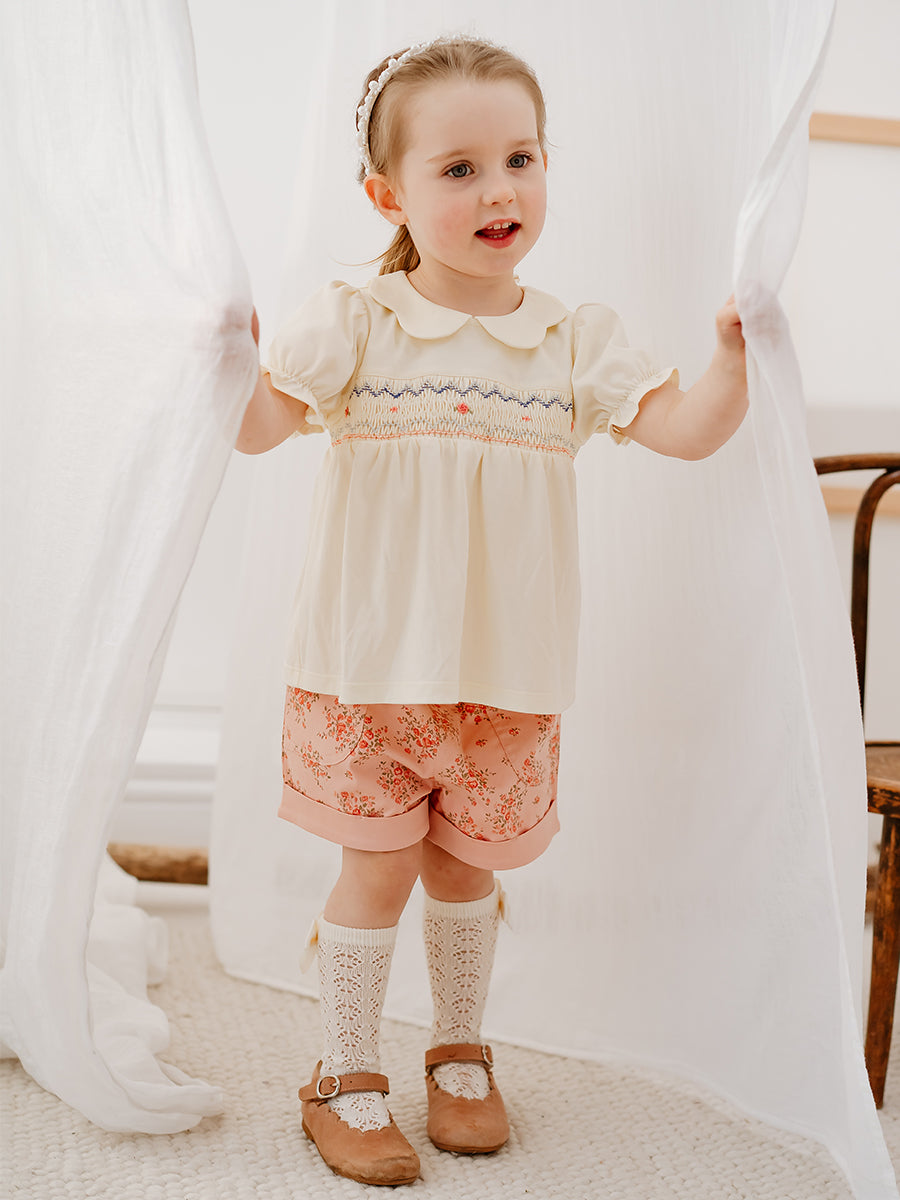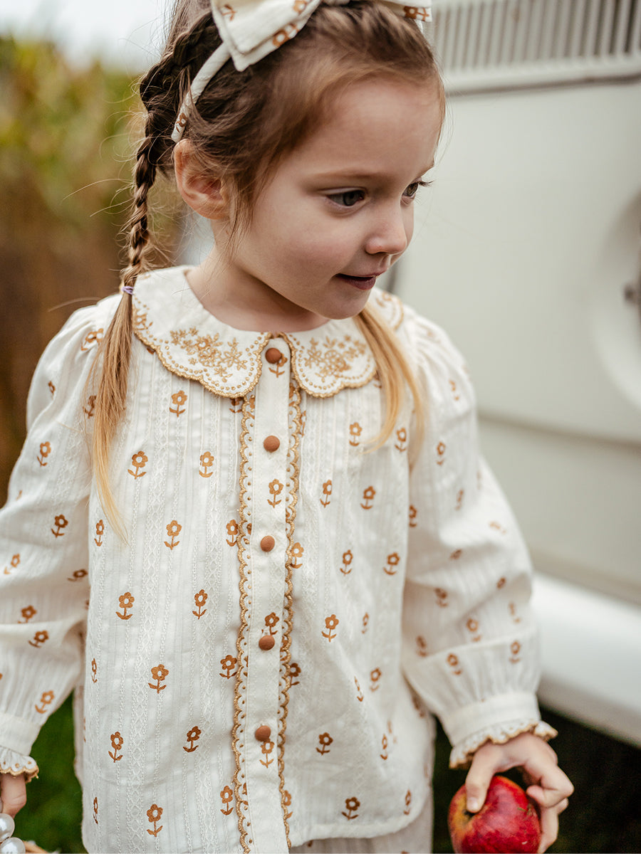 I adore the Quinn ladybird romper, the khaki ladybird embroidered trousers are also a favourite. And the Lindsey hand-smocking blouse – the romantic frills are adorable and such a pretty print.