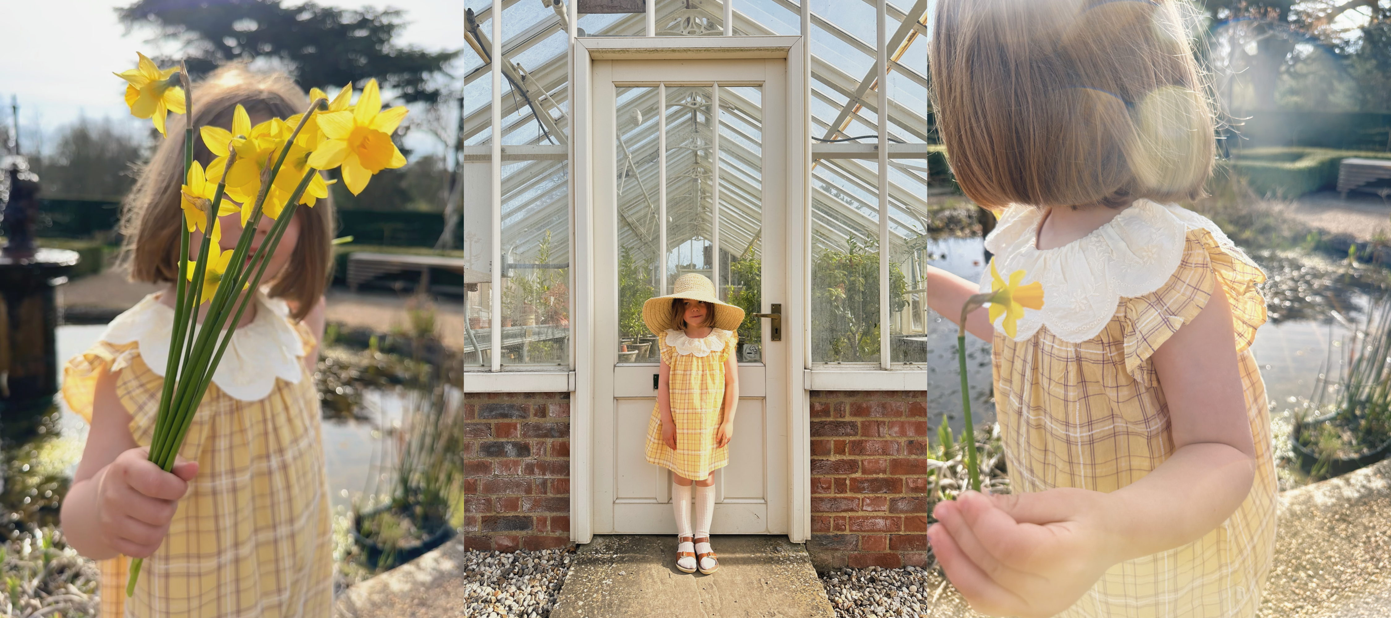 The yellow dress was one of my favourites - the perfect spring and Easter piece. I love a sock with a sandal, so I styled it that way and added my own oversized straw hat for an extra touch of charm. It felt sweet but still relaxed, Cece loved it too. She wore that look on repeat.