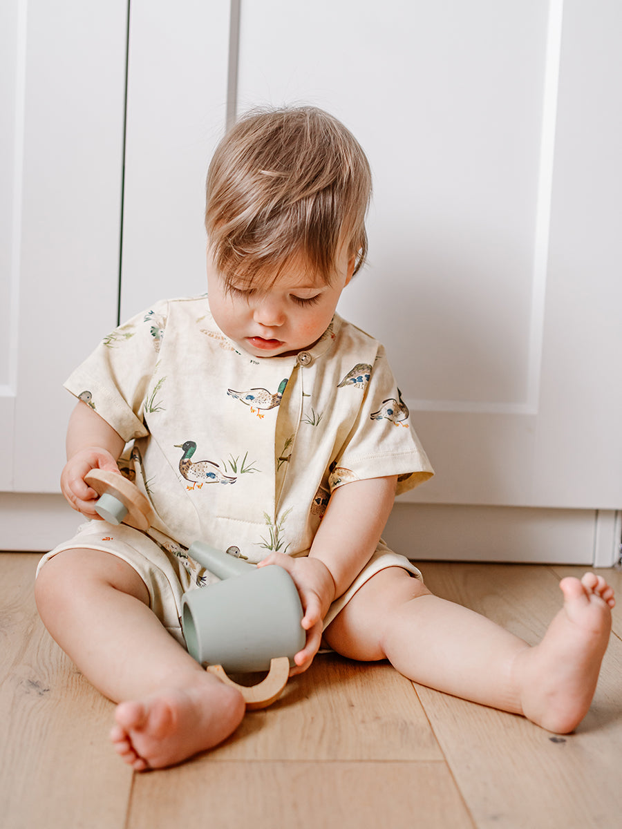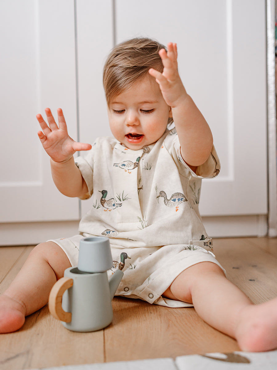 Porto Jersey Romper, Little Teals, Cream