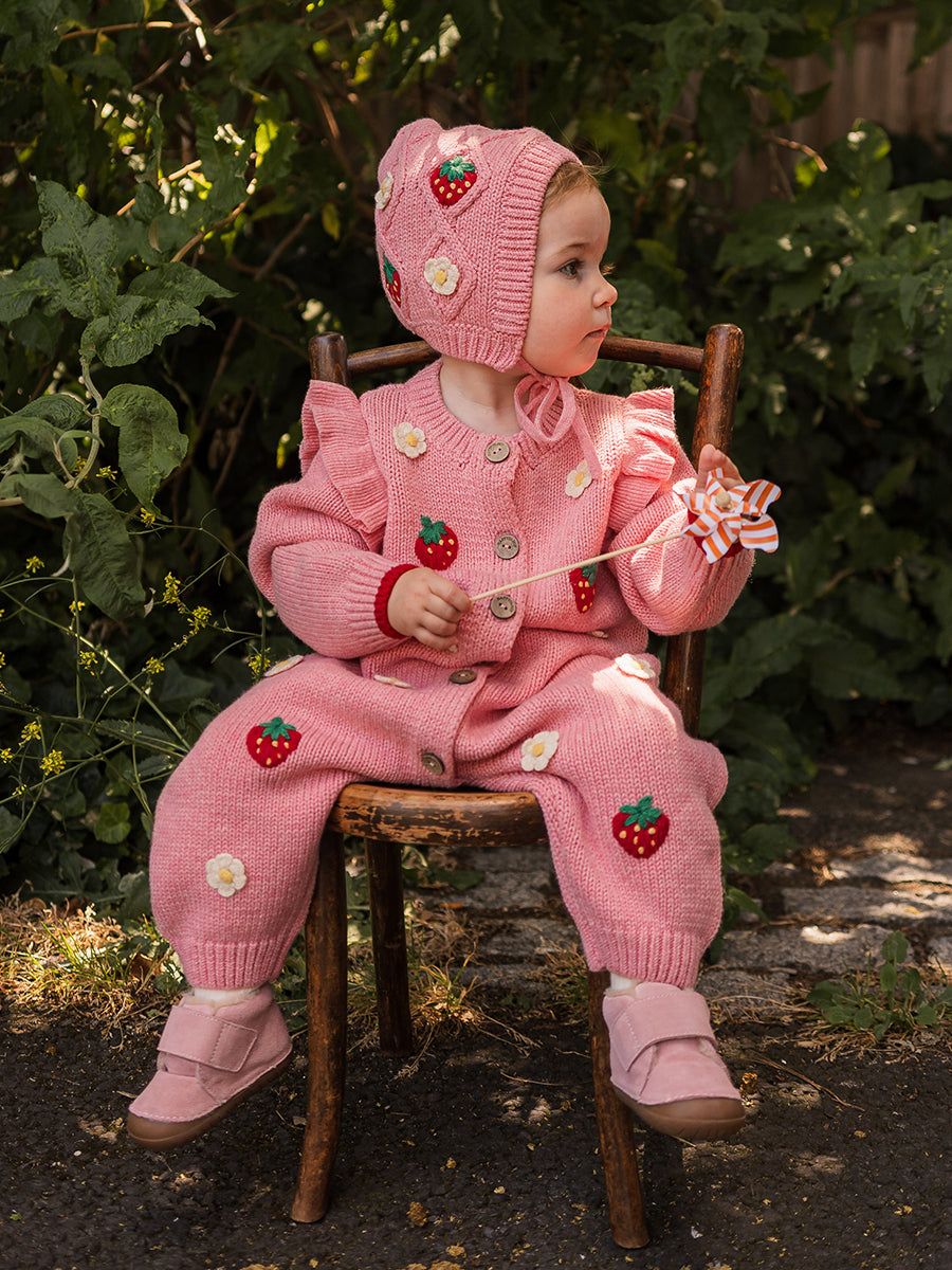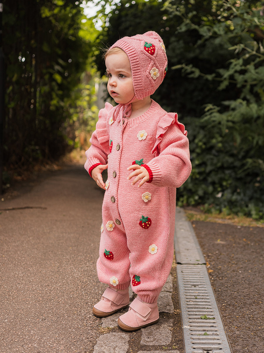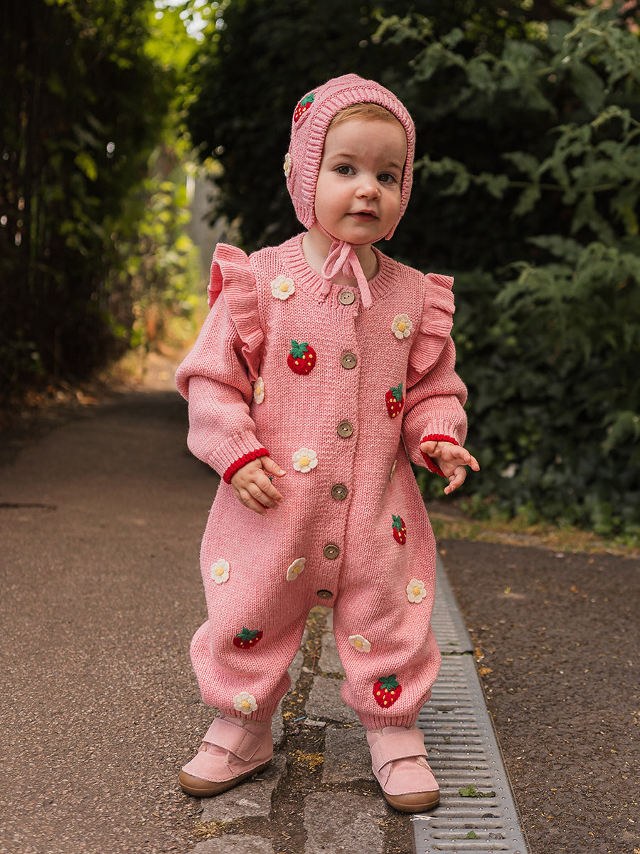 Strawberry Hand-Embroidered Romper, Princess Pink