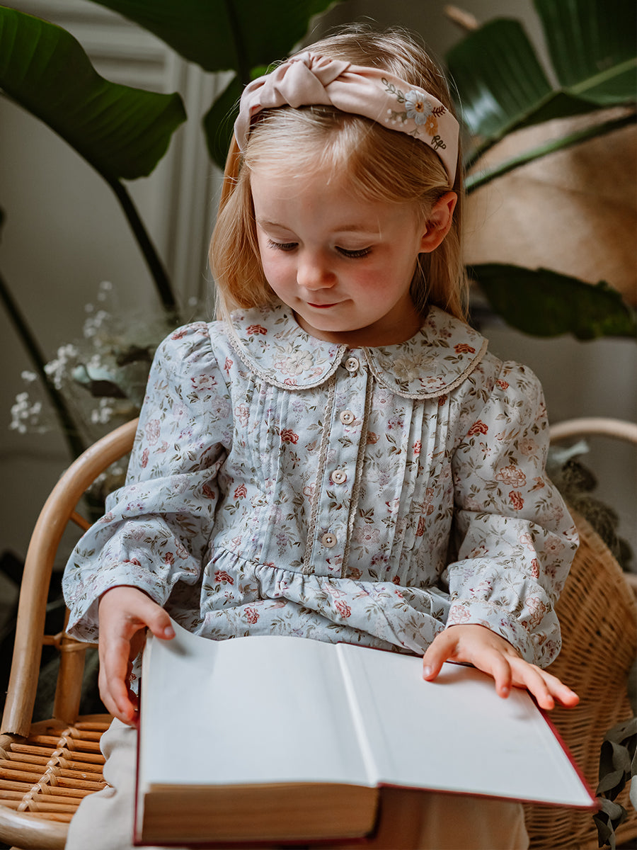 Adelaide Hand-Embroidered Romper, Vintage Bouquet, Rose