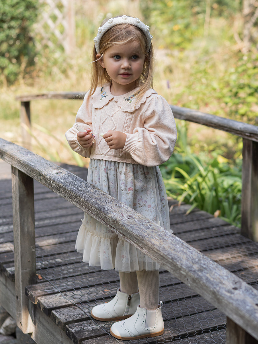 Abigail Hand-Smocked Dress, Farnese Garden, Cream