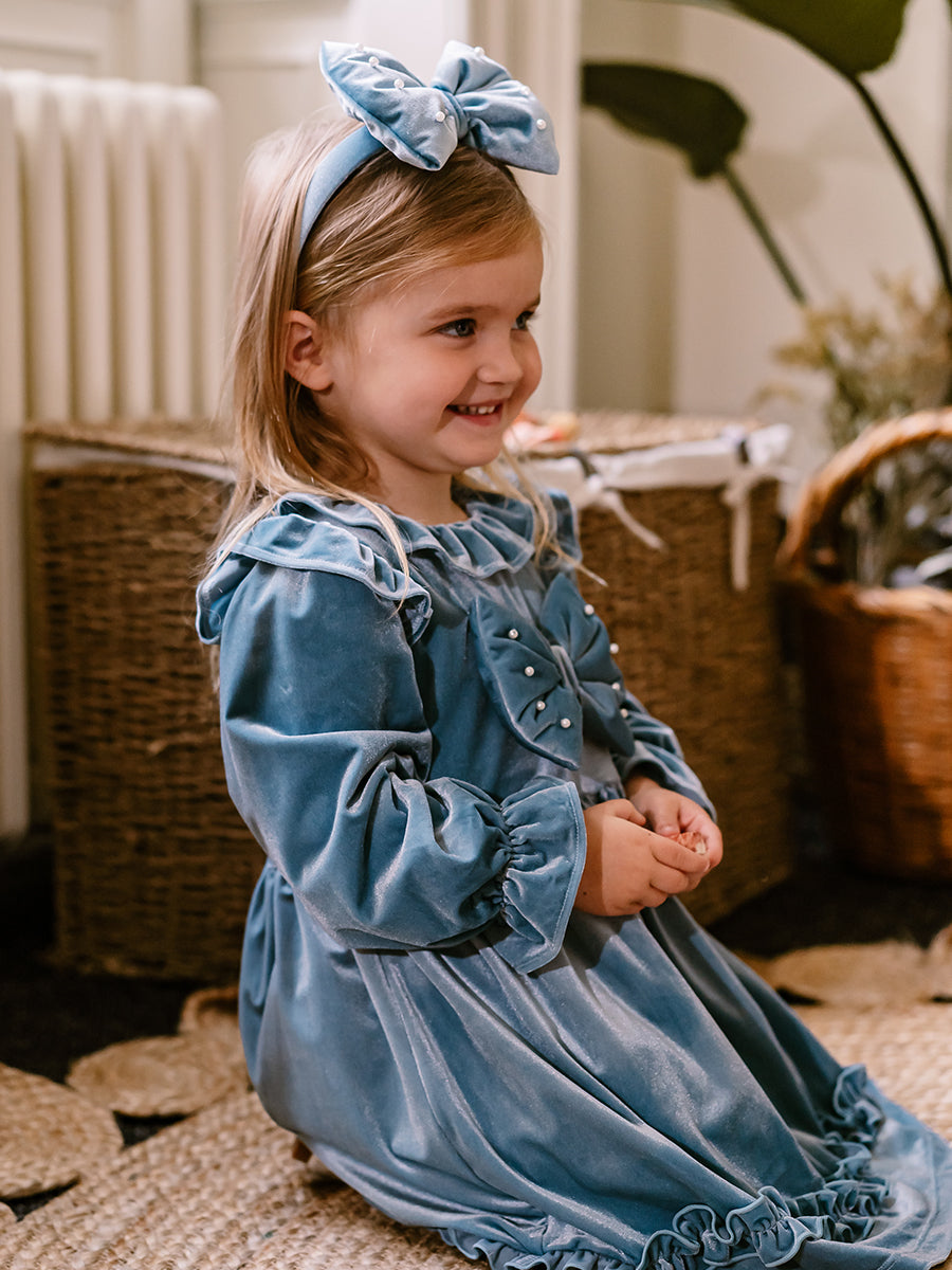 Abigail Hand-Smocked Dress, Wisteria Garden, Blue