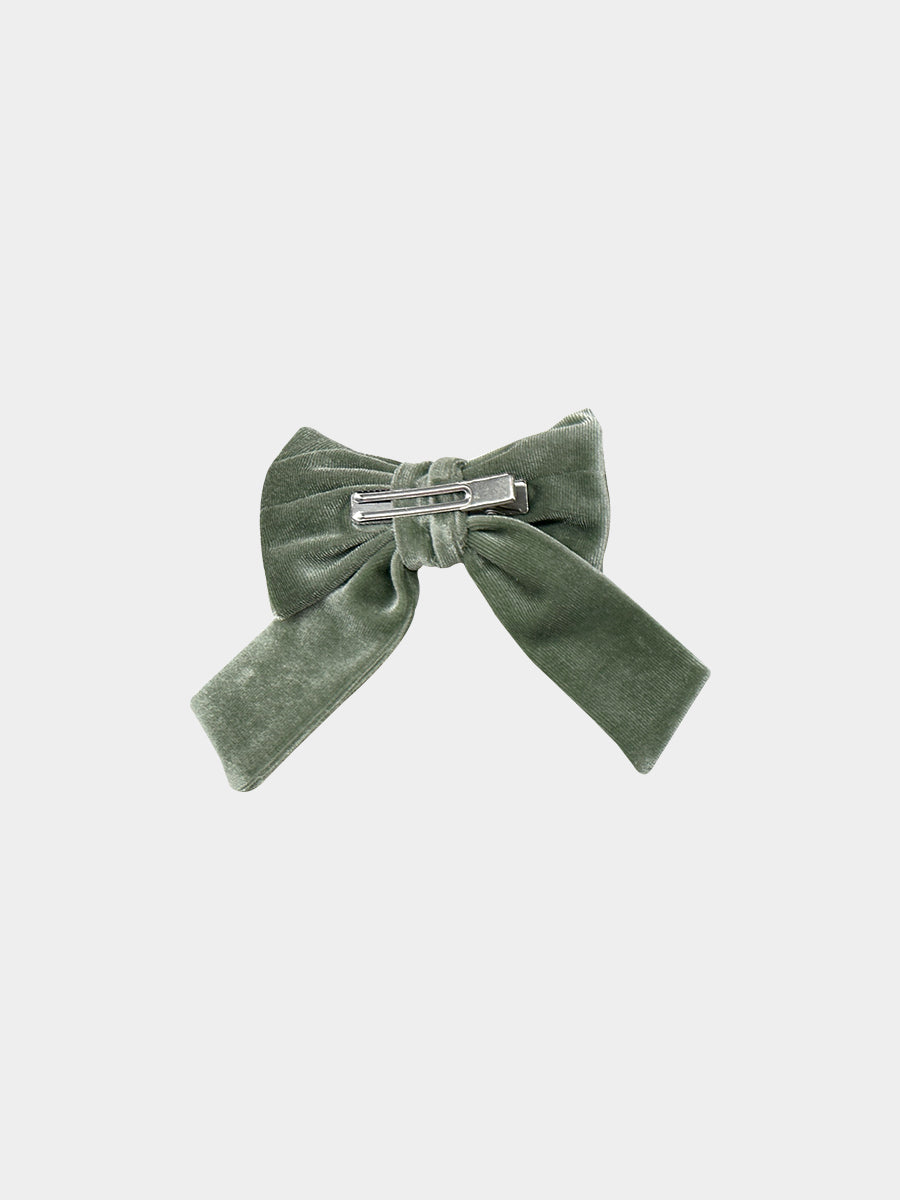 Vienna Embroidered Bow Hair Clip, Moss Green