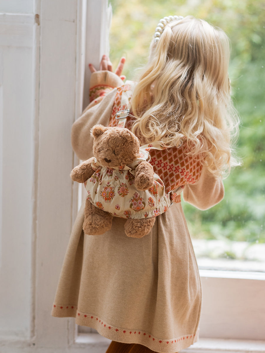 Teddy Bear Overall Shorts, Wildflower Polka, Burgundy
