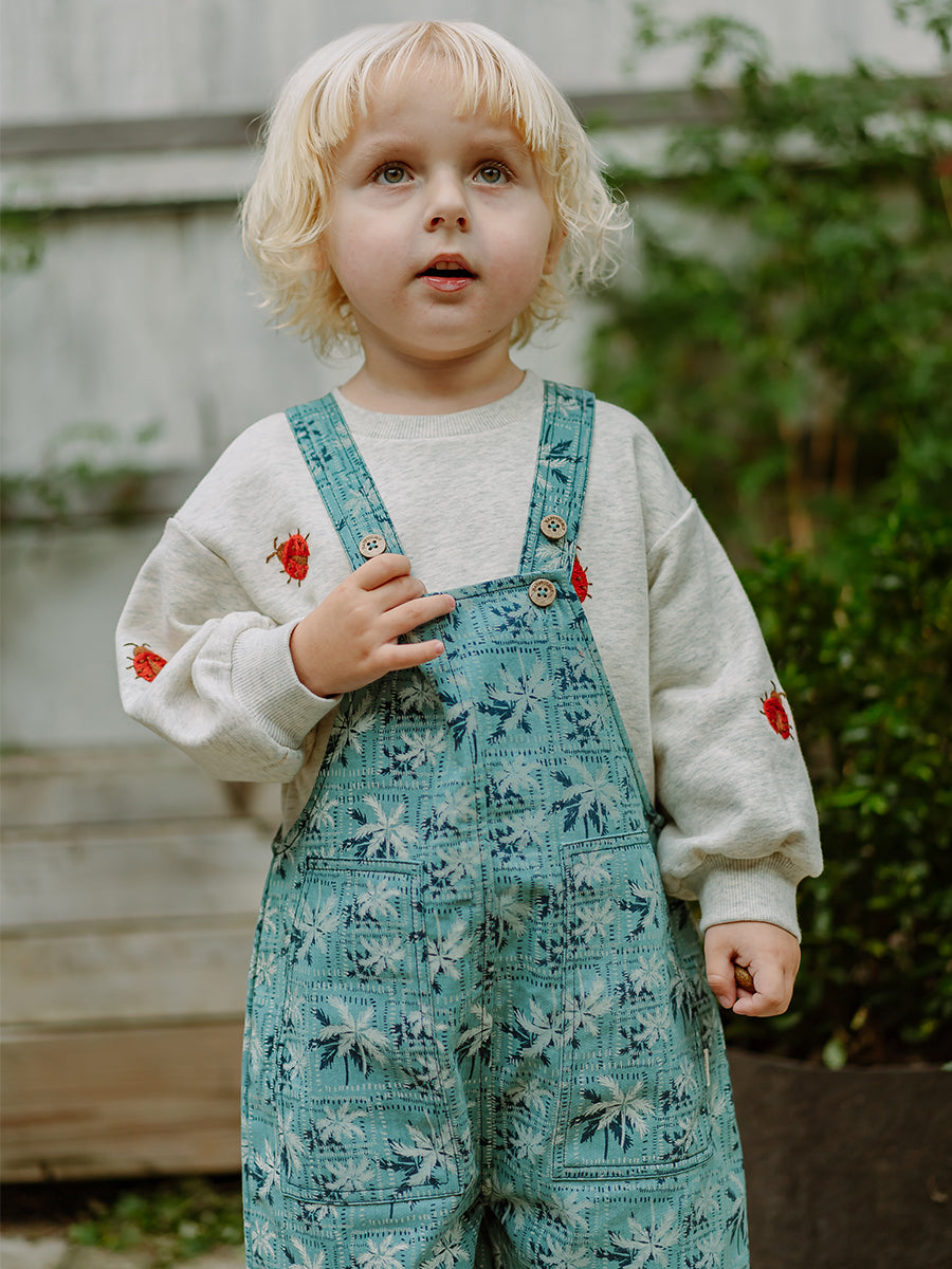 Teddy Bear Overall Shorts, Leela Botanic, Teal