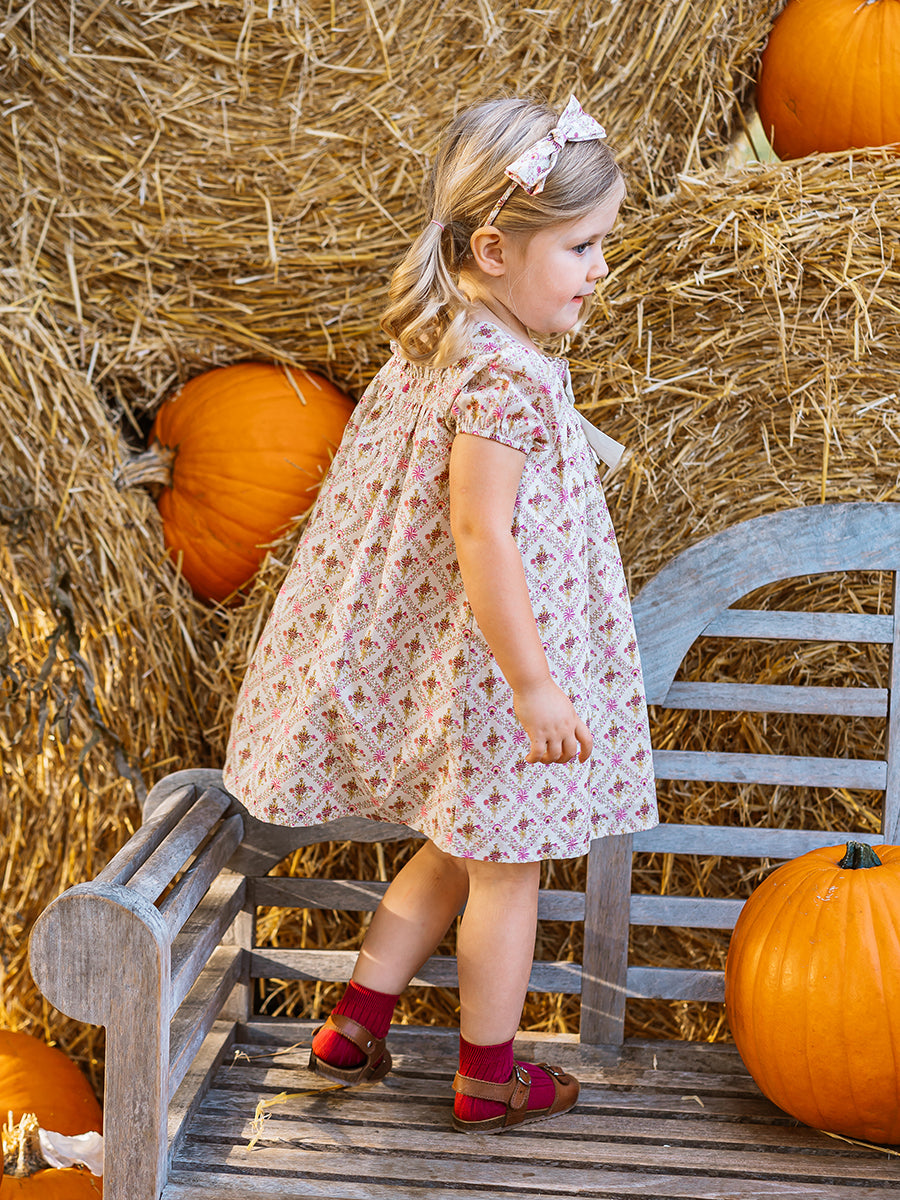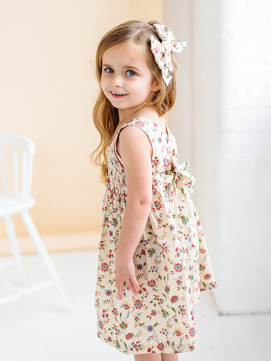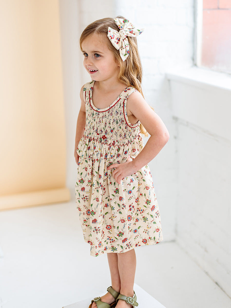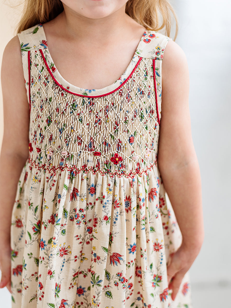 Abigail Hand-Smocked Dress, Farnese Garden, Cream