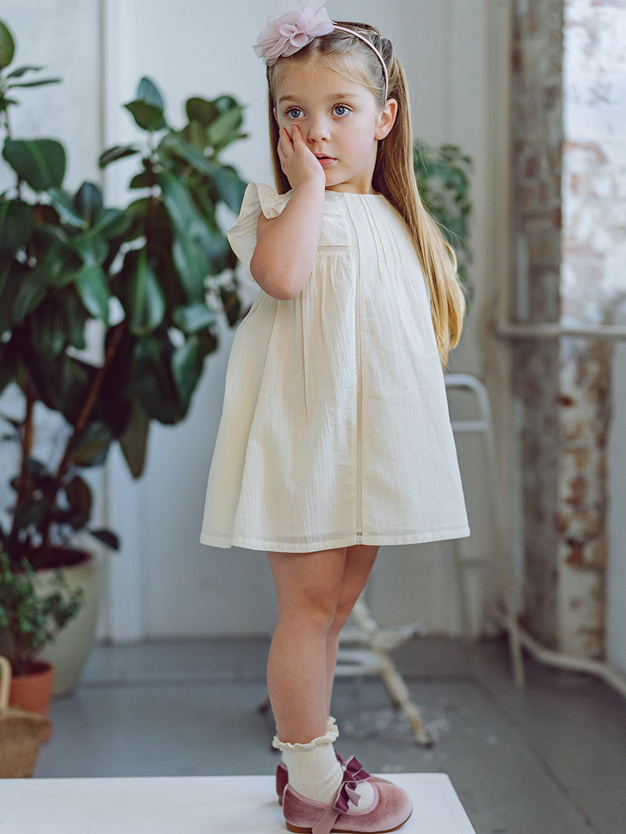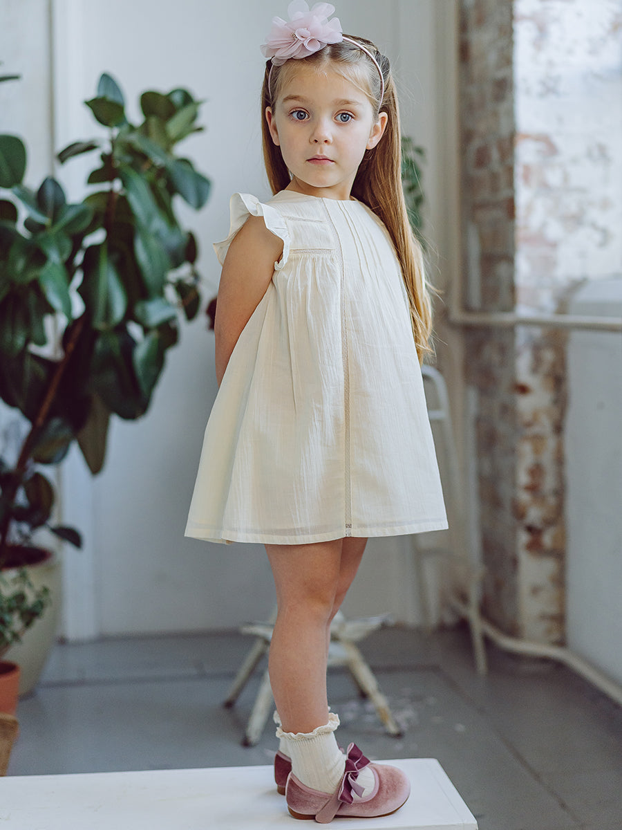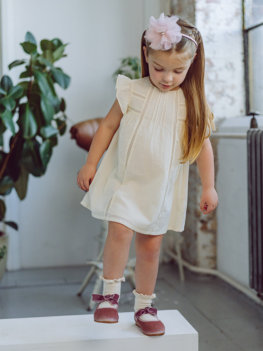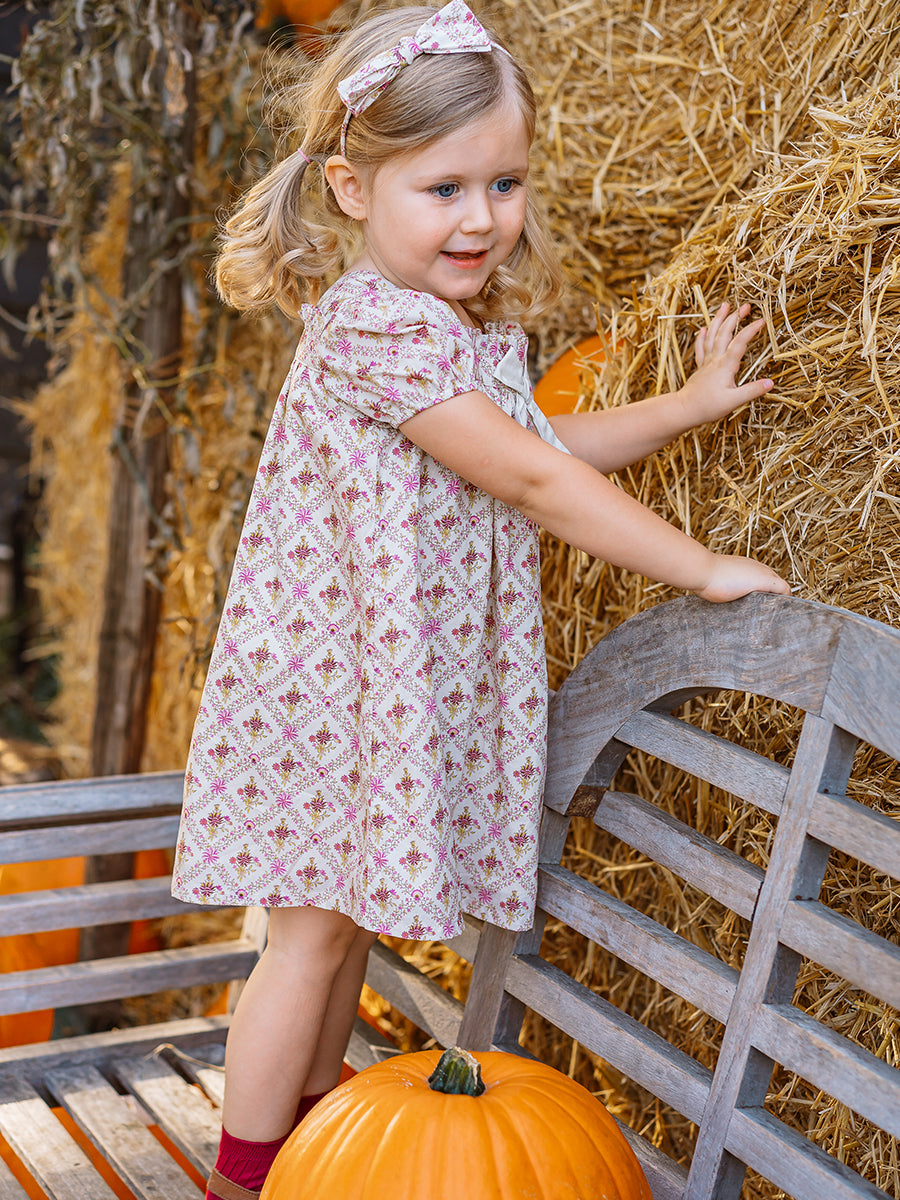 Abigail Hand-Smocked Dress, Farnese Garden, Cream