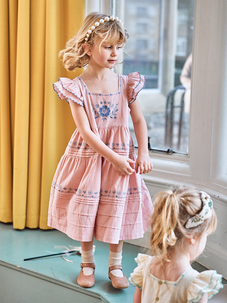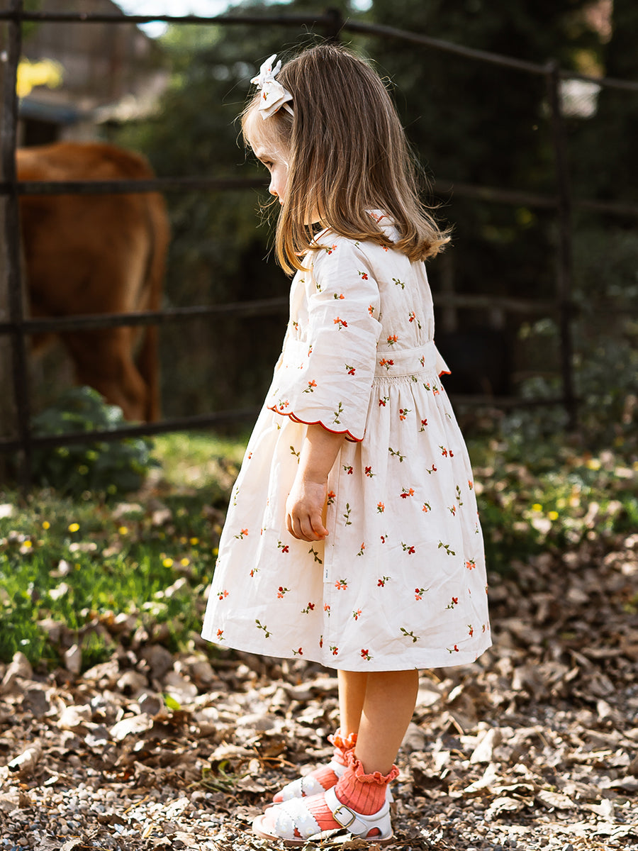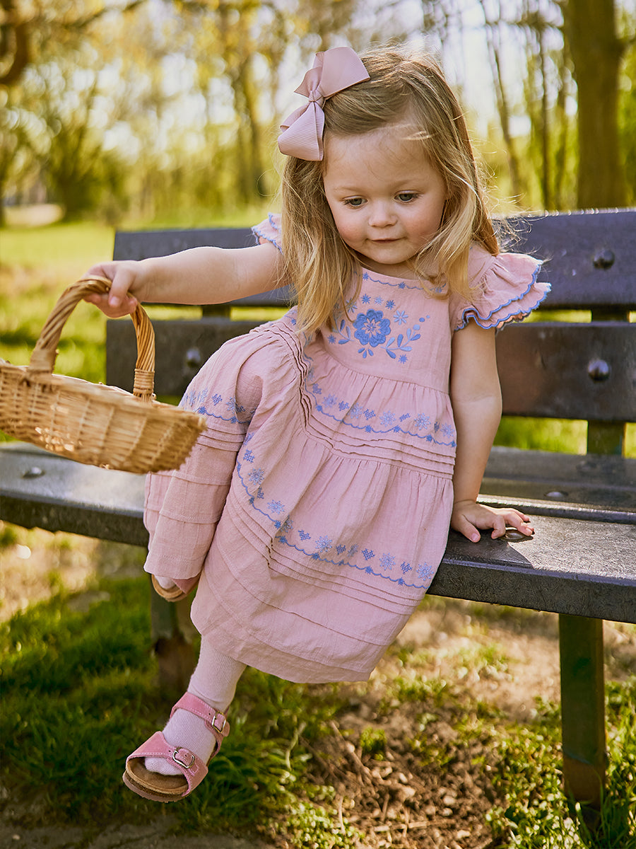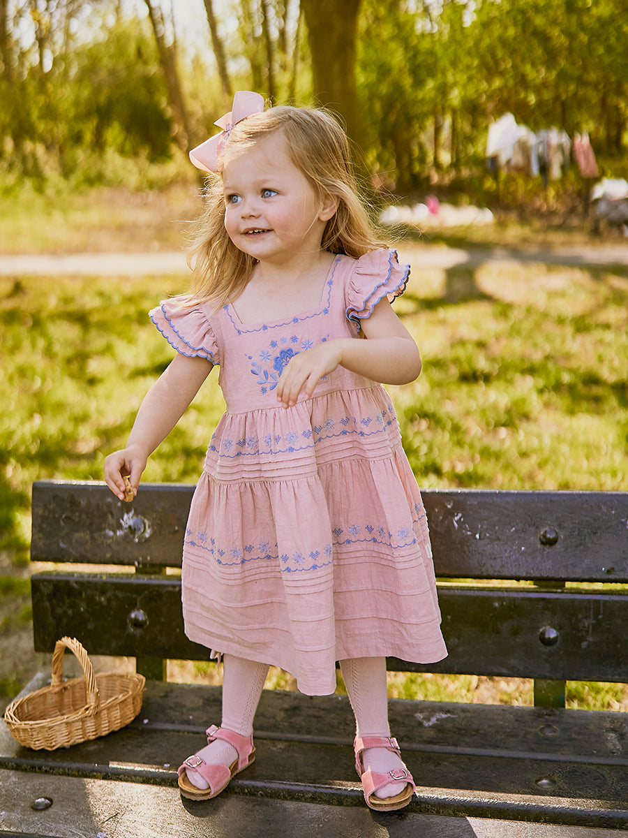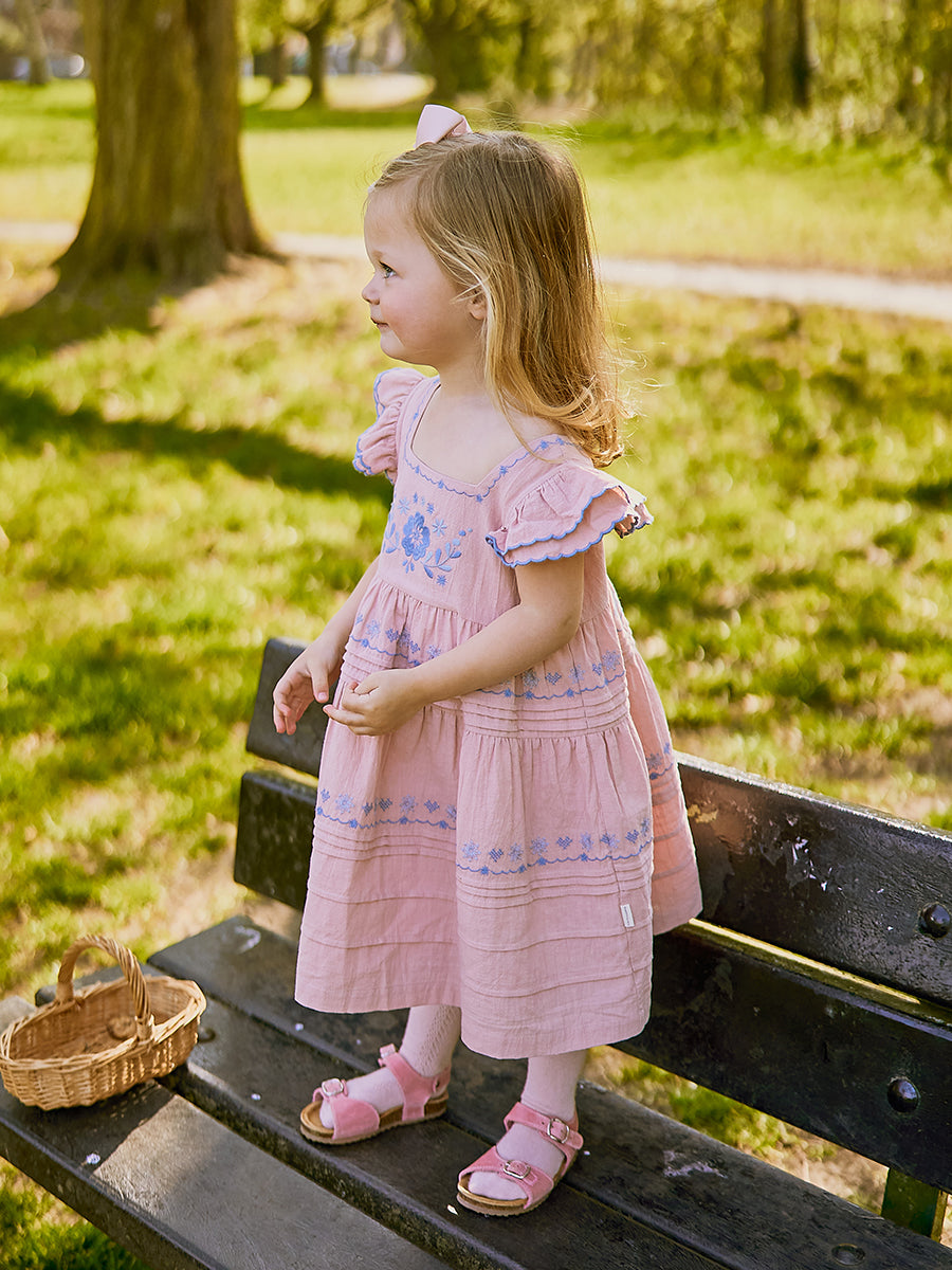 Laila Embroidered Dress, Strawberry Flower Field, Blush
