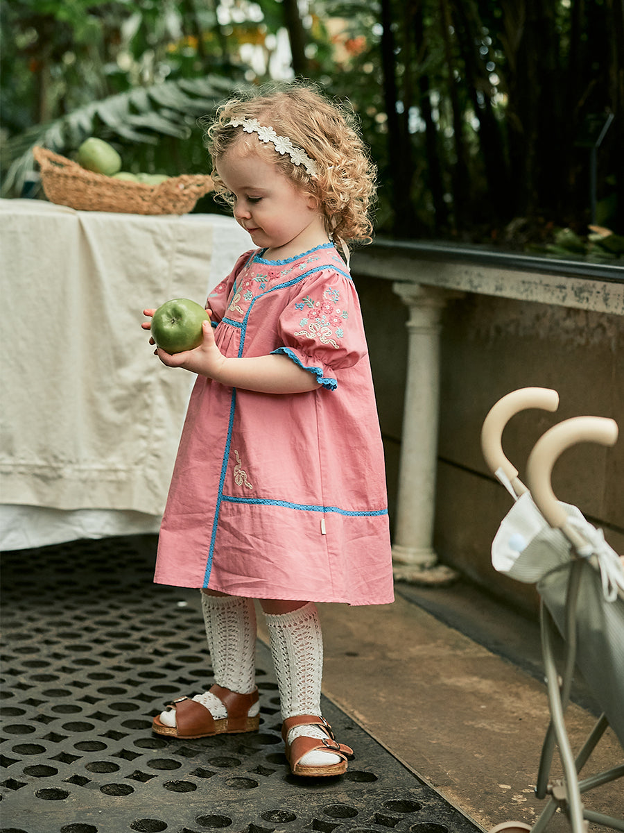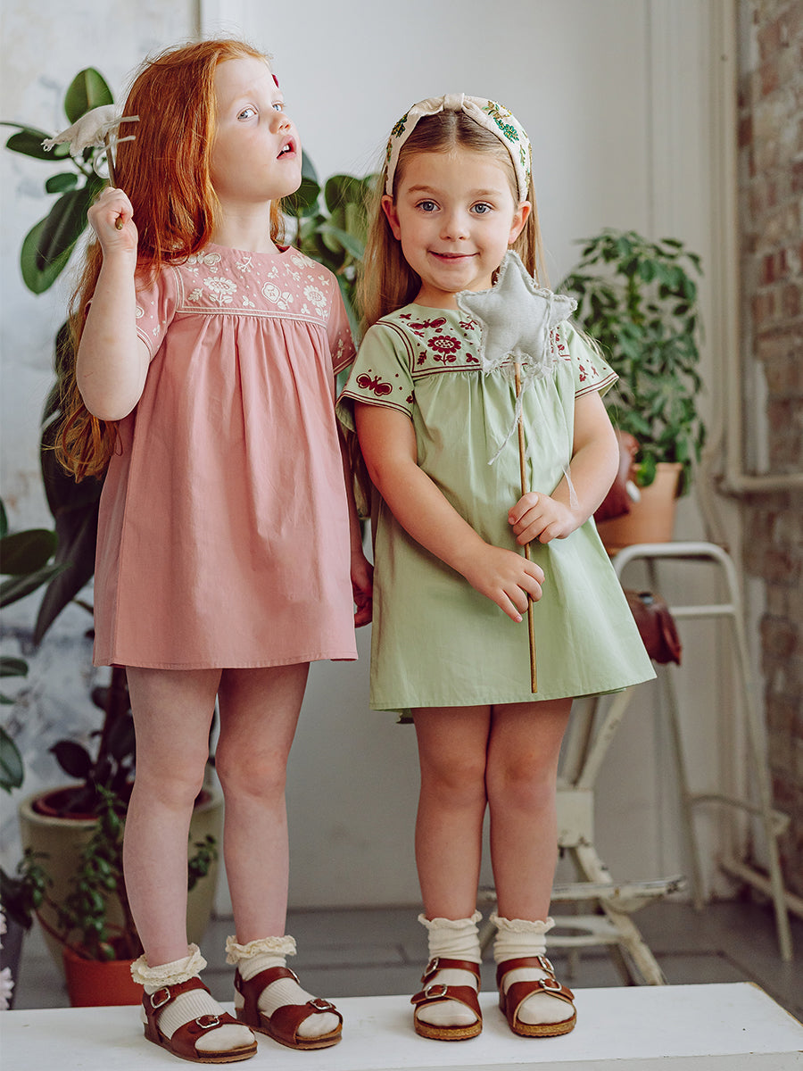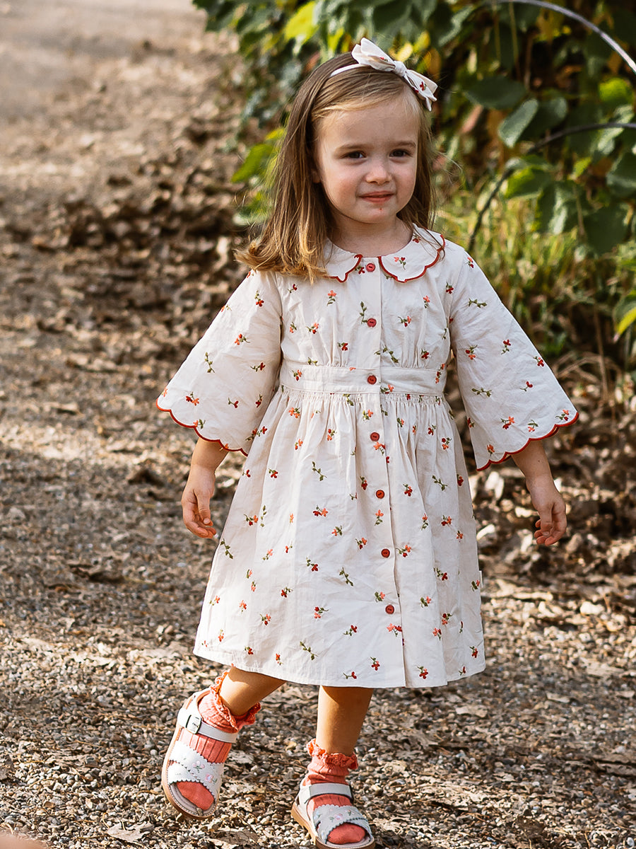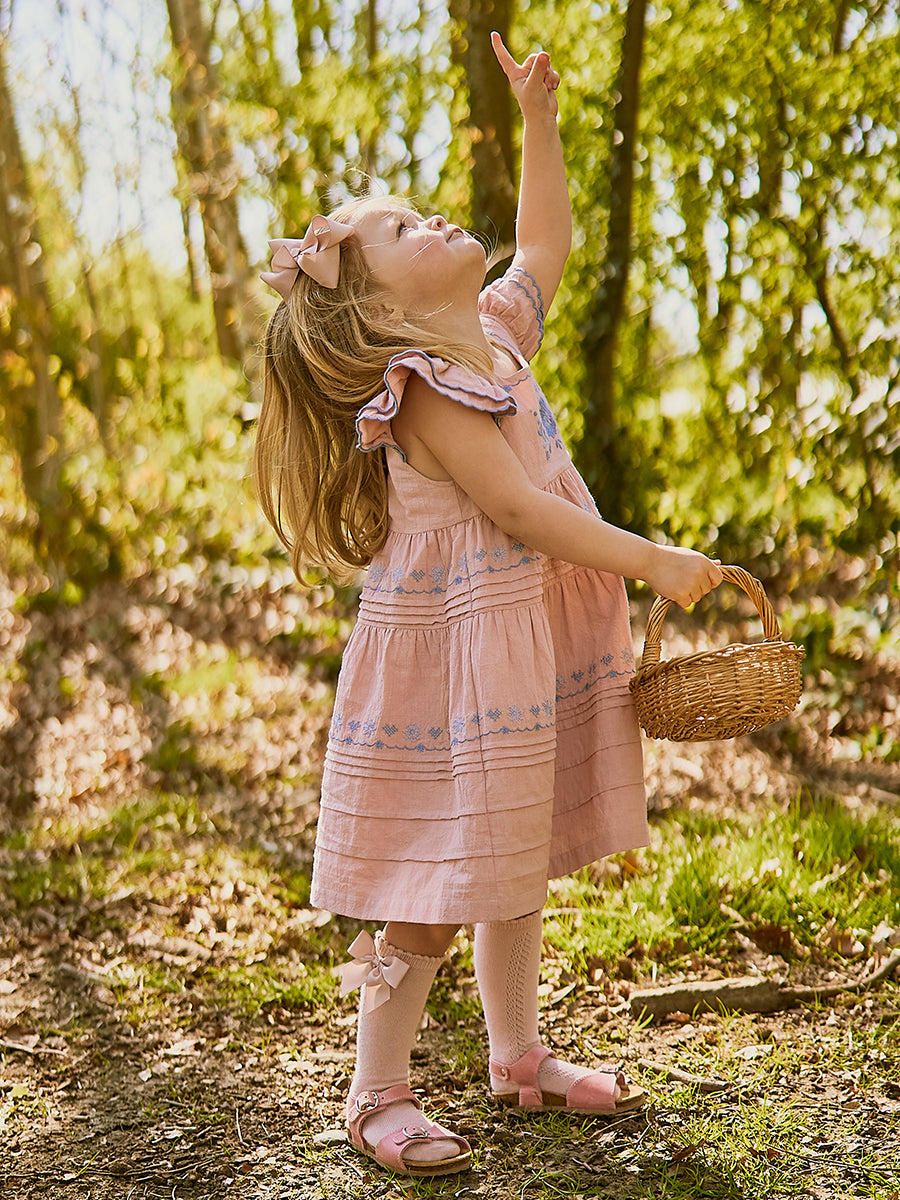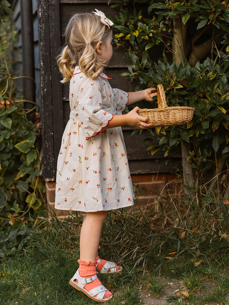 Laila Embroidered Dress, Strawberry Flower Field, Blush