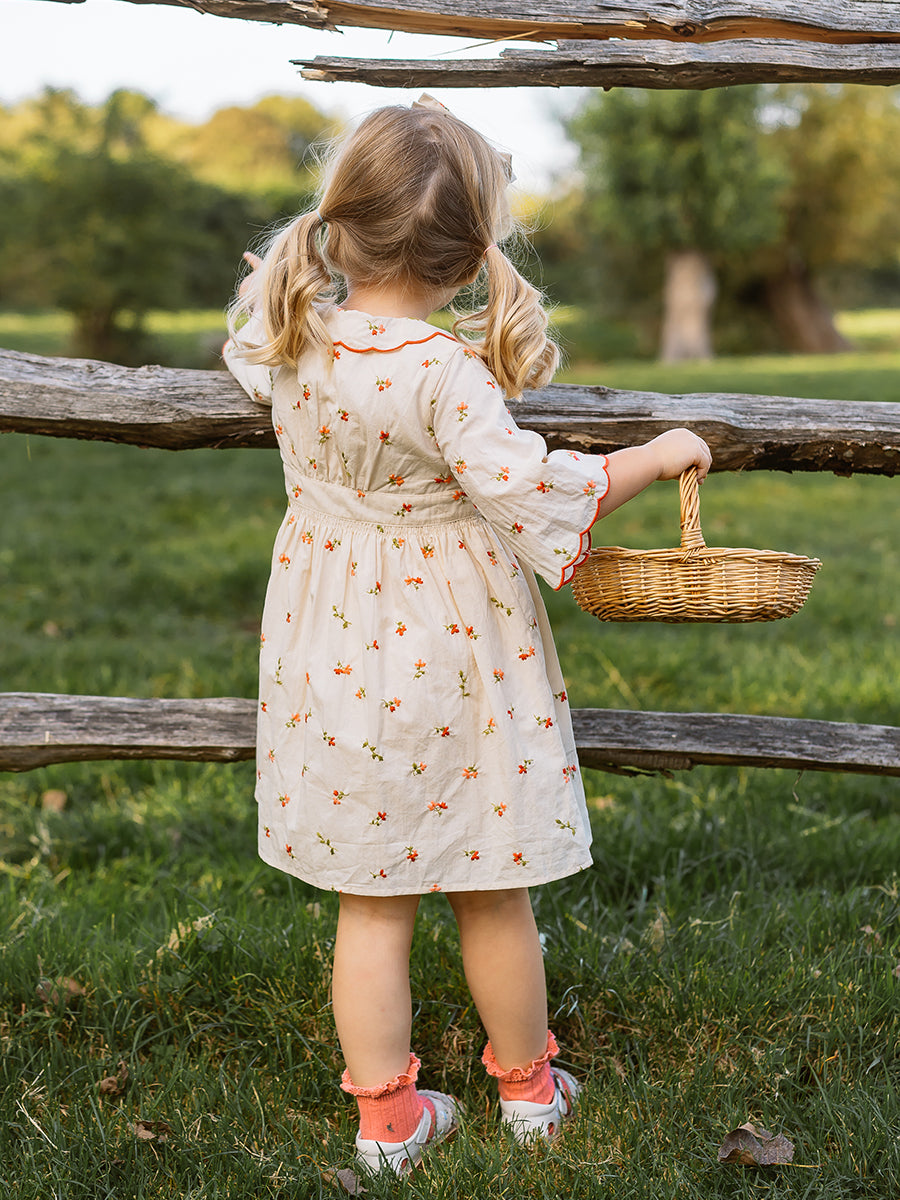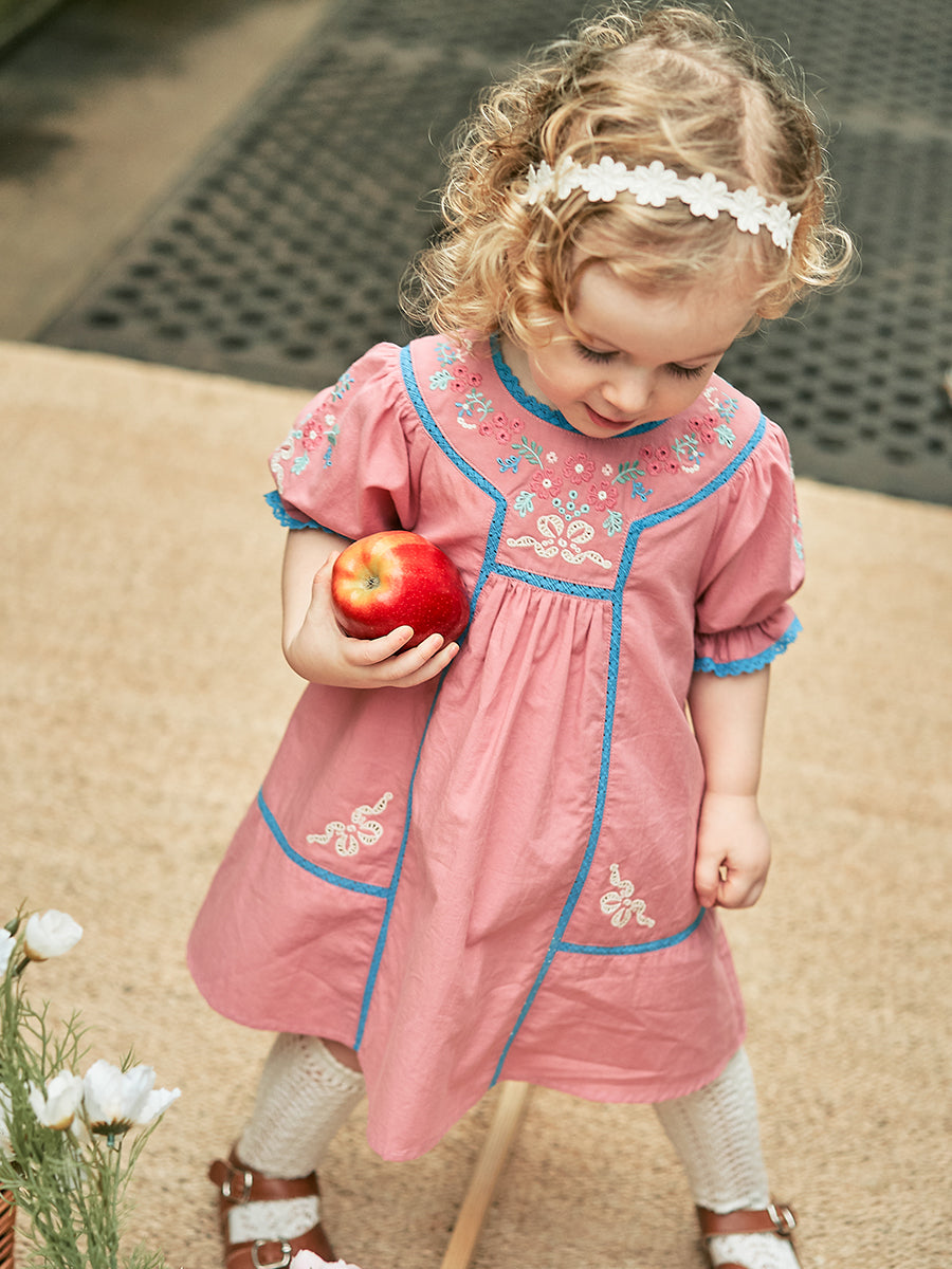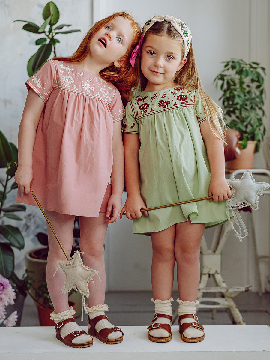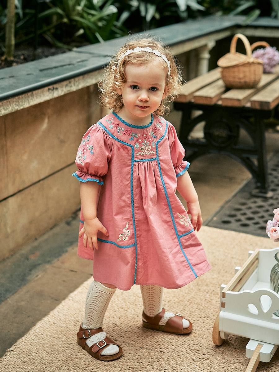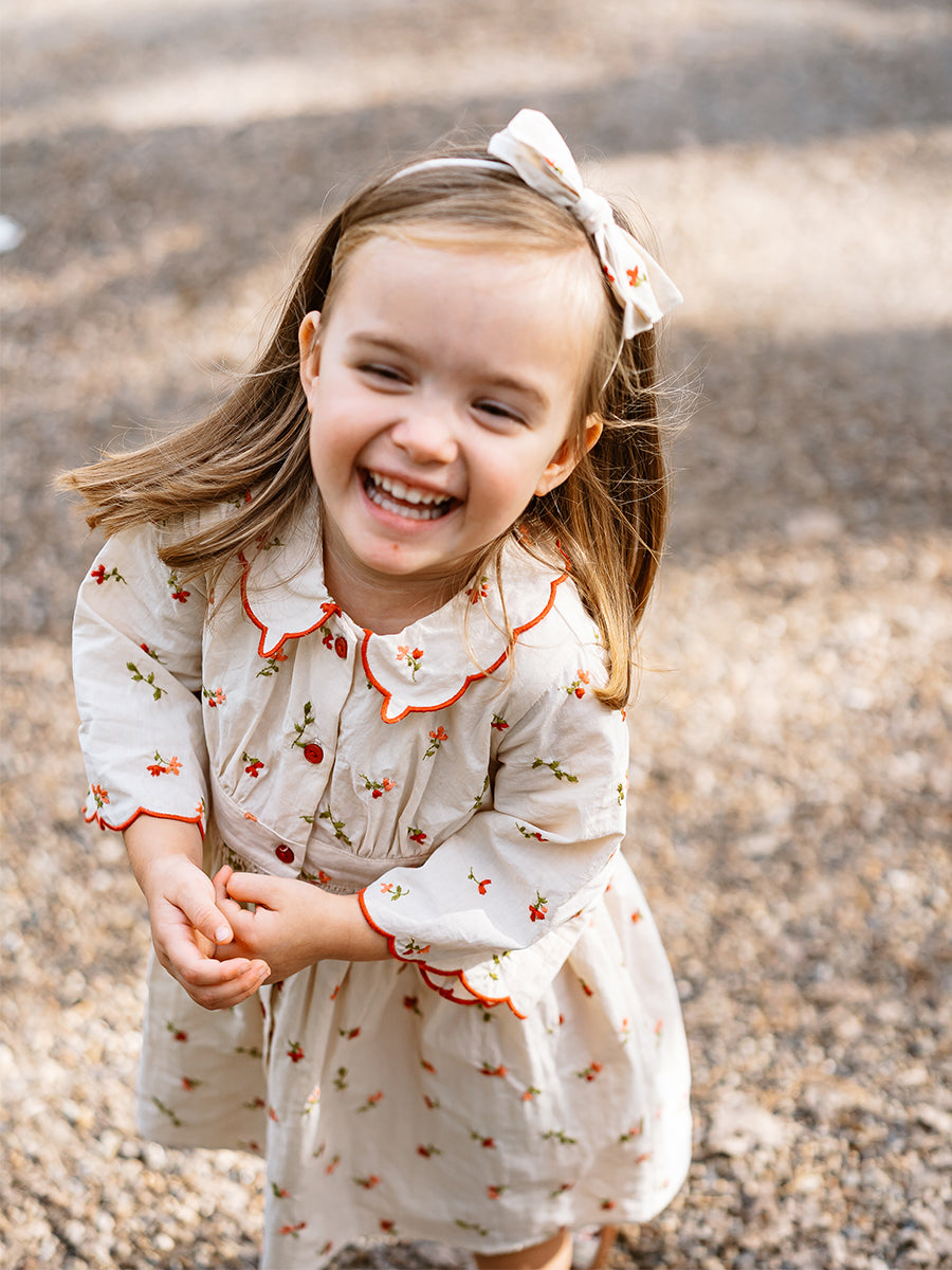 Laila Embroidered Dress, Strawberry Flower Field, Blush