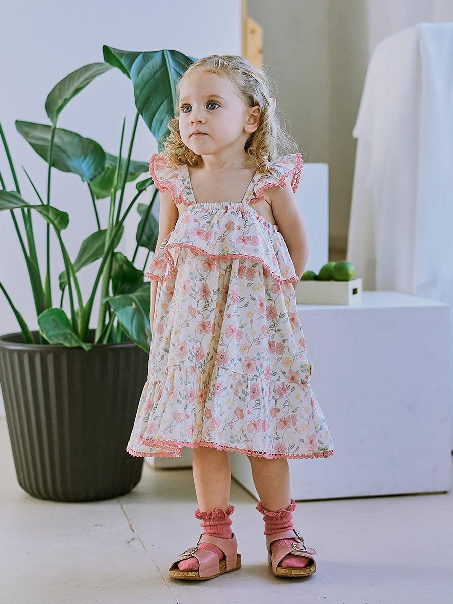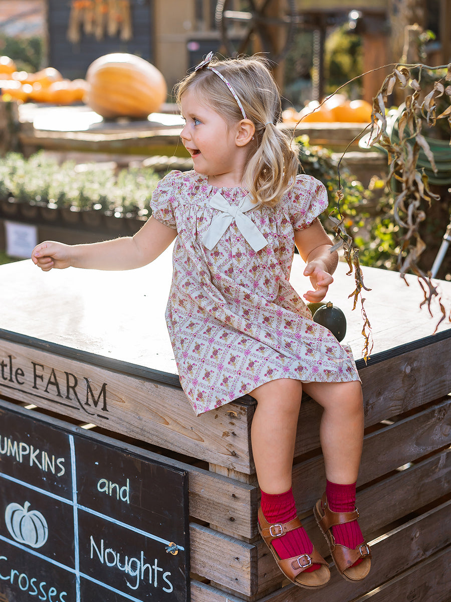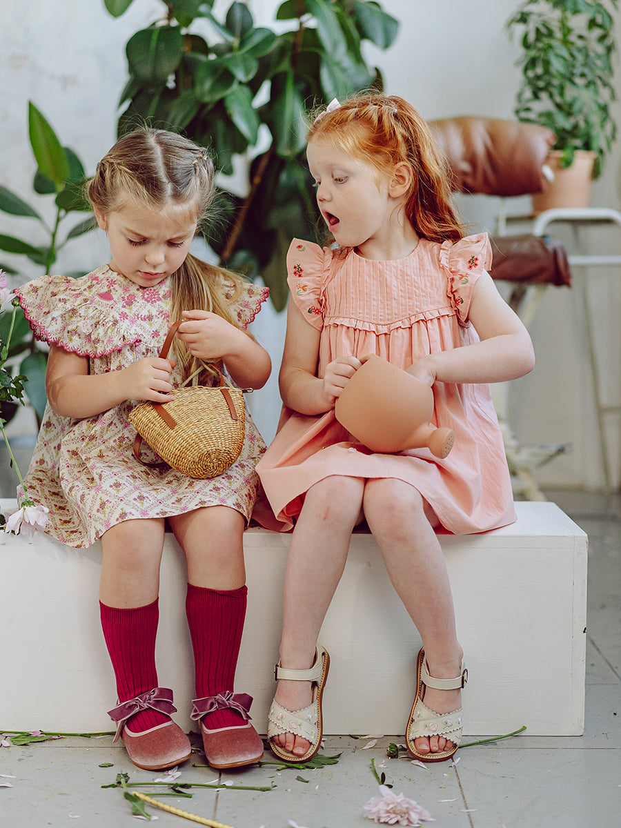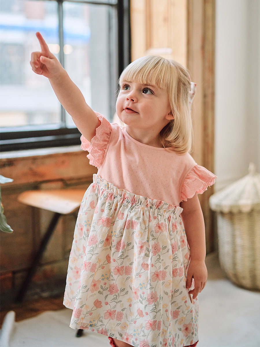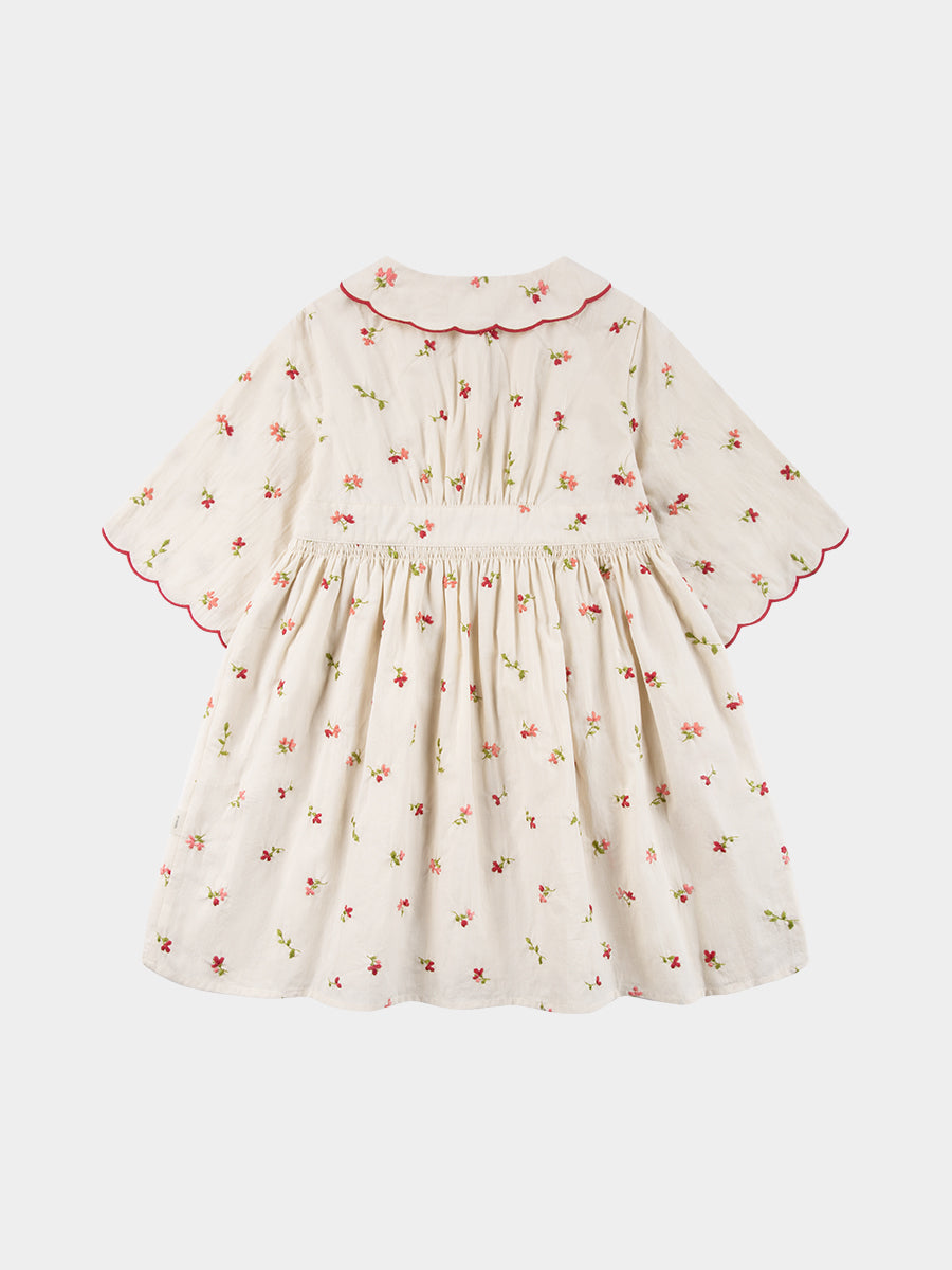Laila Embroidered Dress, Strawberry Flower Field, Blush