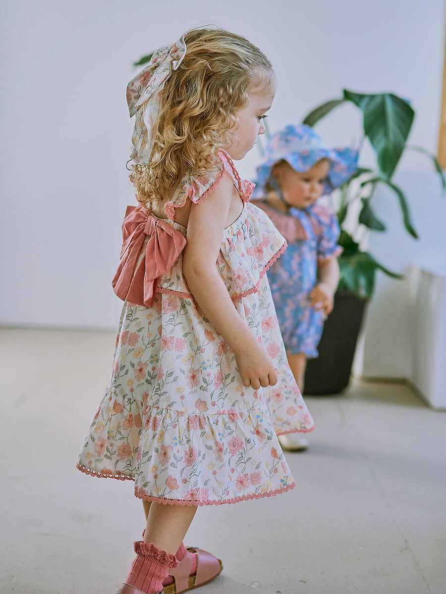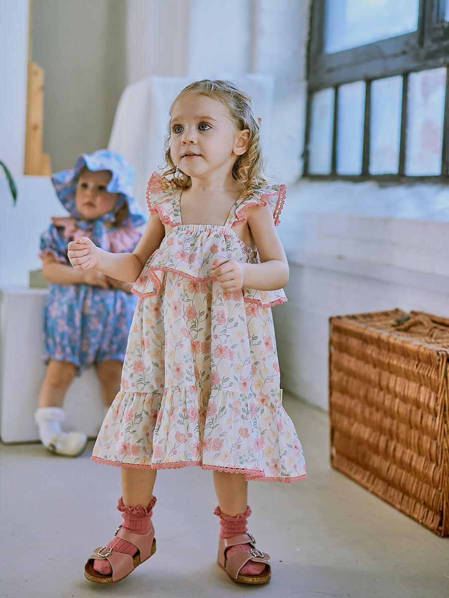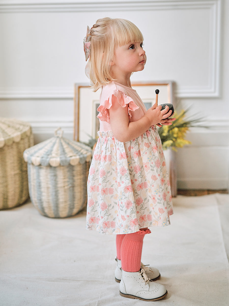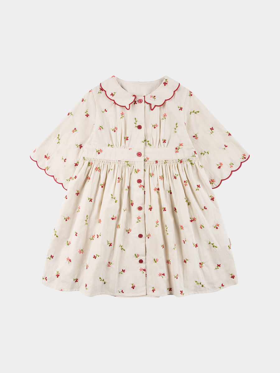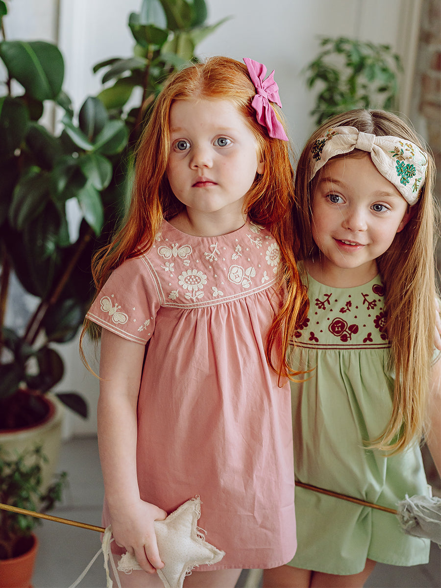 Laila Embroidered Dress, Strawberry Flower Field, Blush