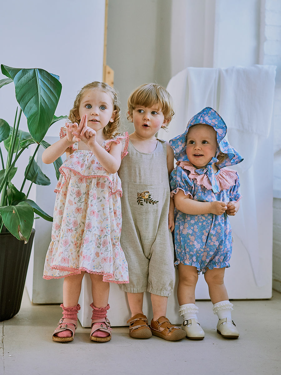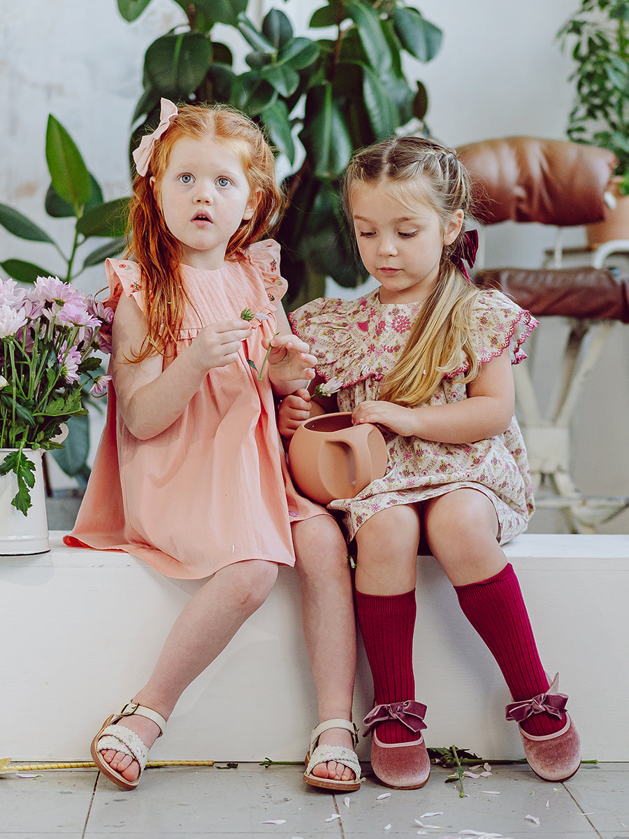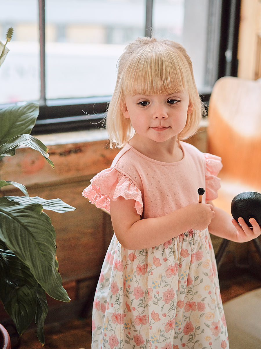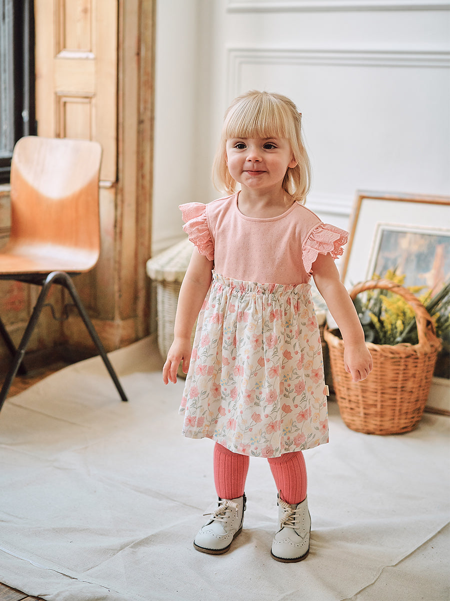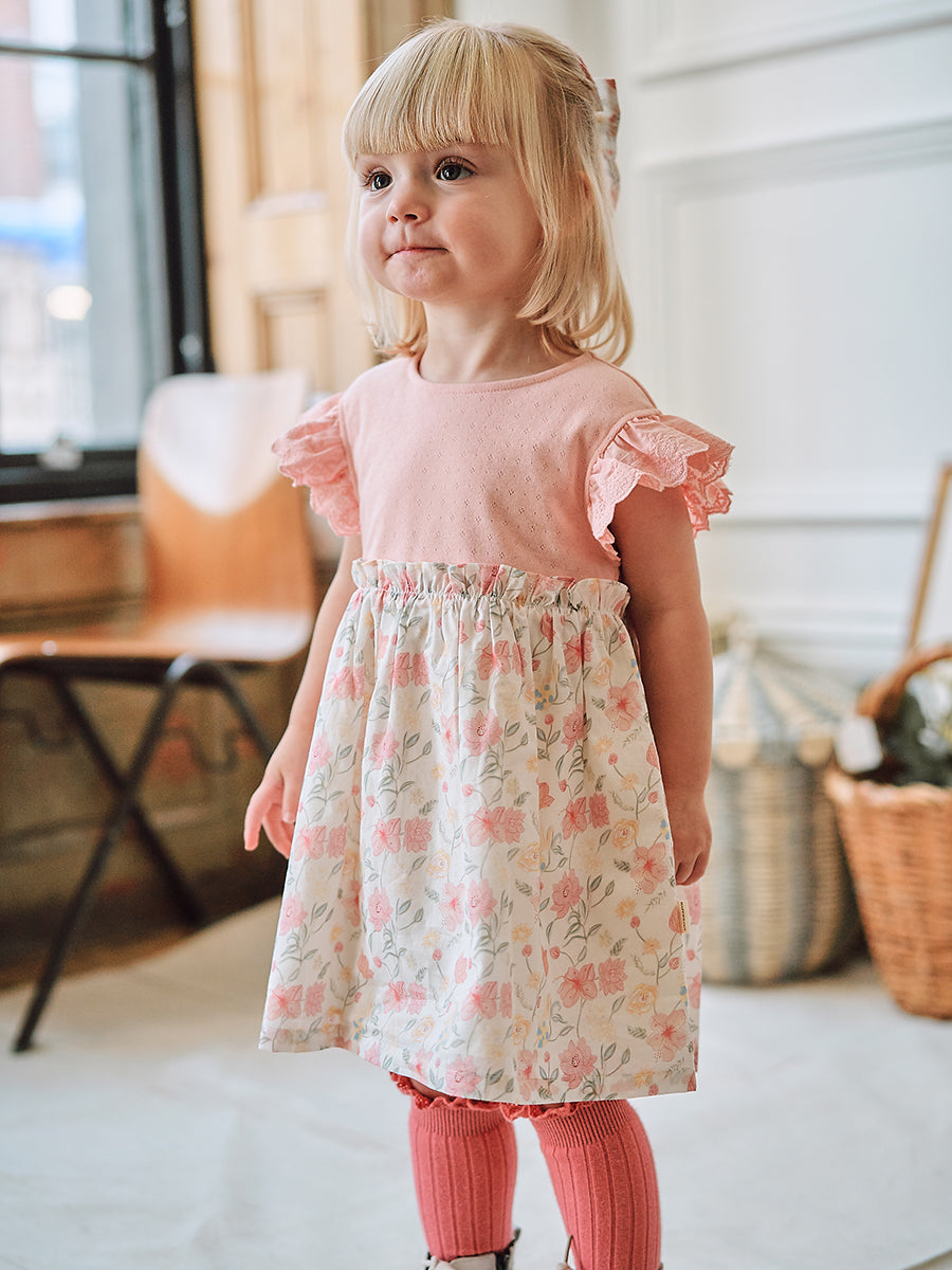 Laila Embroidered Dress, Strawberry Flower Field, Blush
