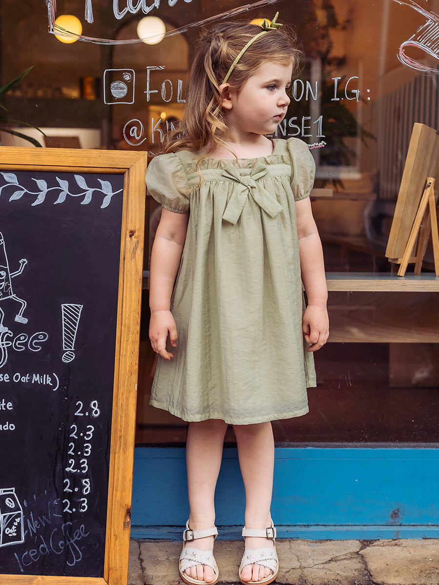 Branly Bow Dress, Tender Green
