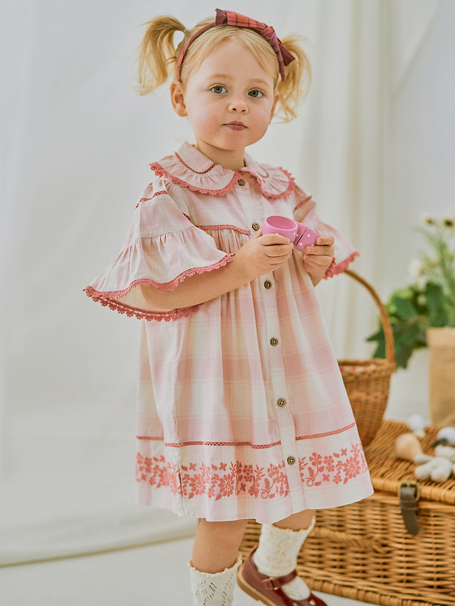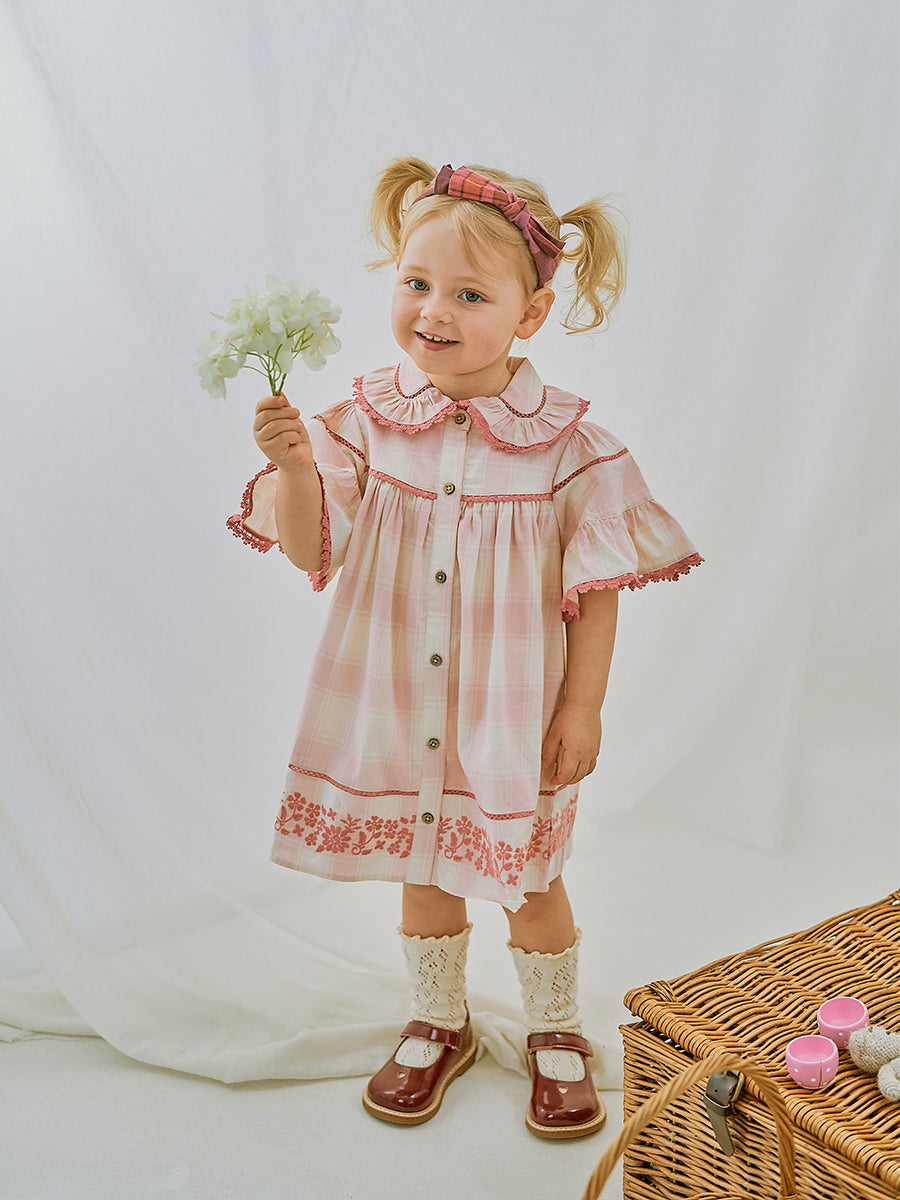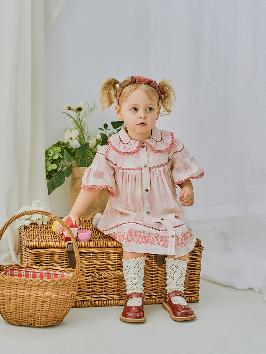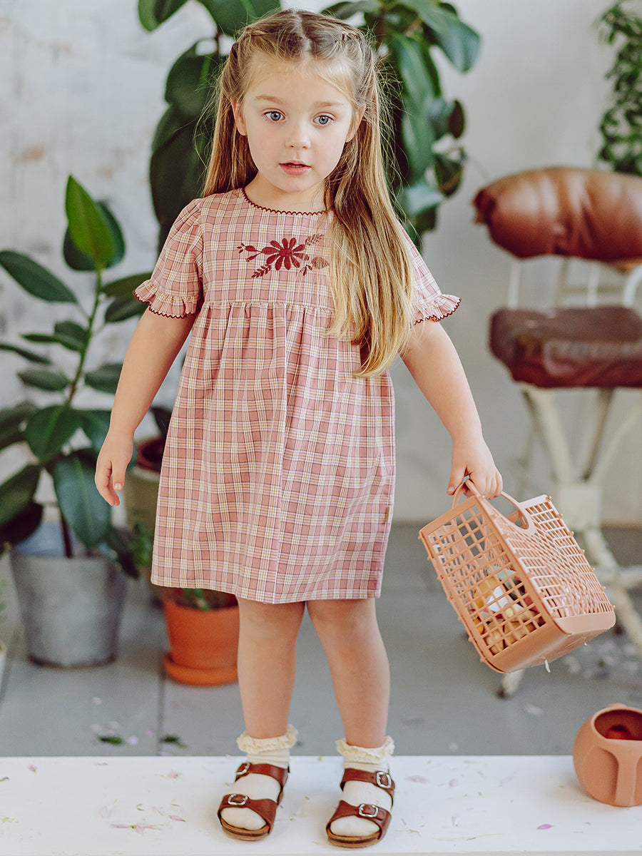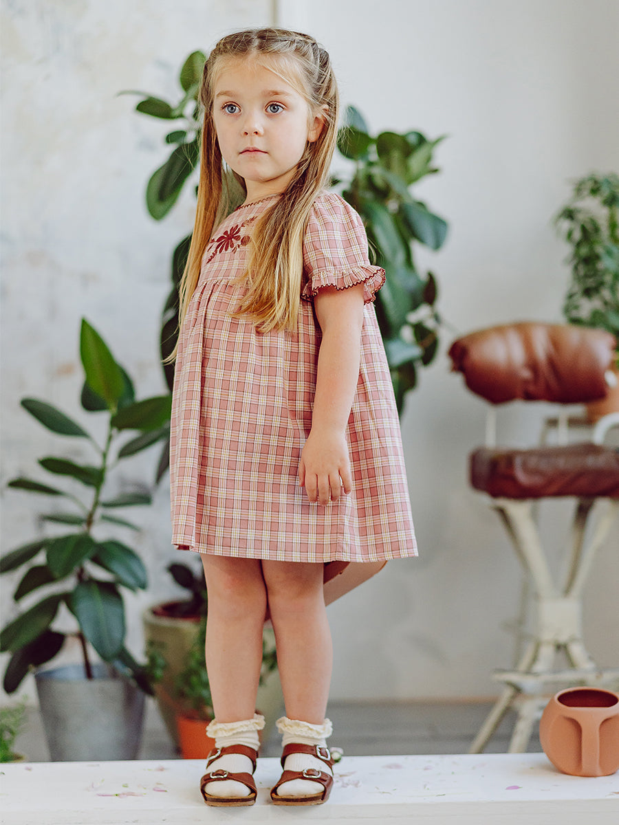 Manchester Embroidery Dress, Pink Plaid