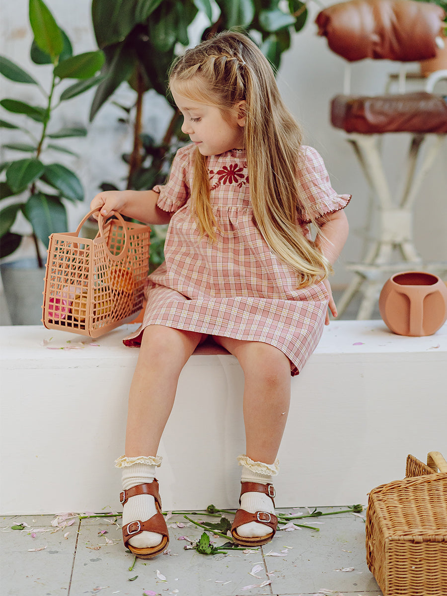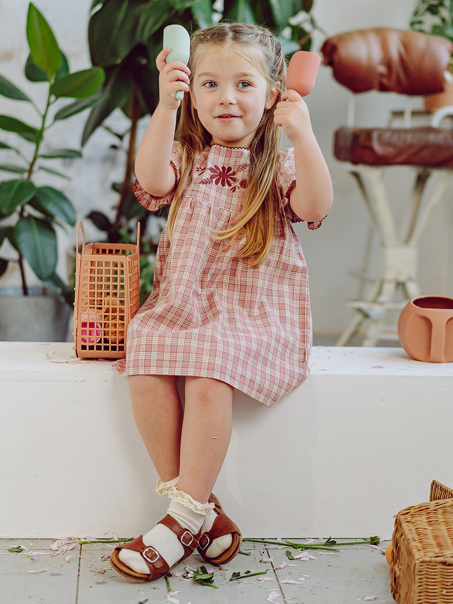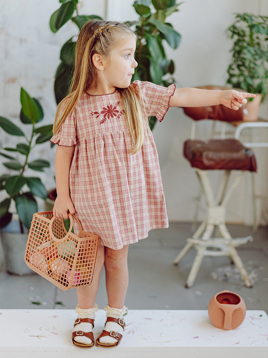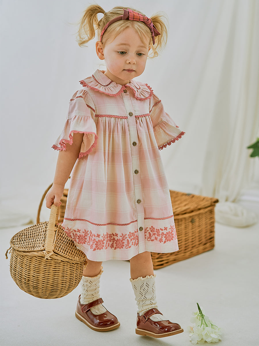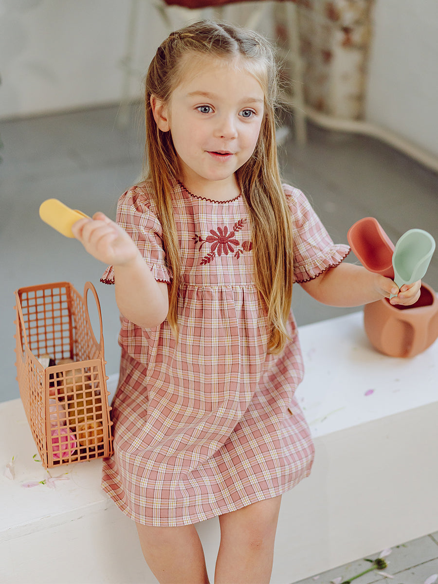 Manchester Embroidery Dress, Pink Plaid