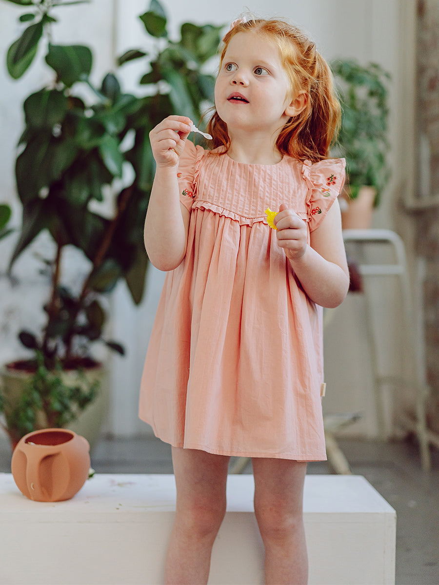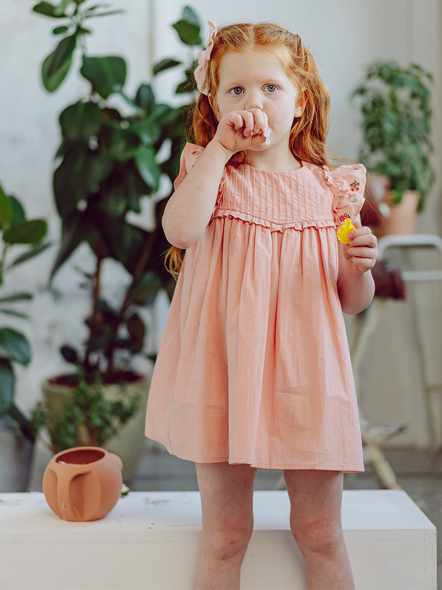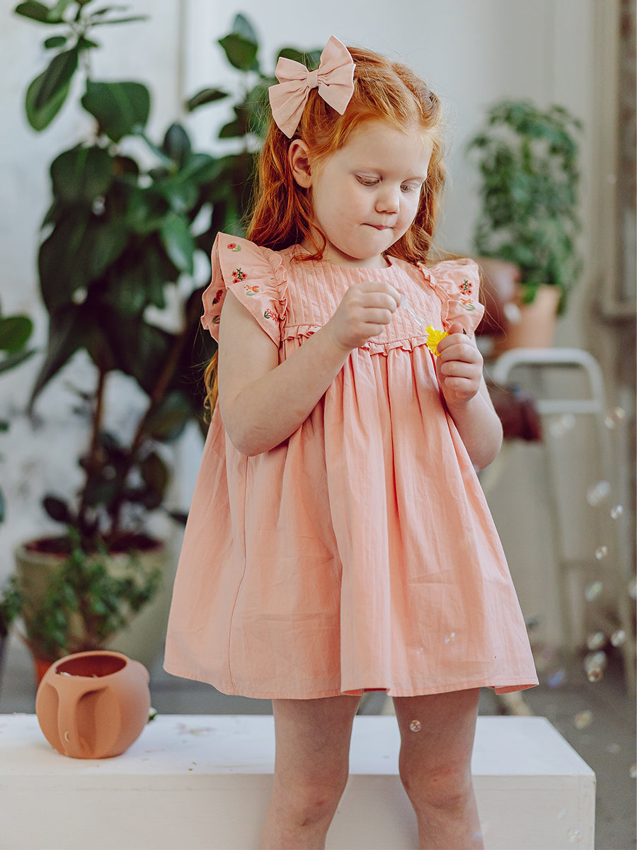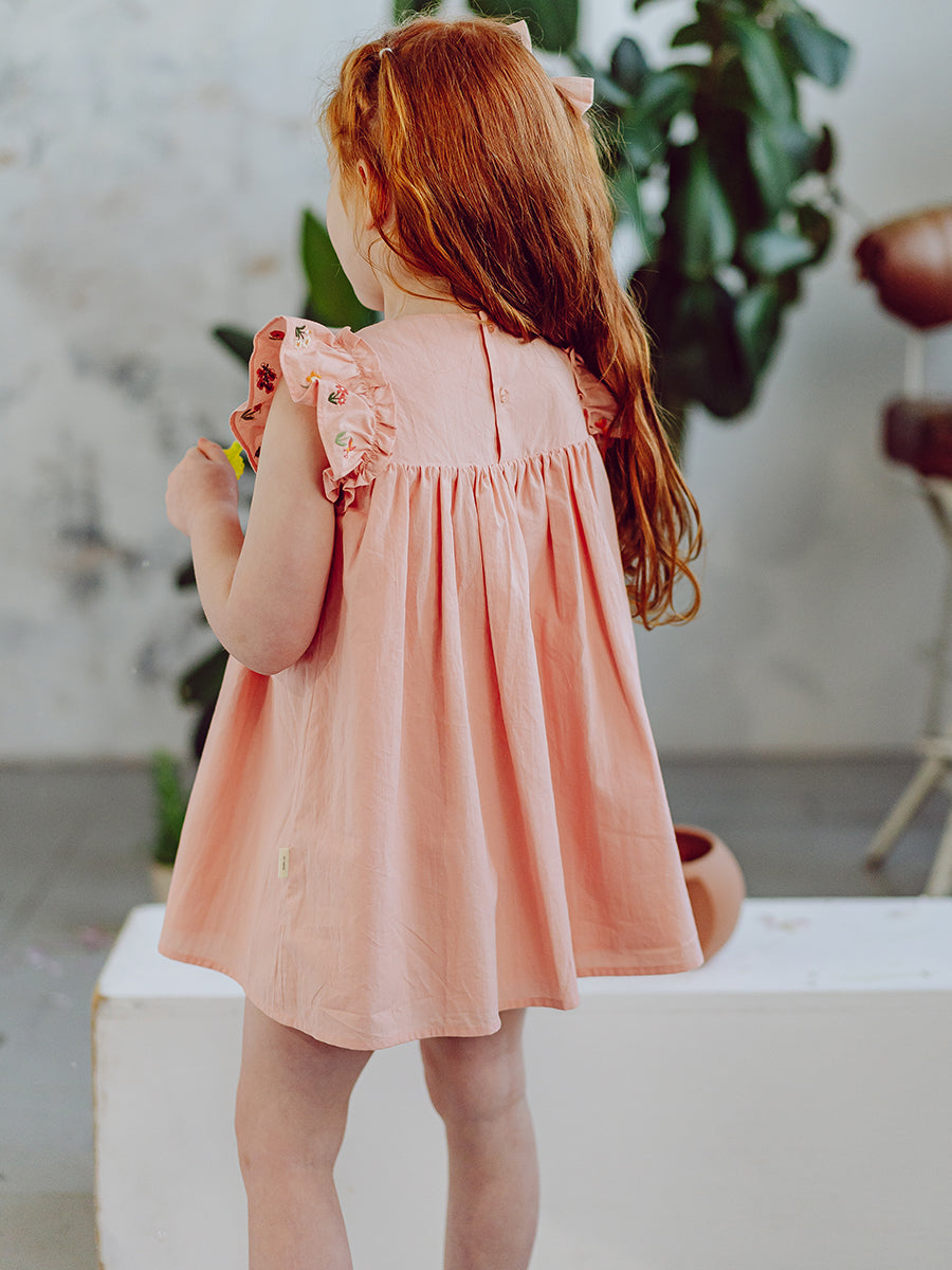 Rhea Embroidered Dress, Peach Pink