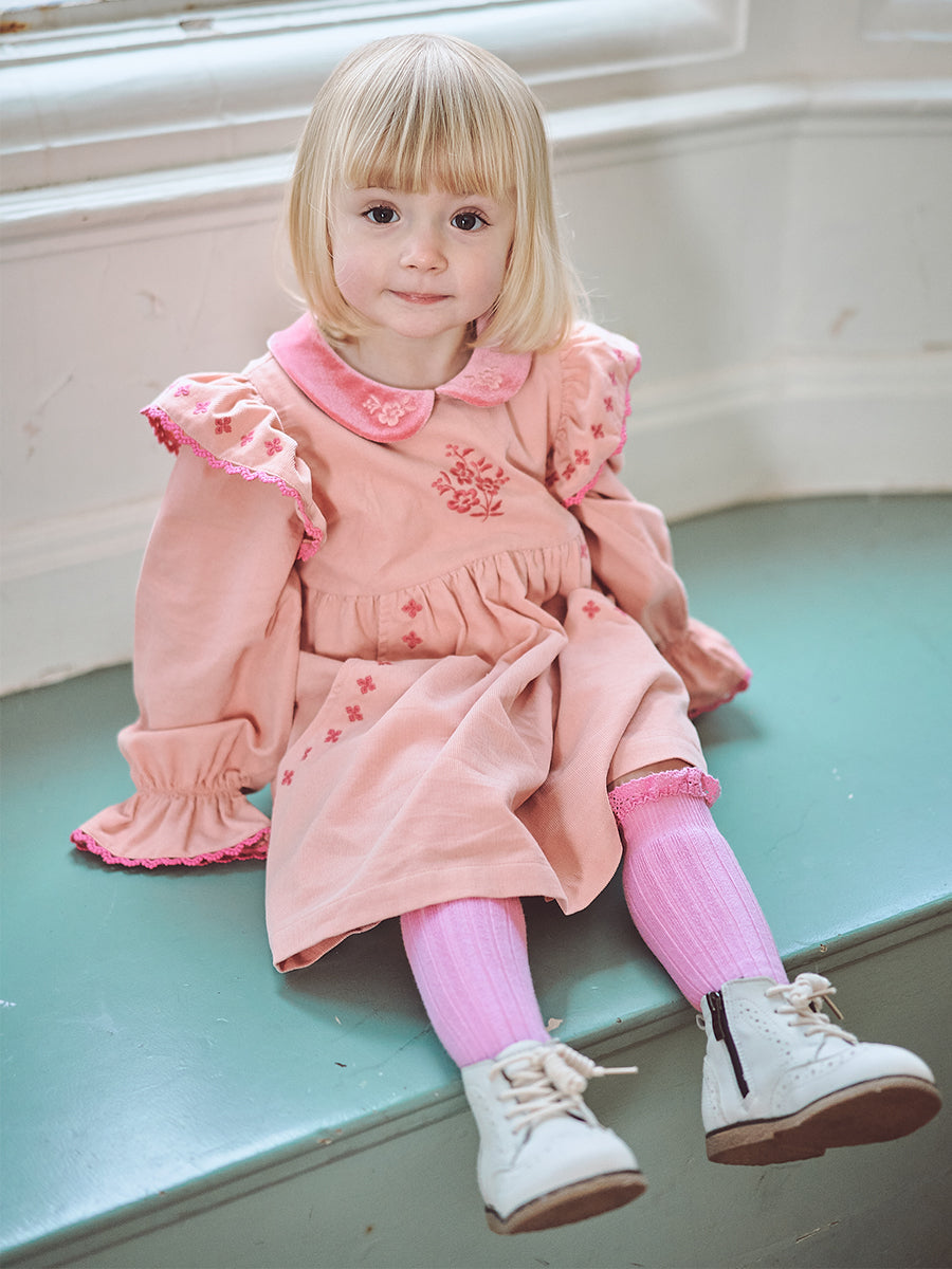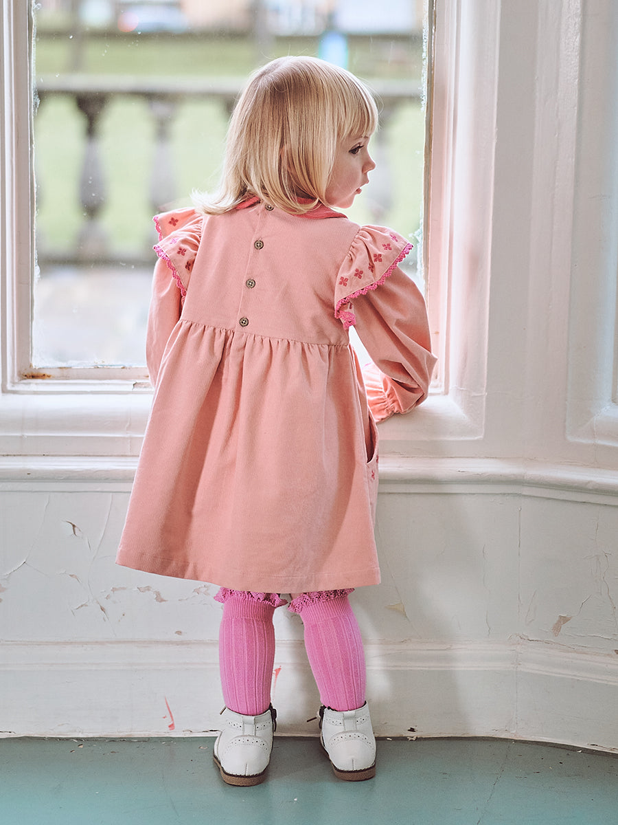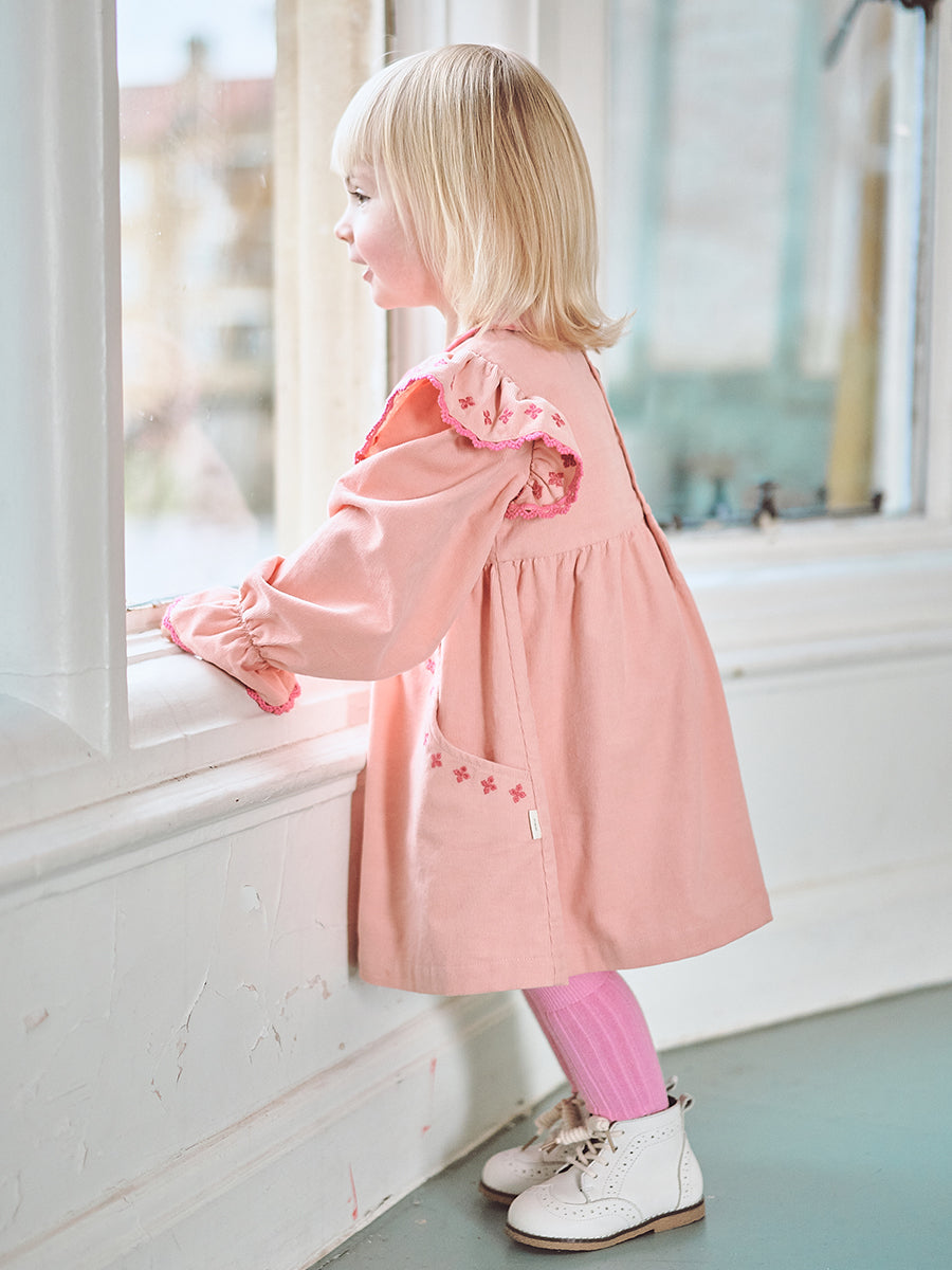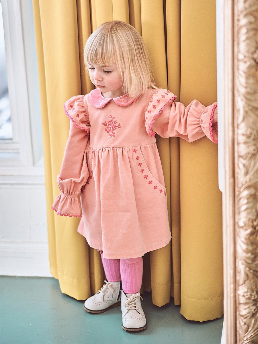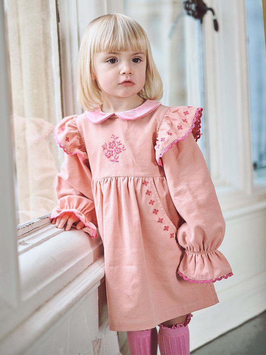 Rhea Embroidered Dress, Peach Pink